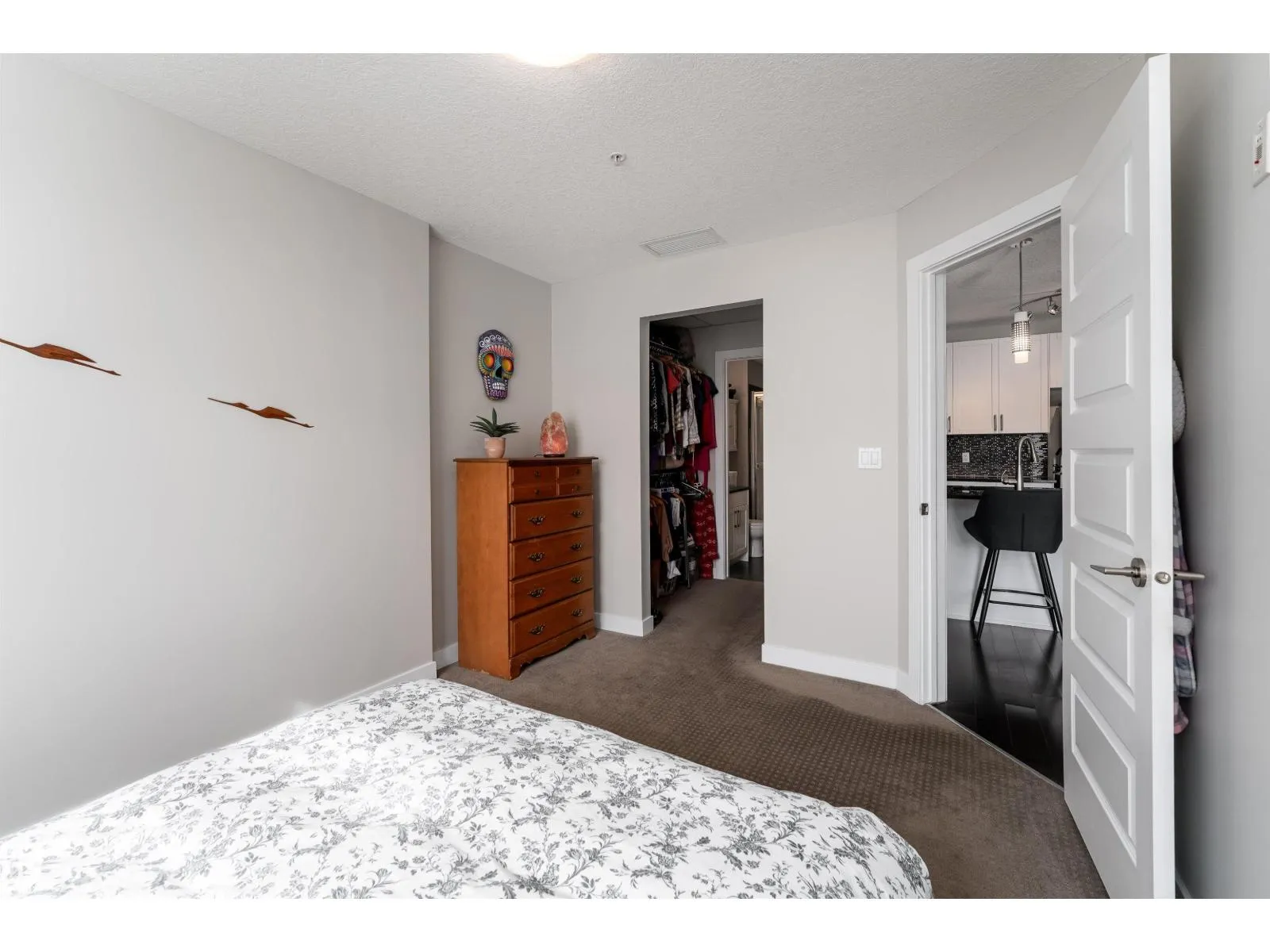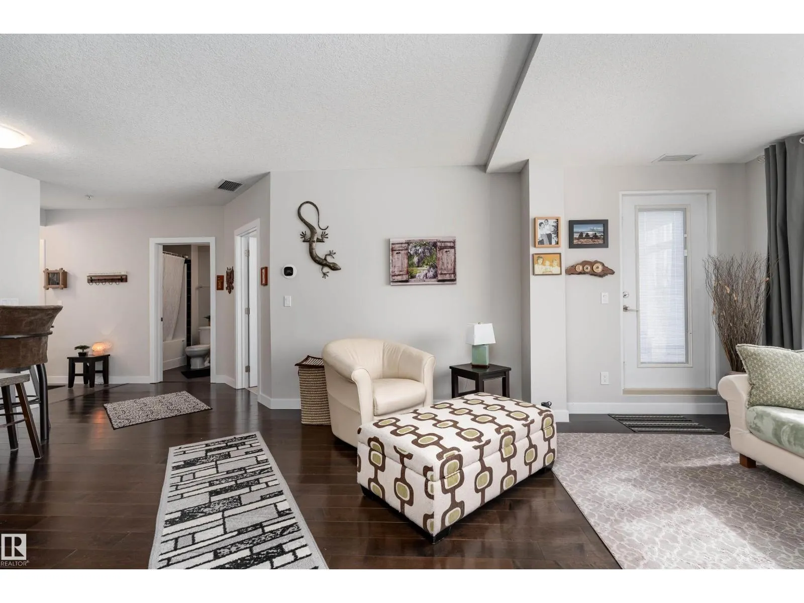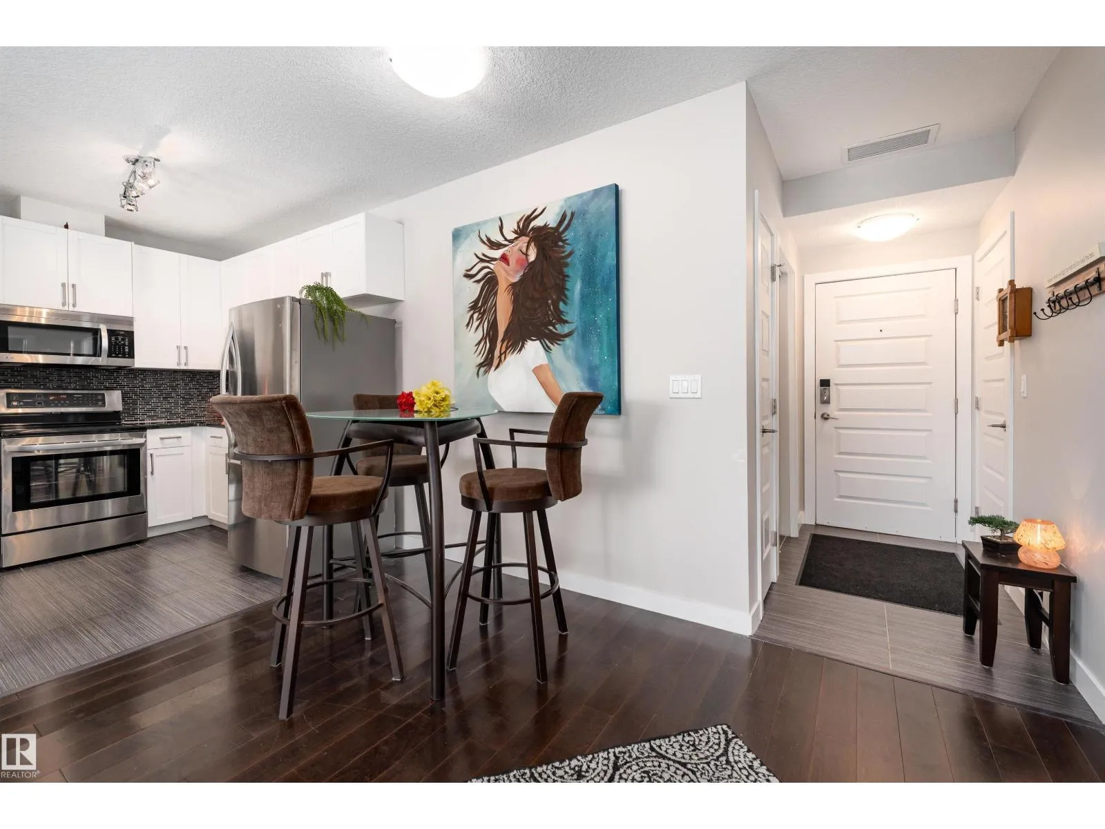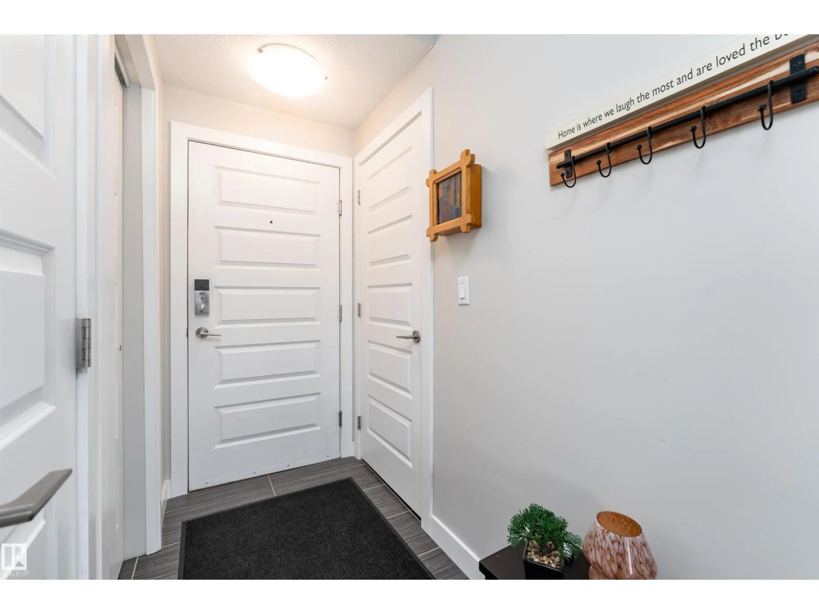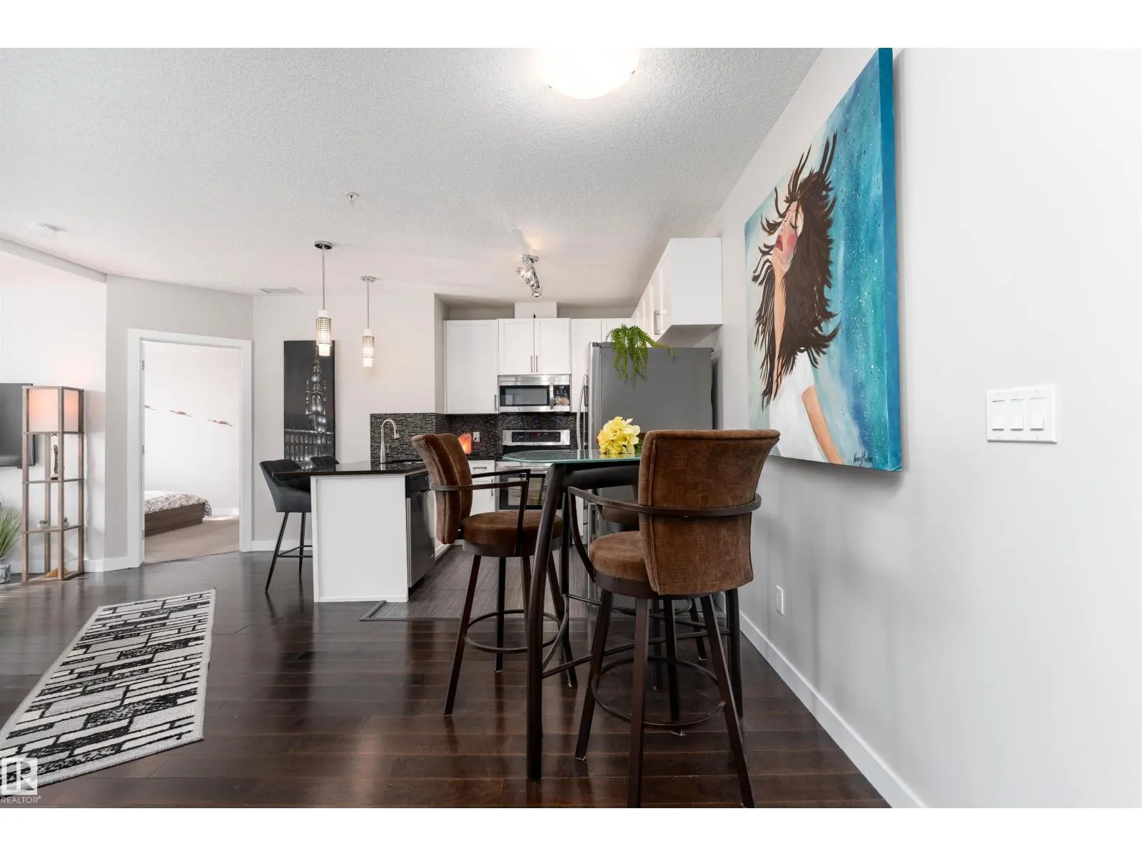 This stunning home has it all-Breathtaking views, a massive south facing private balcony, and a bright, open layout perfect for entertaining, and underground parking. Hardwood floors flow into a modern kitchen with white cabinetry, granite counters, stainless steel appliances, and an eat-up bar. The living room, filled with natural light, opens to a huge balcony overlooking a serene pond, green space, and walking trails. The primary suite offers scenic views, a walk-through closet, and a stylish 3 pc ensuite, while a second bedroom, 4 pc bathroom, and in-suite laundry complete the unit. Additional features include underground titled parking, central A/C, and building amenities like a gym, social room, and concierge. Enjoy the quiet comfort of a solid concrete building that is ideally located near Anthony Henday and within walking distance to restaurants, shopping, and parks, this home truly combines luxury, convenience, and lifestyle in one exceptional package ready to move in and enjoy. (id:27476)