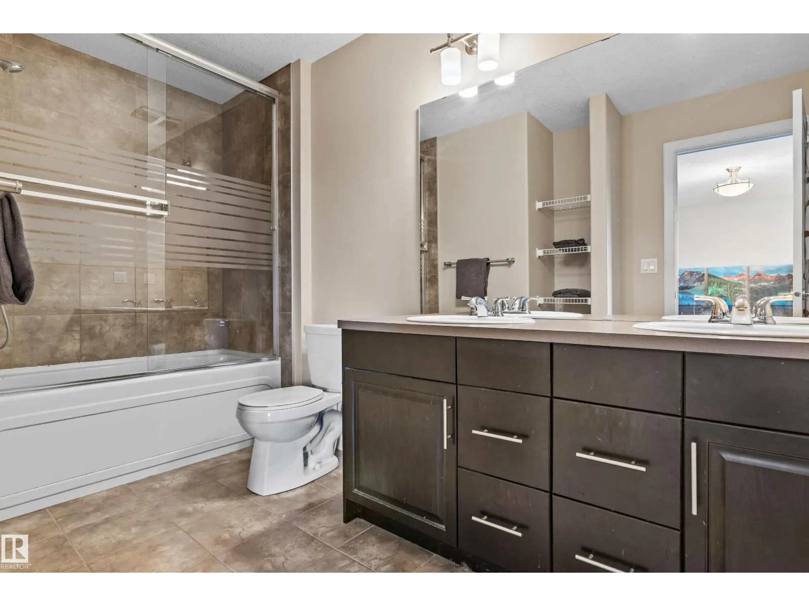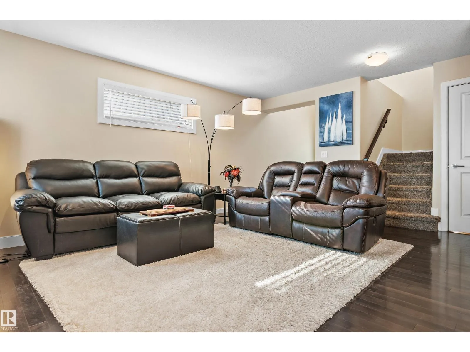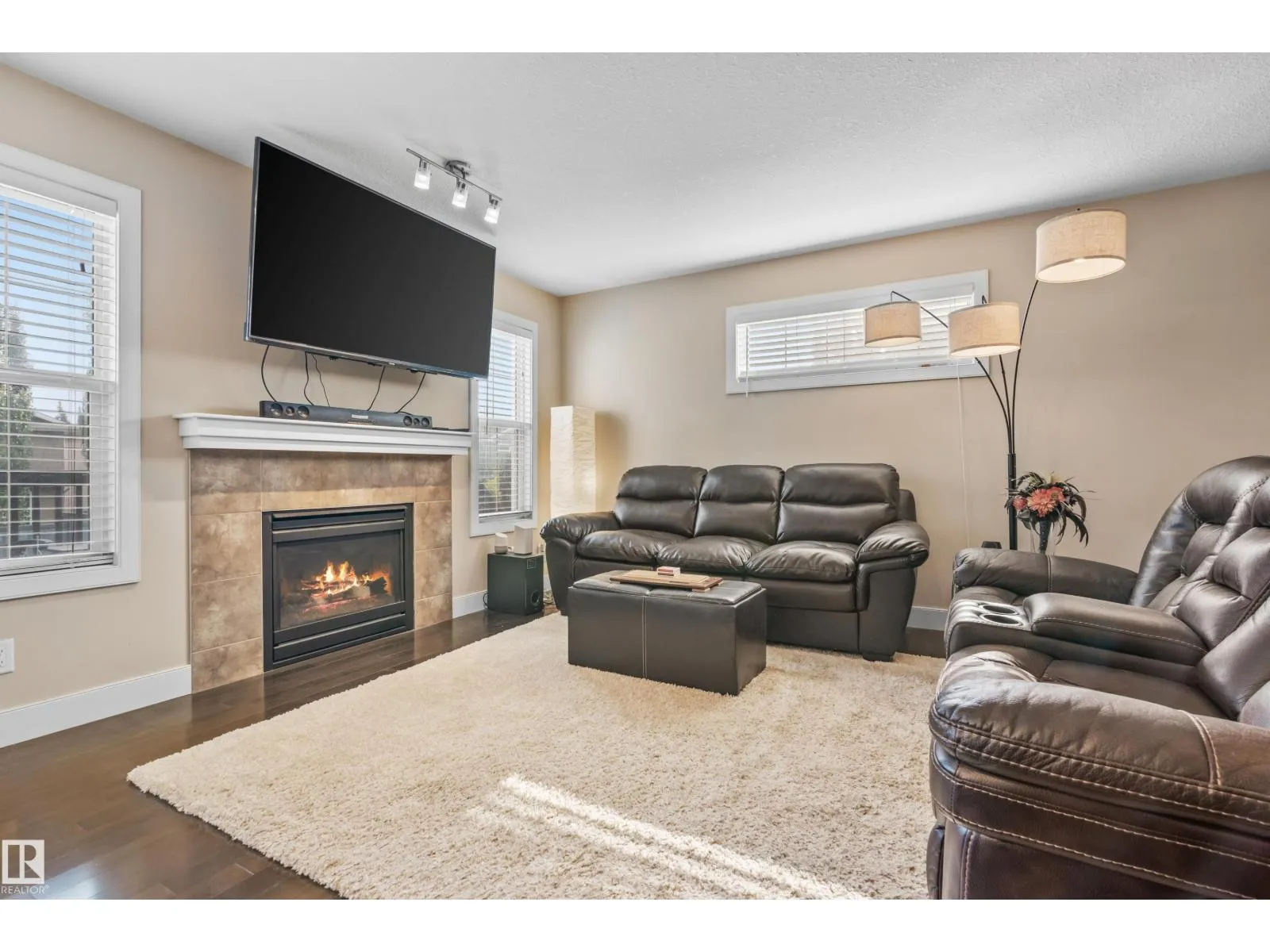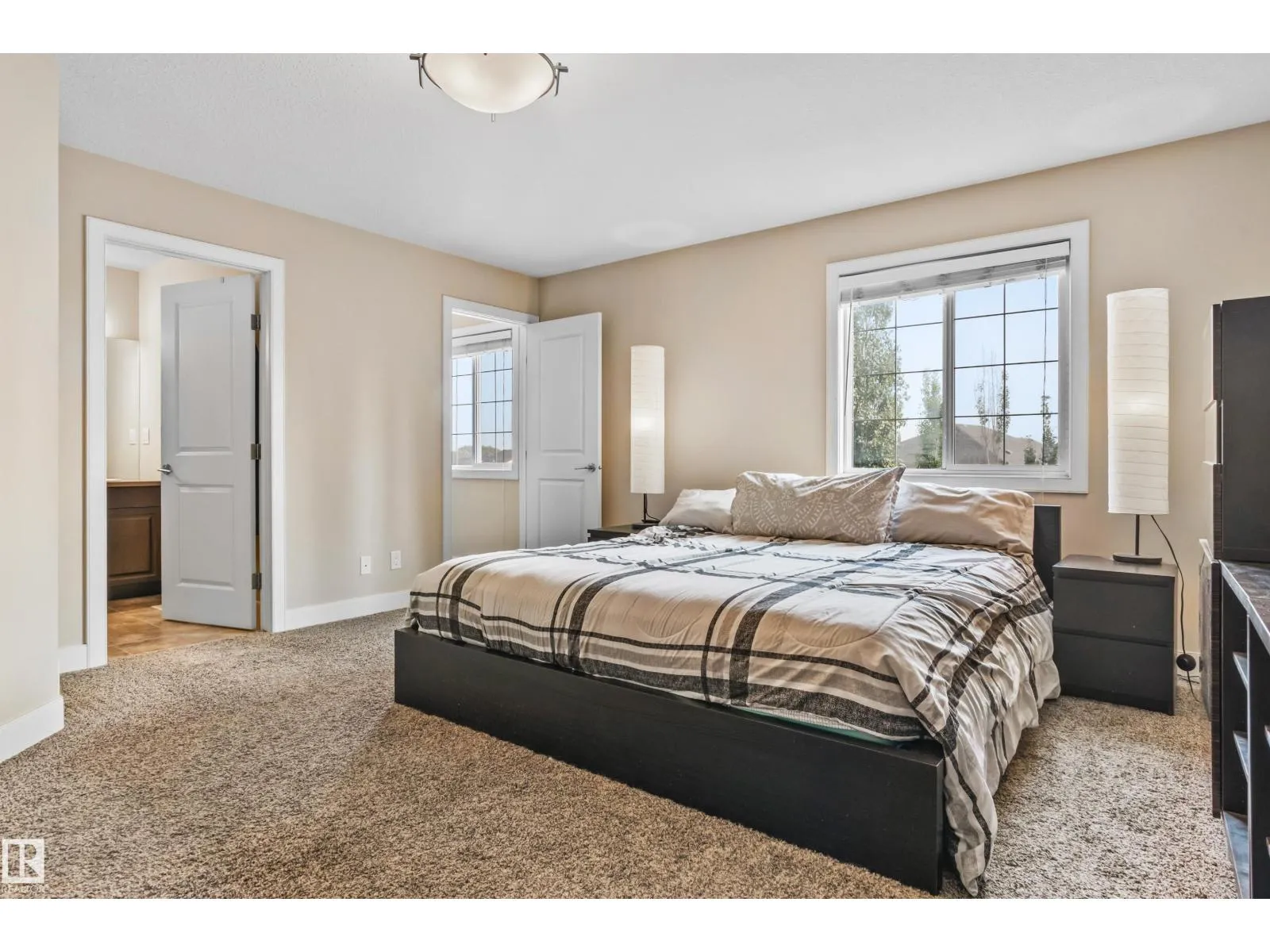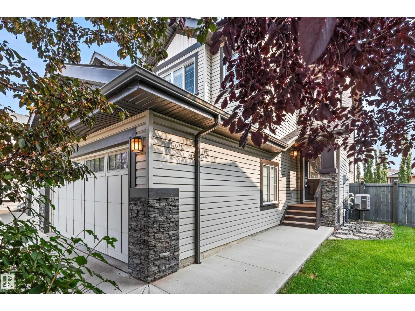 Welcome to this beautifully maintained double attached garage duplex in the sought-after community of Granville! Tucked away in a quiet cul-de-sac, this home backs onto walking paths and green space and is just steps from a scenic pondâoffering the perfect blend of privacy and lifestyle. Inside, youâll find a bright open-concept main floor featuring rich hardwood floors, a modern kitchen with granite countertops, stainless steel appliances, and a large island ideal for entertaining. The cozy living room with fireplace creates a warm and inviting space, while the dining area overlooks the backyard and green space. Upstairs offers a rare layout with two spacious primary bedrooms, each with its own ensuite and walk-in closetâperfect for families, roommates, or guests. The unfinished basement includes materials for a future bathroom, making development easier and more cost-effective. Located minutes from Costco, River Cree Resort & Casino, shopping, restaurants, and major routes. (id:27476)