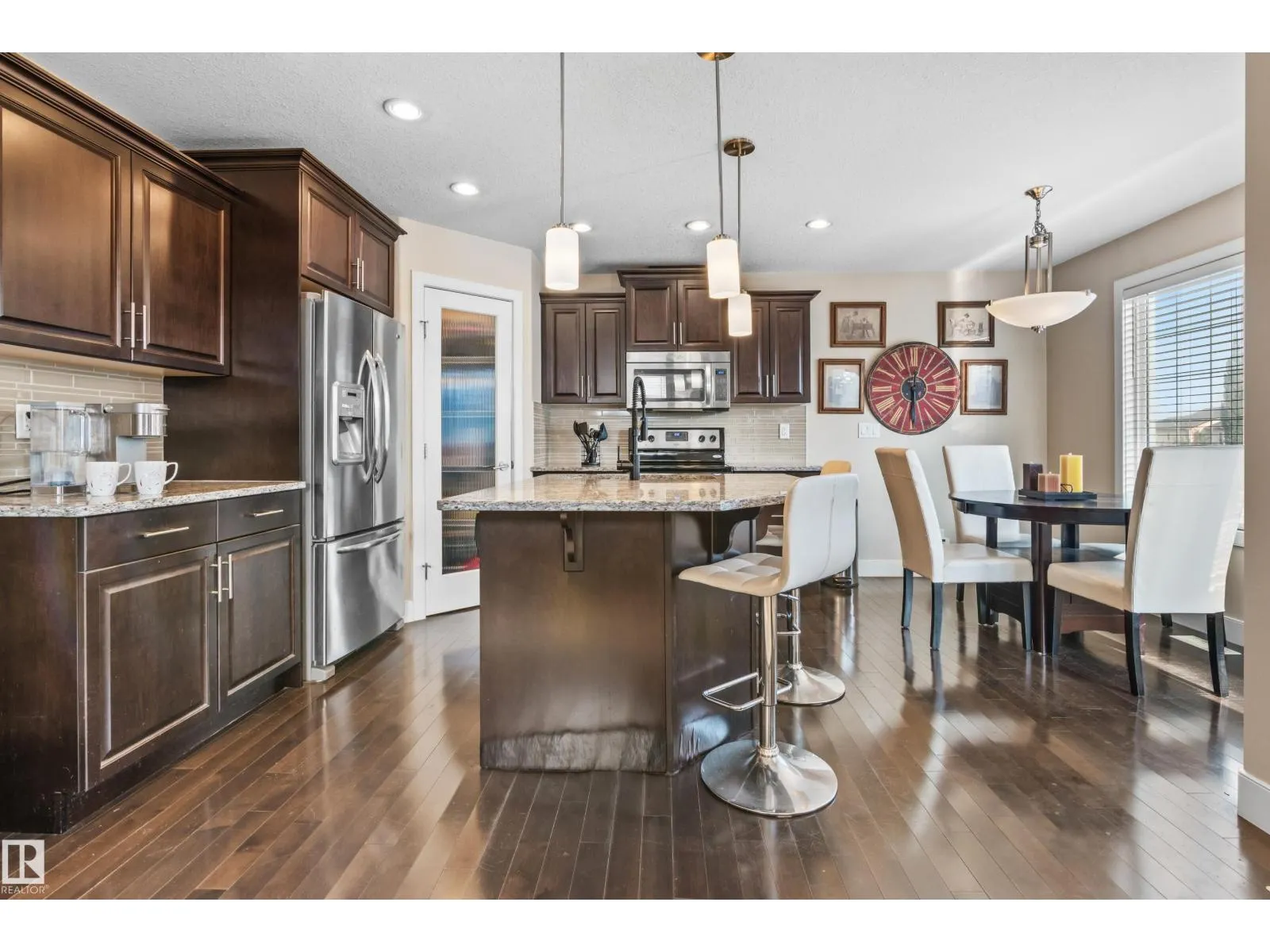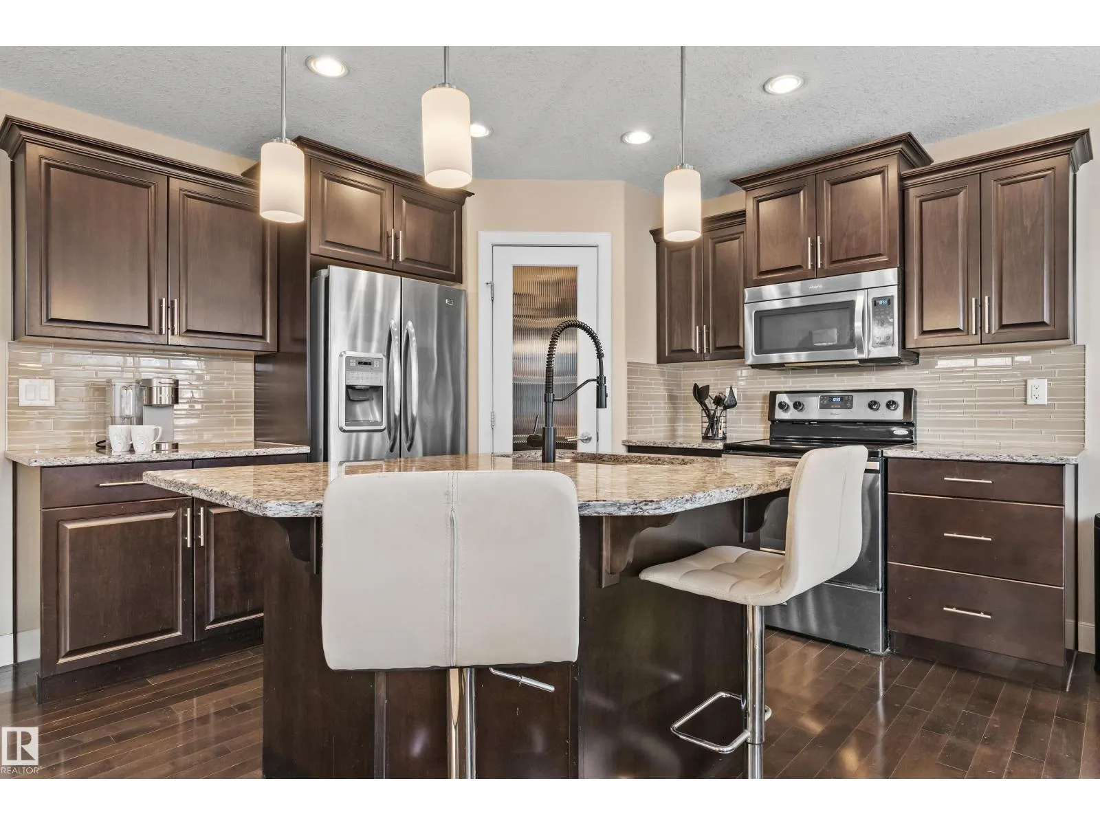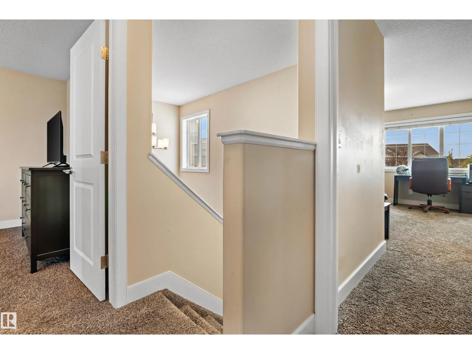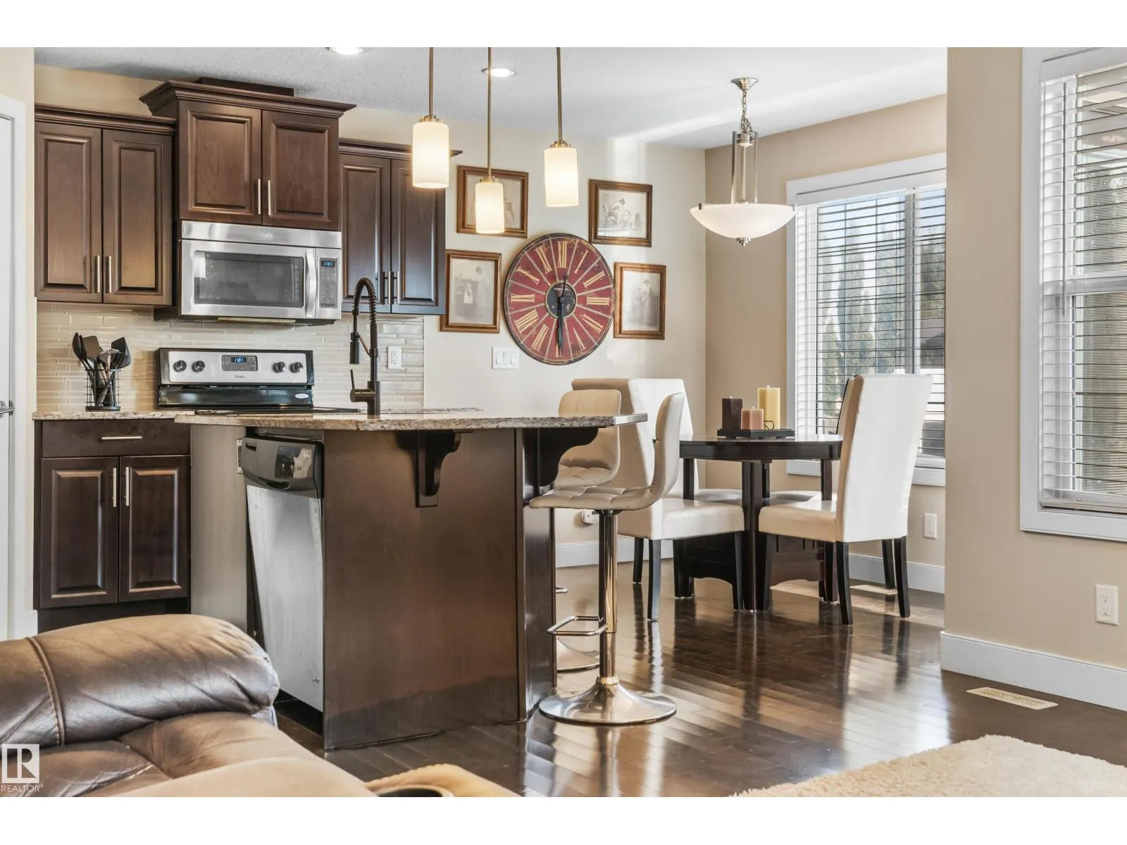 Welcome to this beautifully maintained double attached garage duplex in the sought-after community of Granville! Tucked away in a quiet cul-de-sac, this home backs onto walking paths and green space and is just steps from a scenic pondâoffering the perfect blend of privacy and lifestyle. Inside, youâll find a bright open-concept main floor featuring rich hardwood floors, a modern kitchen with granite countertops, stainless steel appliances, and a large island ideal for entertaining. The cozy living room with fireplace creates a warm and inviting space, while the dining area overlooks the backyard and green space. Upstairs offers a rare layout with two spacious primary bedrooms, each with its own ensuite and walk-in closetâperfect for families, roommates, or guests. The unfinished basement includes materials for a future bathroom, making development easier and more cost-effective. Located minutes from Costco, River Cree Resort & Casino, shopping, restaurants, and major routes. (id:27476)