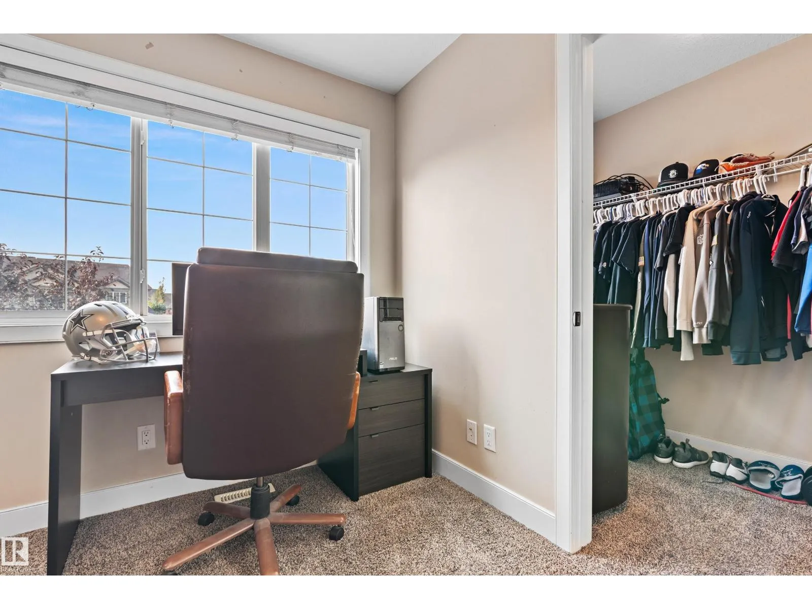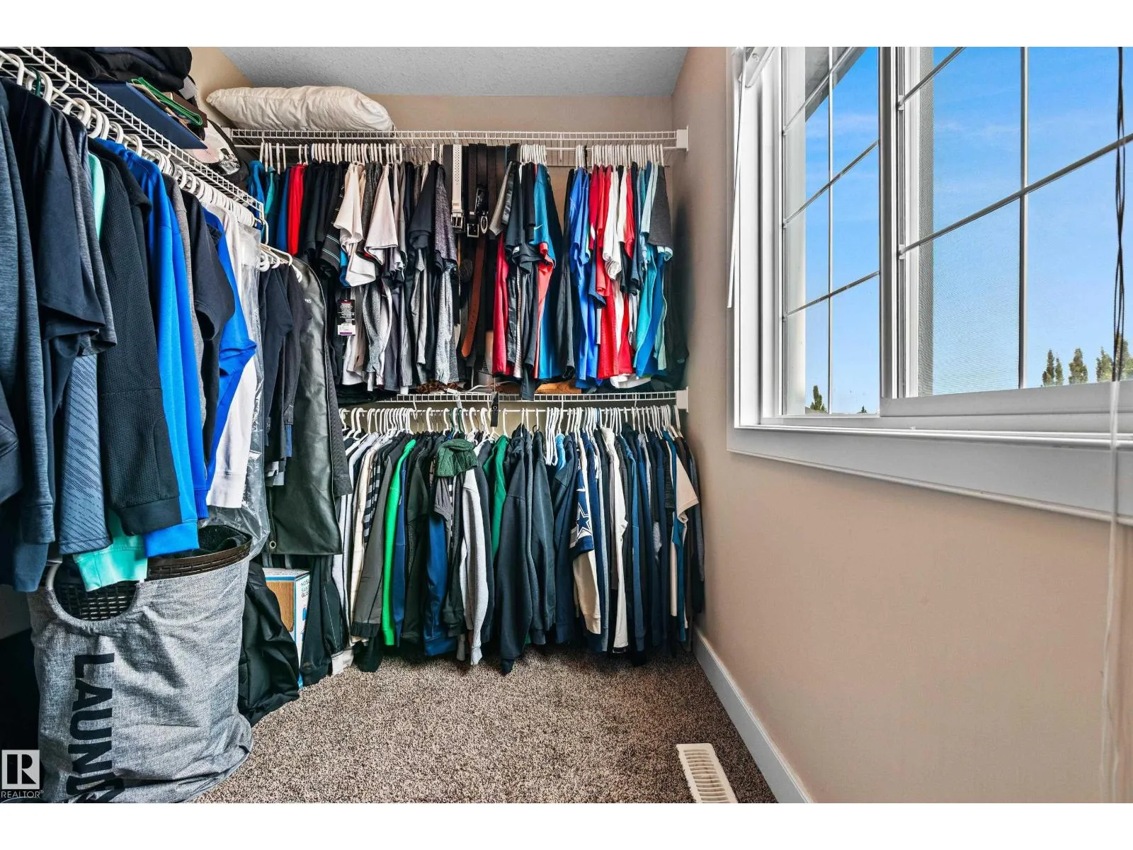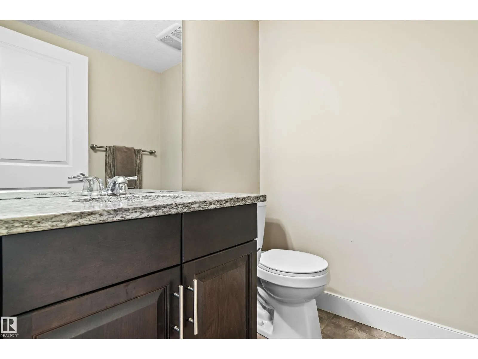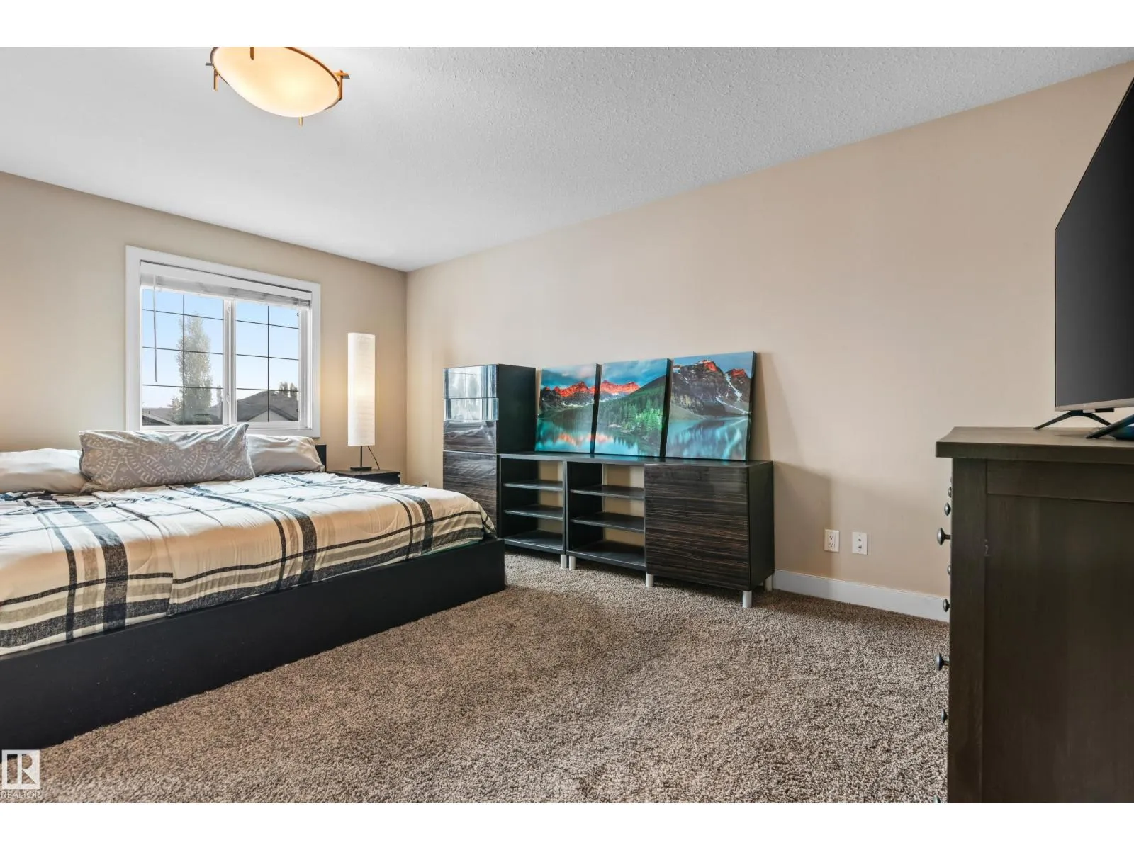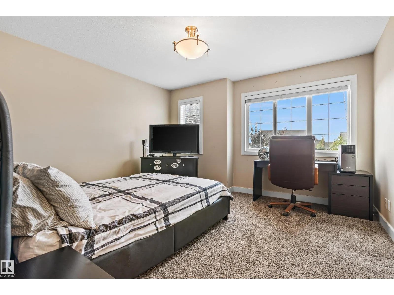 Welcome to this beautifully maintained double attached garage duplex in the sought-after community of Granville! Tucked away in a quiet cul-de-sac, this home backs onto walking paths and green space and is just steps from a scenic pondâoffering the perfect blend of privacy and lifestyle. Inside, youâll find a bright open-concept main floor featuring rich hardwood floors, a modern kitchen with granite countertops, stainless steel appliances, and a large island ideal for entertaining. The cozy living room with fireplace creates a warm and inviting space, while the dining area overlooks the backyard and green space. Upstairs offers a rare layout with two spacious primary bedrooms, each with its own ensuite and walk-in closetâperfect for families, roommates, or guests. The unfinished basement includes materials for a future bathroom, making development easier and more cost-effective. Located minutes from Costco, River Cree Resort & Casino, shopping, restaurants, and major routes. (id:27476)