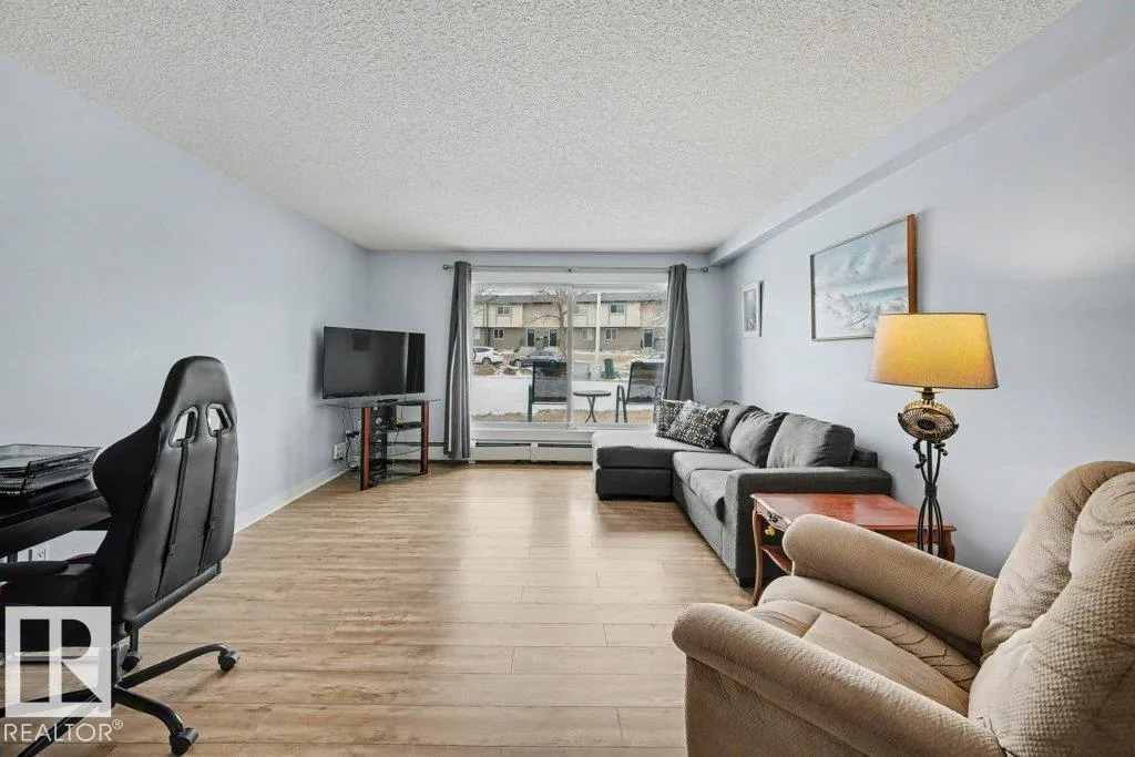 Welcome home to this spacious one bedroom condo with a private patio, and in-suite storage. This bright property features a renovated kitchen with tile backsplash & built-in dishwasher, a dining space, and large living room with access to the sunny patio. The master bedroom adjoins the main 4pc. bathroom with updated vanity and tile matching the kitchen. Enjoy newer flooring throughout! Shared laundry is just down the hall and the property comes with assigned parking. Condo fee includes all major utilities! Close to parks, shopping, transit, and major commuting routes. Available with a quick possession. (id:27476)