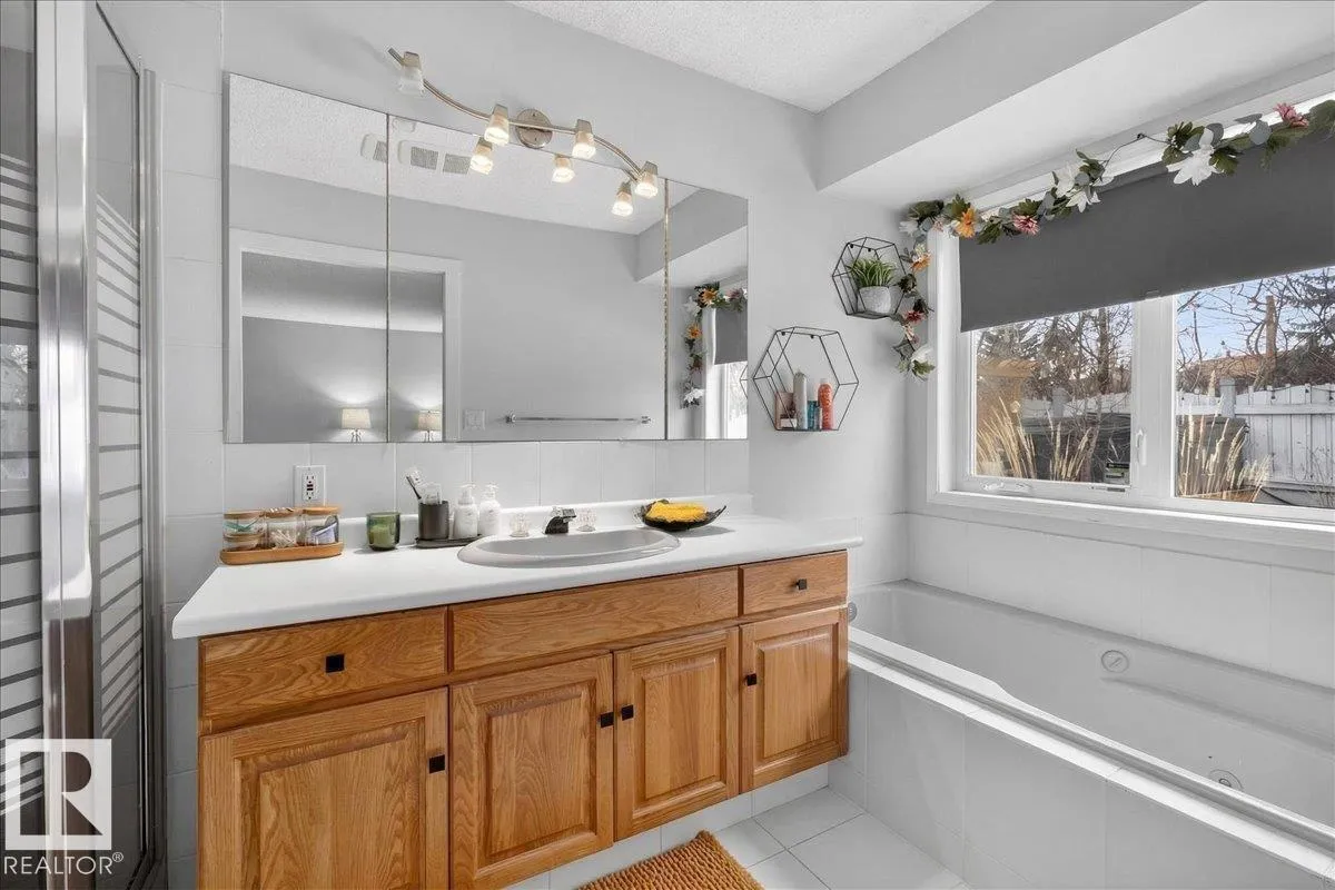 Beautifully maintained bungalow thats been in the same family since new! Main floor is flooded w/ natural light from the bay windows. Open concept, dining, living area w/ a cozy fireplace. Kitchen has beautiful oak cabinets, tons of counter space, walk in pantry, breakfast nook. Main floor laundry. Master suite is massive w/ wall to wall closet, 4PC ensuite. Second bedroom is large w/ wall to wall closet as well. Another 4PC bath upstairs. Basement has pot lights through out w/ a 2nd kitchen for multi generational living OR turn it into a bar/ games room for the ultimate entertaining area. Another 4PC bath on in the basement. 3rd Large bedroom. There is a large unfinished area in the basement with a roughed in laundry and potential to build in another bedroom. HEATED dbl attached garage. Amazing backyard has a tiled patio, built in summer kitchen w/ BBQ & mini fridge. Another deck w/ Pergola & roughed in for hot tub. Backing onto natural area & no thru road. Don't miss out on this GEM! (id:27476)