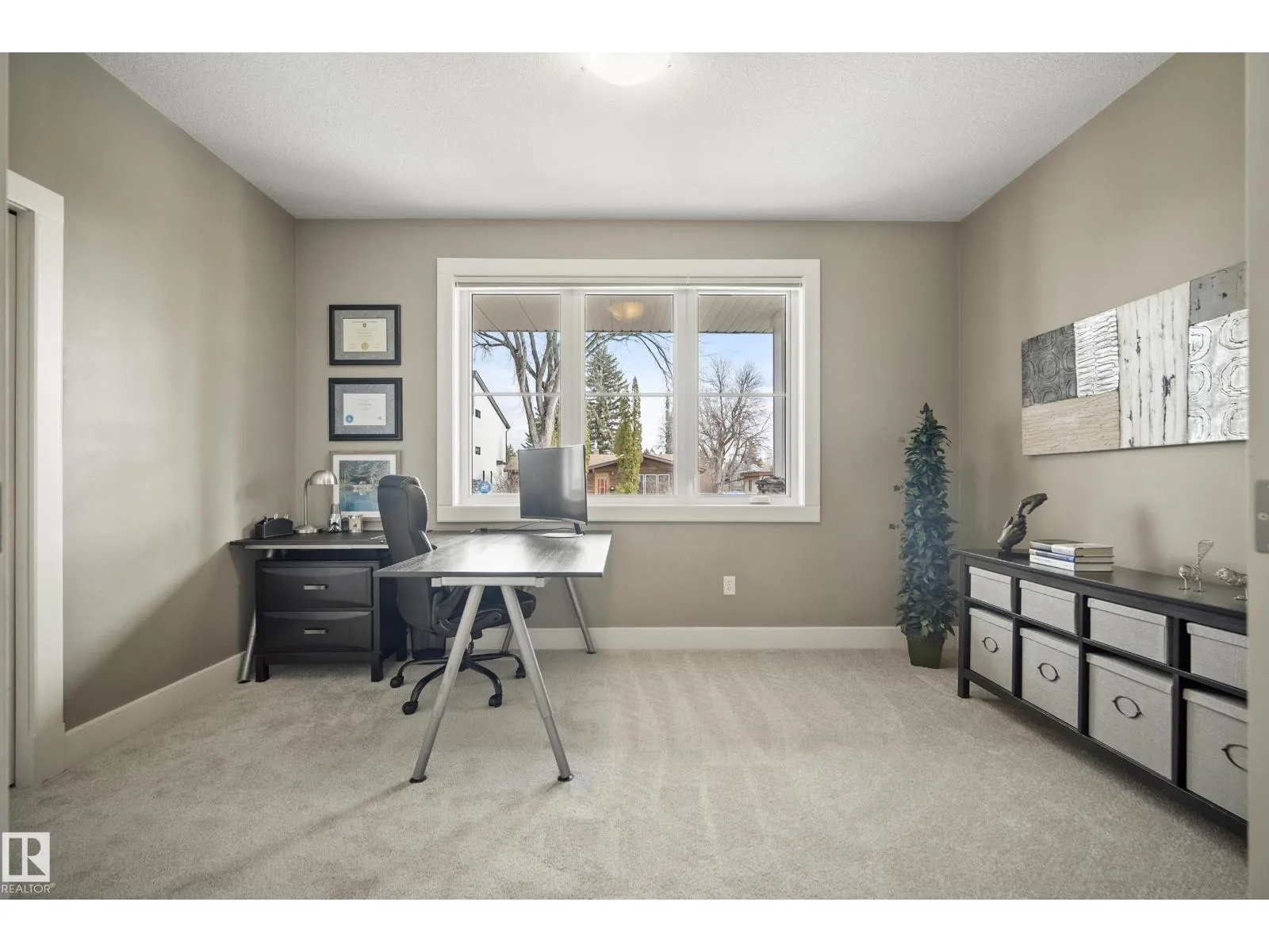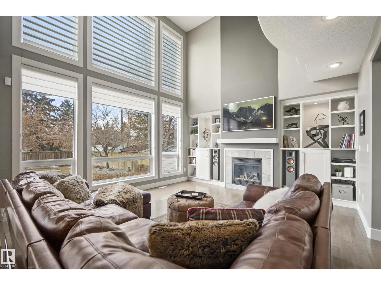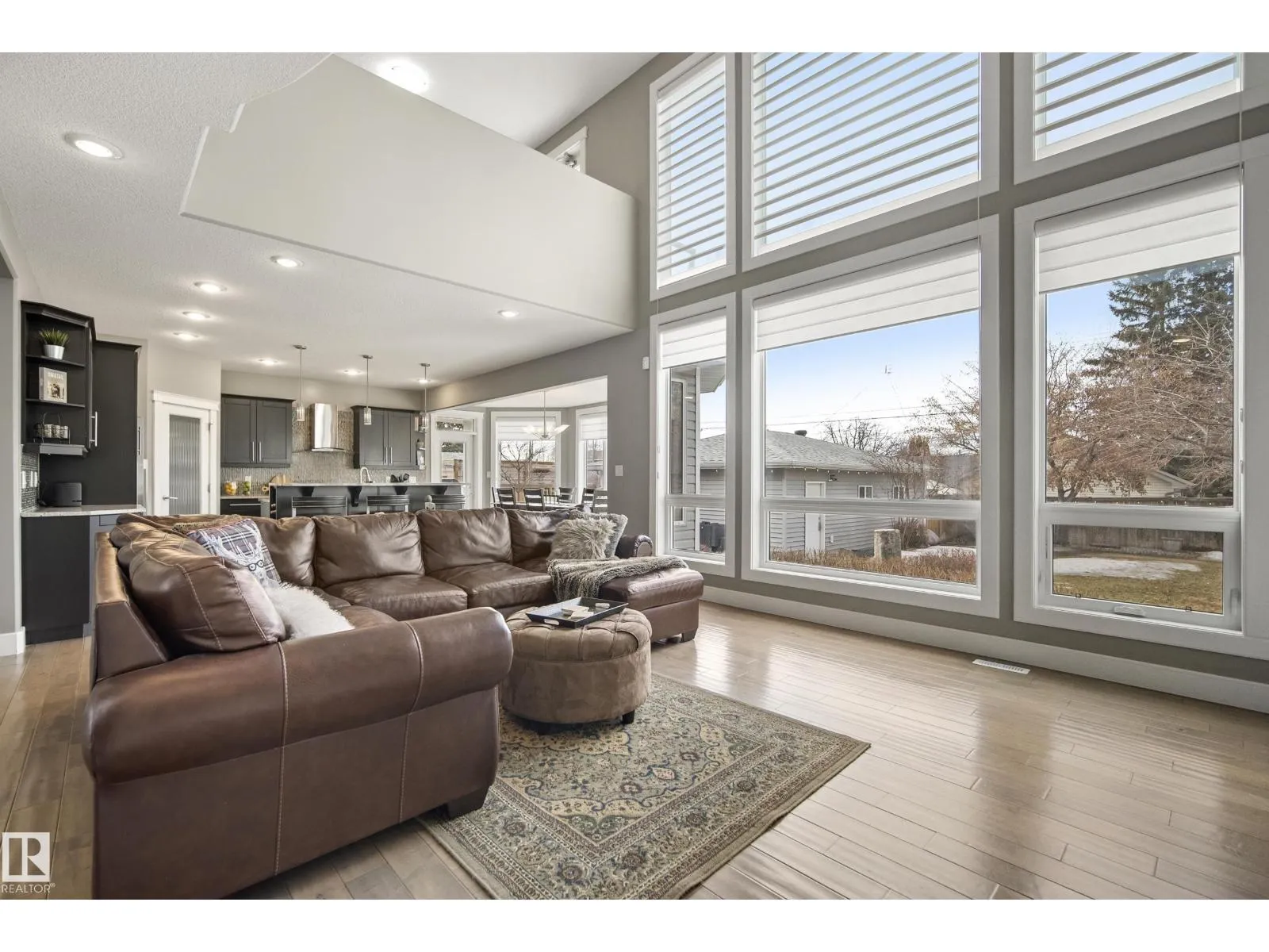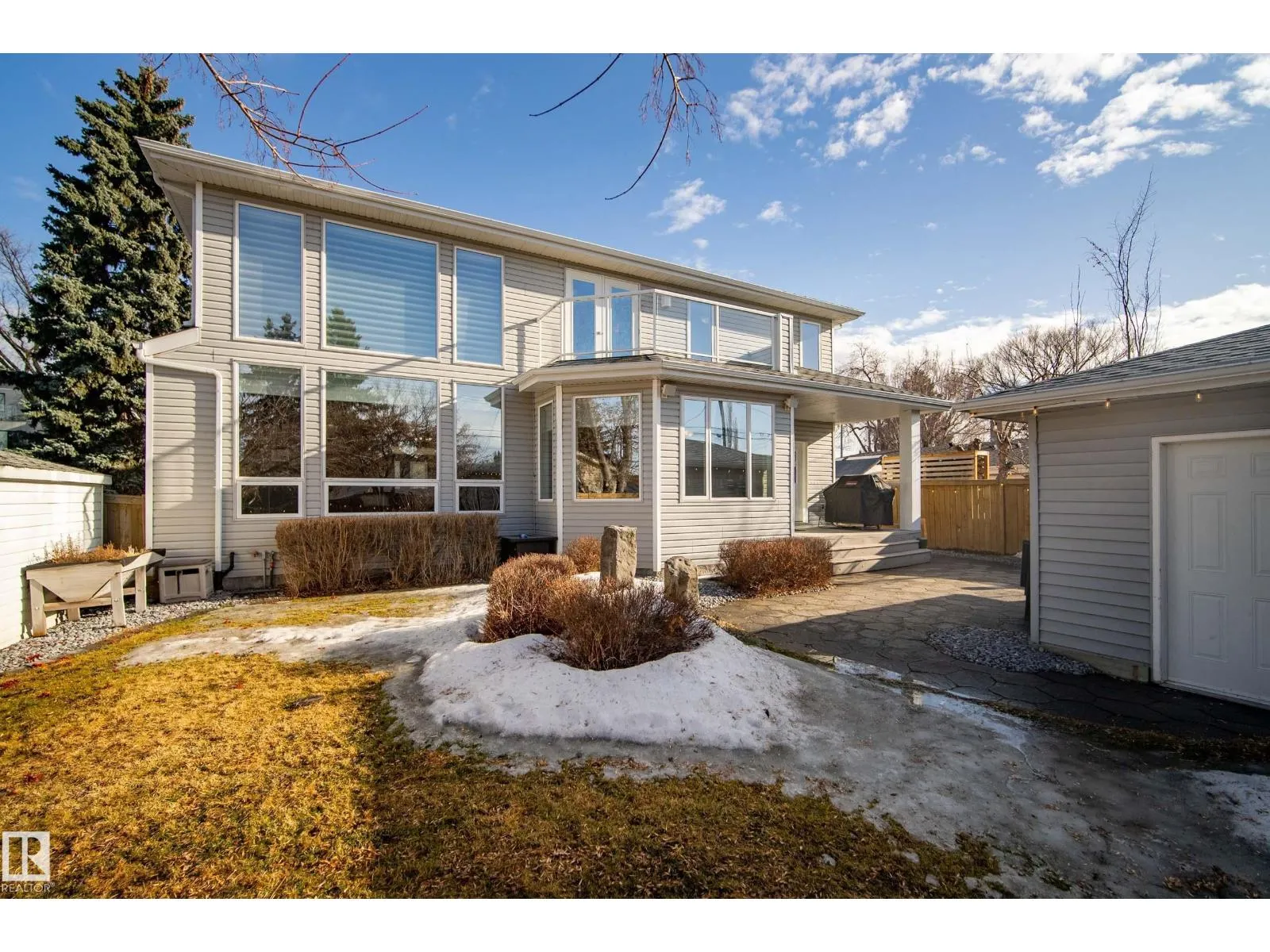 Discover this architectural 2,600+ sq ft executive home in Edmontonâs coveted Capilano, just steps from the river valley, Gold Bar Park trails, and minutes to downtown. This custom residence features a striking open-to-below design in the great room, and a dedicated main-floor den that can serve as an additional bedroom, conveniently located next to a full 3-piece bathroom. The main level is bathed in incredible natural light from an abundance of windows. Ascend to the functional upper level featuring a central family room with access to a large private balcony, plus a massive primary retreat with a spa-like 5-piece ensuite. The massive, already framed-out basement is a rare find, ready for your seamless development into extra bedrooms or a recreation space. Complete with an over-sized, heated detached garage, this home is a rare blend of prime location, high-end design, and exceptional growth potential. Your opportunity to live in the heart of Capilano. (id:27476)