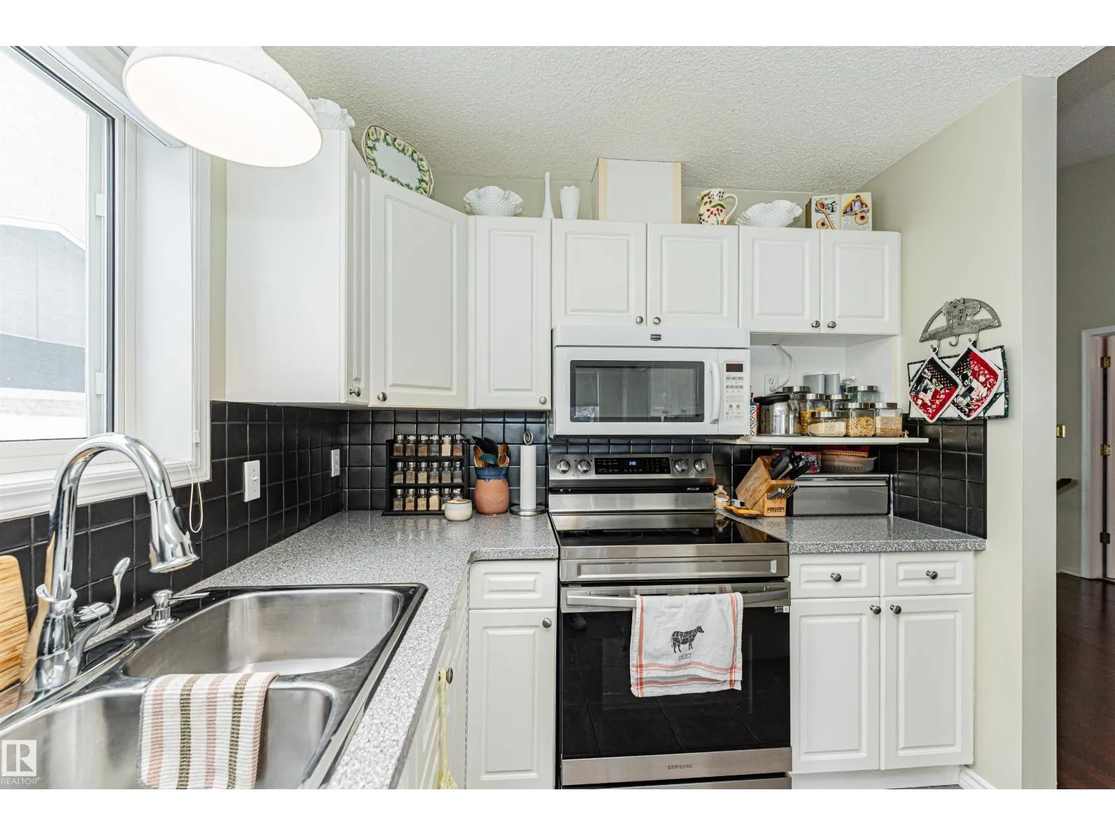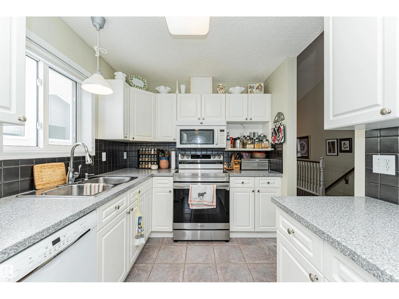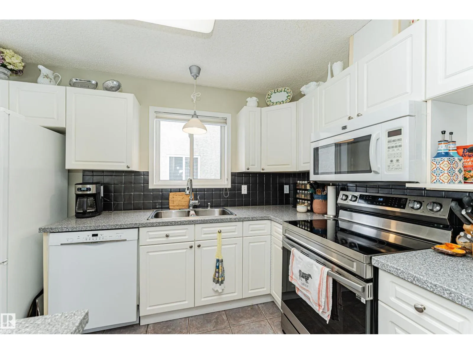 Absolutely gorgeous Air Conditioned 1,222 sq' Adult Bungalow Duplex in Village Terra Losa, nestled on a quiet street. This well maintained complex has low condo fees. Enjoy a private gated front Courtyard & a West facing common lawn at rear. Bonus: the Westend Seniors Activity Centre across the street. Main Floor: 2 large Bedrooms, Laundry, vaulted ceiling & gleaming engineered hardwood. The Contemporary Kitchen features white cabinets, Corian counters, a new st/st stove, tile floor & backsplash & is open to a sunny Dinette & large enclosed 3 Season Sun Room w Gas BBQ hook up. Enjoy the West sun & view to green space. A large Living Room w 2 sided gas FP is open to the Dining Room. A spacious Primary Bedroom has a Walk in closet, 3pc Ensuite & access to Sun Room. The finished Bsmt features a large Family Room w built in wall bar, 3rd Bedroom + Bathroom, huge Storage Rm w work bench & lots of shelving + Utility area. Upgrades: Furnace 2024, A/C 2024, Water heater 2022, O/H Garage Door 2025, Shingles 2015. (id:27476)