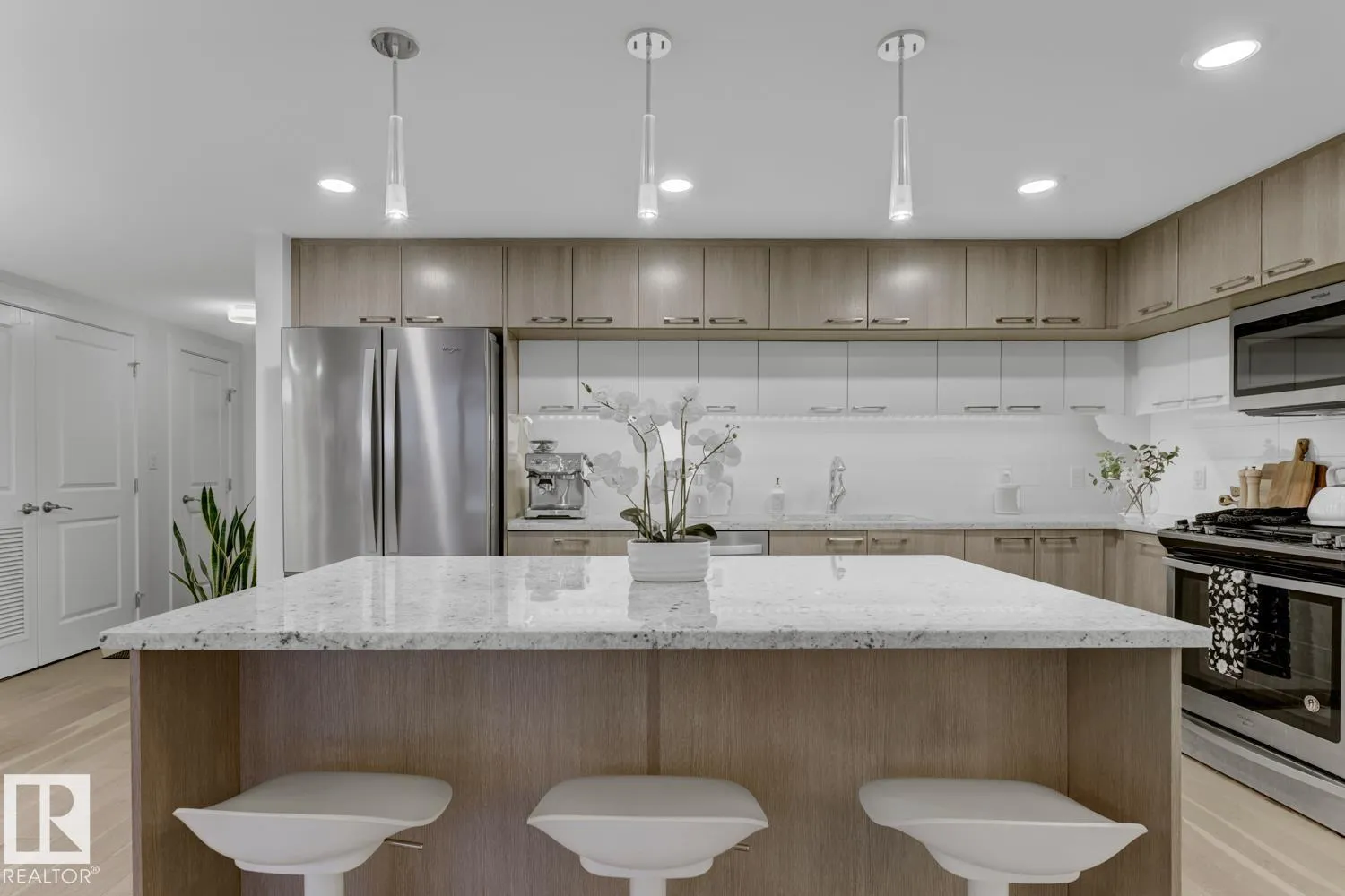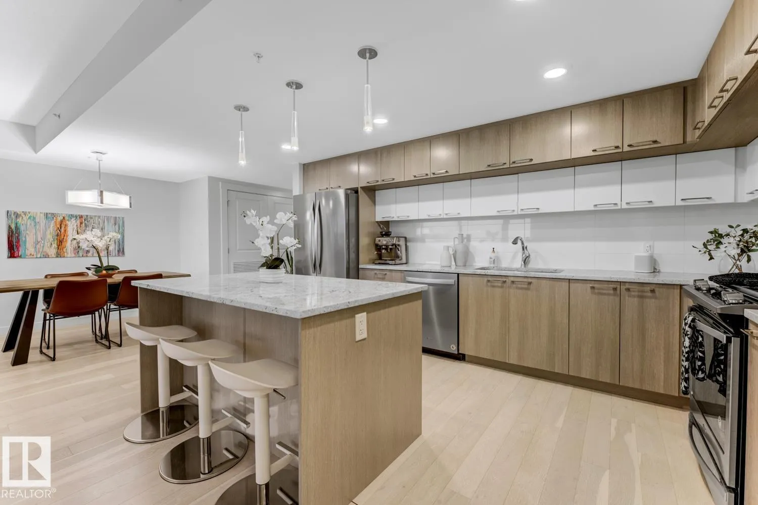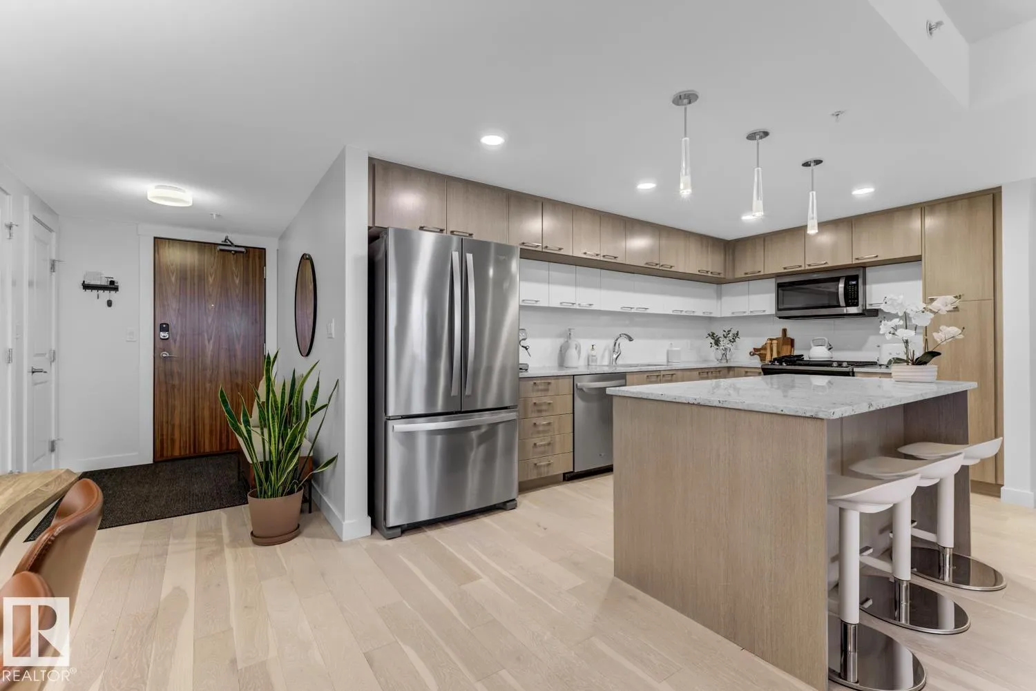 Set in prestigious Symphony Tower, this impressive 2-bed, 2-bath condo offers an elevated lifestyle in one of downtown Edmontonâs most desirable locations. Perfectly positioned along edge of the Alberta Legislative Grounds, this residence combines style, comfort, & convenience. The open-concept design features a beautifully appointed kitchen with a large island, two-tone Kitchen Craft cabinetry, pendant & recessed lighting, & stainless steel appliances including a gas range. Porcelain tile, engineered brushed hardwood, central A/C, & dramatic floor-to-ceiling glass curtain walls create a bright & polished living space. Enjoy stunning views from 2 glass balconies, from the Walterdale & the Legislature to the Muttart Conservatory, along with outstanding building amenities including a fitness facility, social room with kitchen, 4th floor outdoor patio, & secure heated underground parking with keyless entry & car wash. Enjoy upscale condo living just steps from downtown, parks, golf & the river valley. (id:27476)