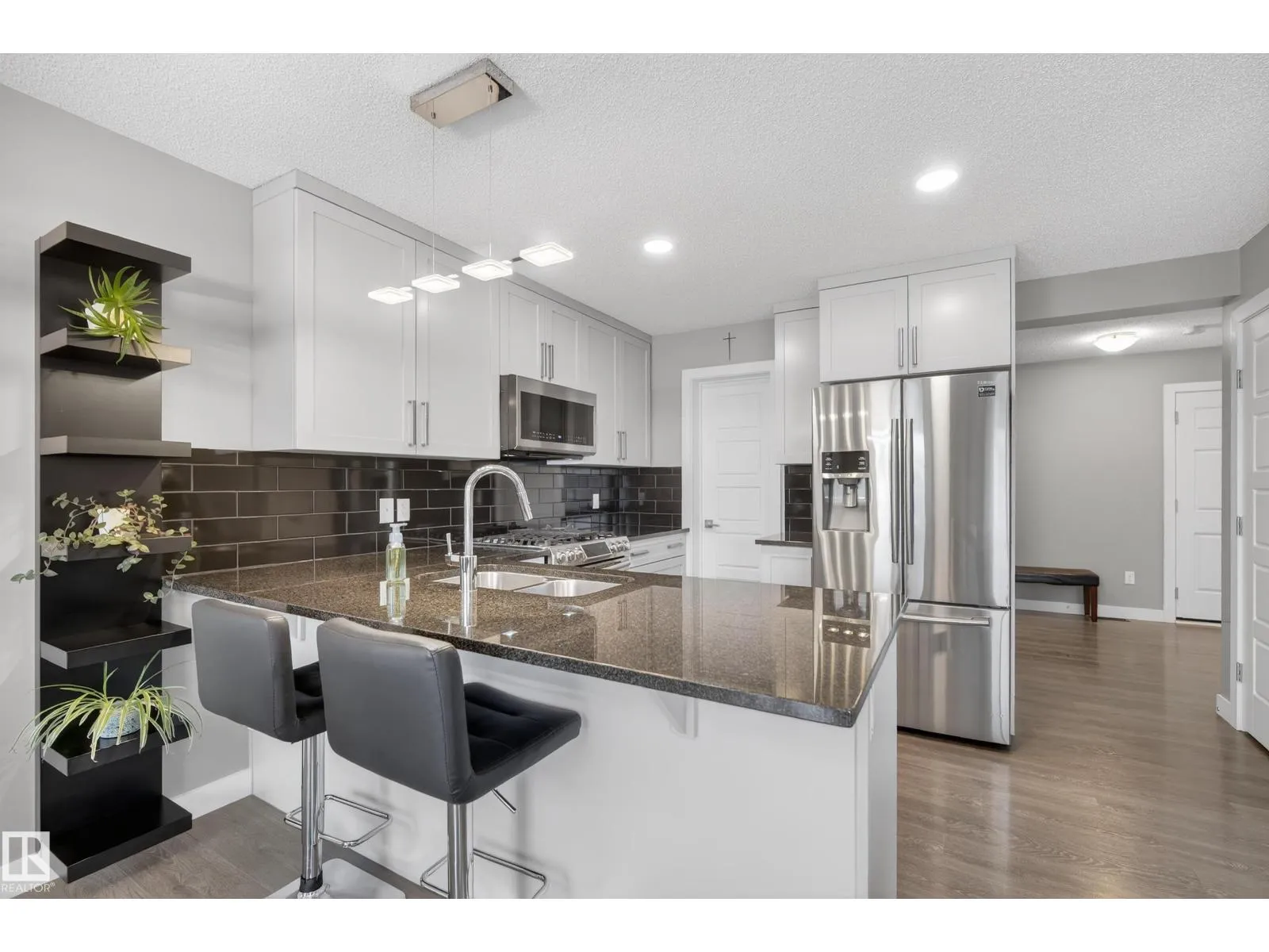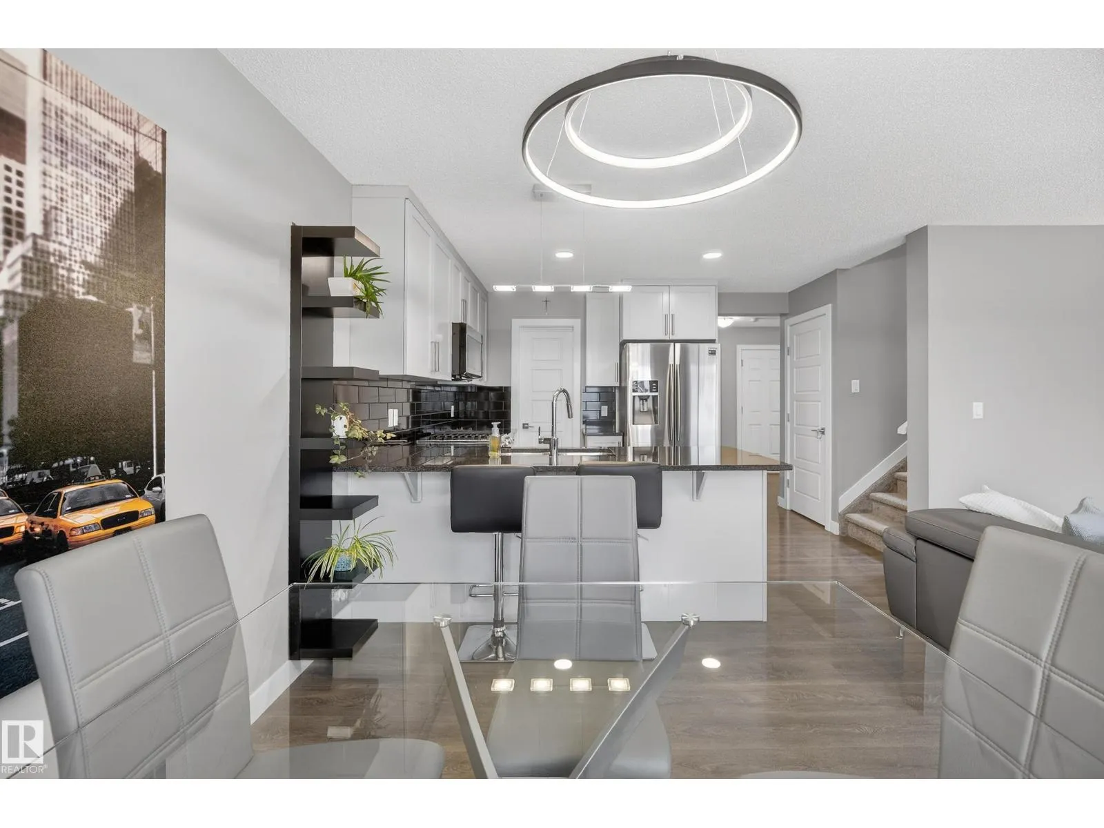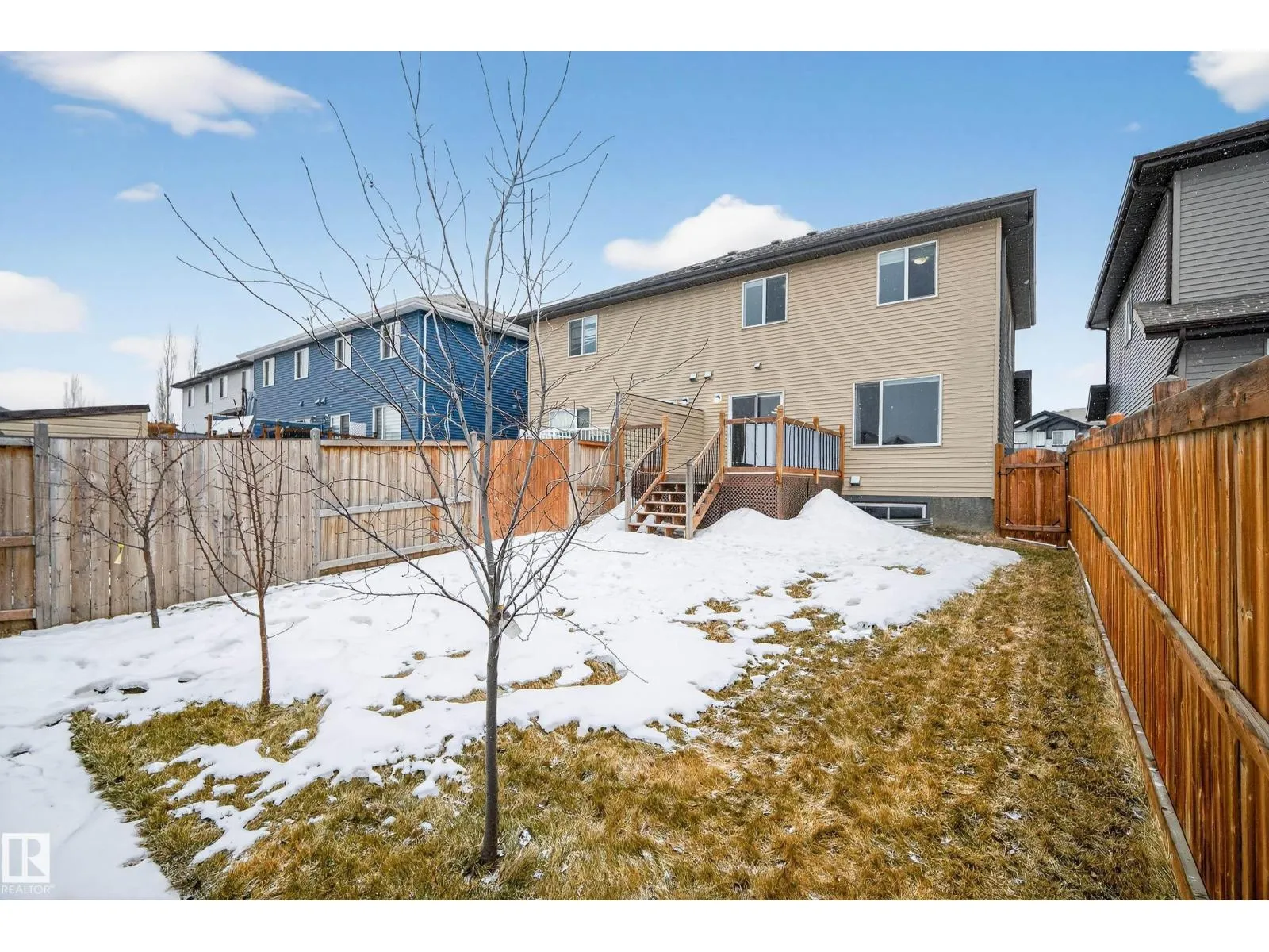 TURN-KEY half duplex in Webber Greens, tucked away on a quiet cul-de-sac. The main floor features a modern kitchen with a HUGE PANTRY, quartz countertops, tile backsplash, and GAS STOVE, all open to a spacious living room and dining area. Upstairs youâll find a king-sized primary bedroom with TWO WALK-IN CLOSETS, a large ensuite with DOUBLE SINK VANITY and a walk-in tiled shower. Two great-sized secondary bedrooms, a 4pc bath, and convenient UPSTAIRS LAUNDRY complete the upper level. The unfinished basement is wide open and ready for your finishing touches. The large, fully fenced backyard features an east-facing deck, perfect for enjoying the morning sun. Located within walking distance to K-9 schools, with quick access to groceries, restaurants, Lewis Farms Transit Centre, and the Anthony Henday for an easy commute. (id:27476)