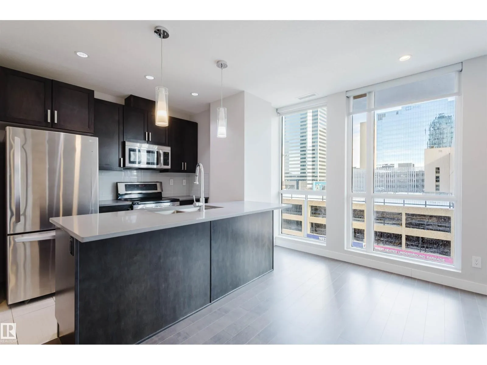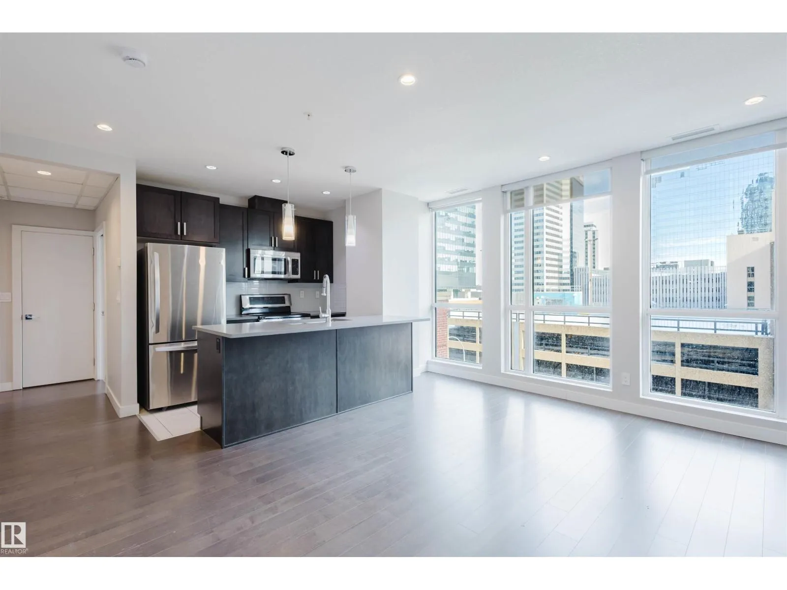 Welcome to this TWO bedrooms ONE bath condo unit in the highly sought-after ULTIMA located in the heart of the Ice District in downtown. Open concept floor plan features floor-to-ceiling windows with lots of natural light; 9â ceiling & hardwood flooring in the living room; Kitchen has quartz countertops & stainless steel appliances. Two gernously sized bedrooms, one full bath and in-suite laundry. The Ultima offers great amenities including central A/C, gym, social room & outdoor patio with hot tub. Walking distance to Rogers Place, City Centre, LRT, Grant Macewan University, restaurants, bars and much more! Perfect for students, professionals, investors or small business owners looking for a place to live & work! (id:27476)