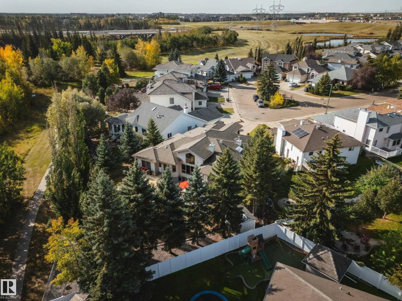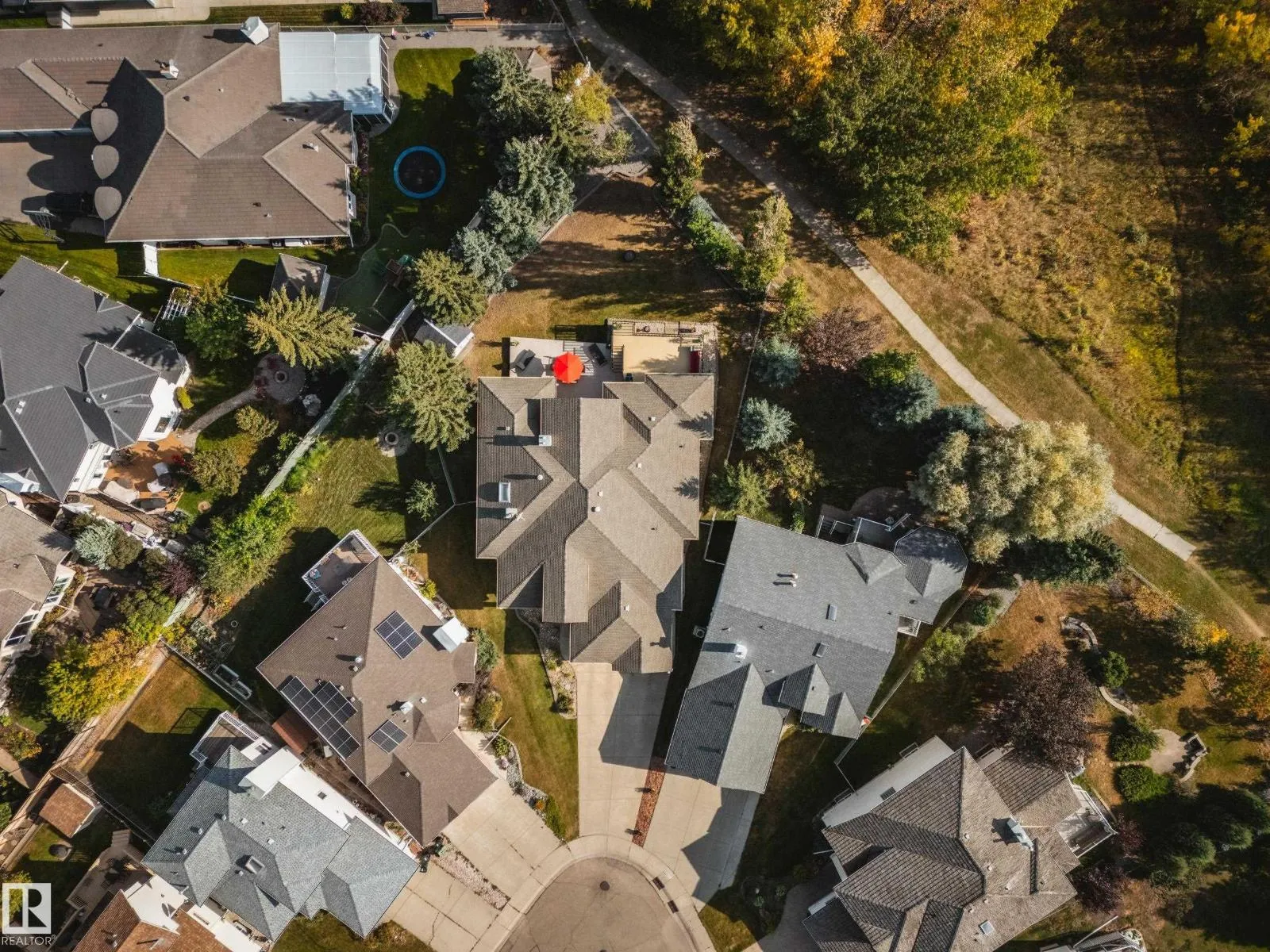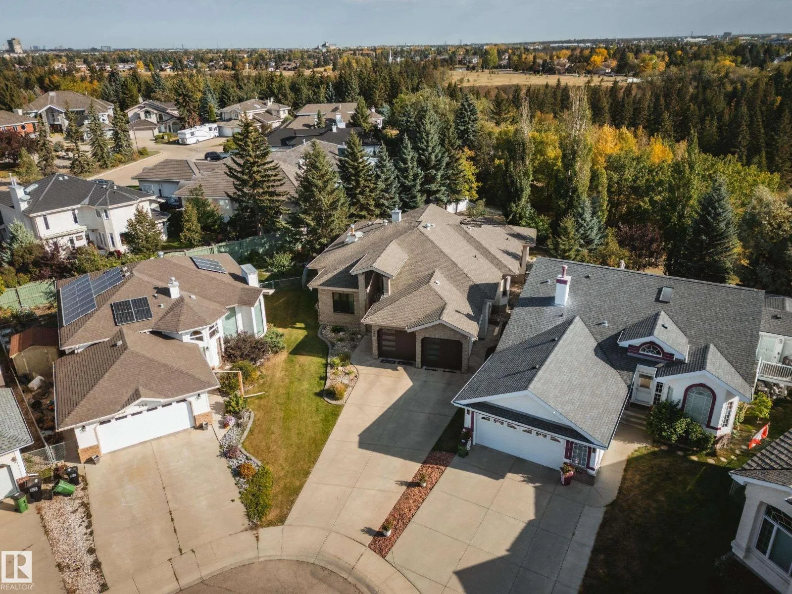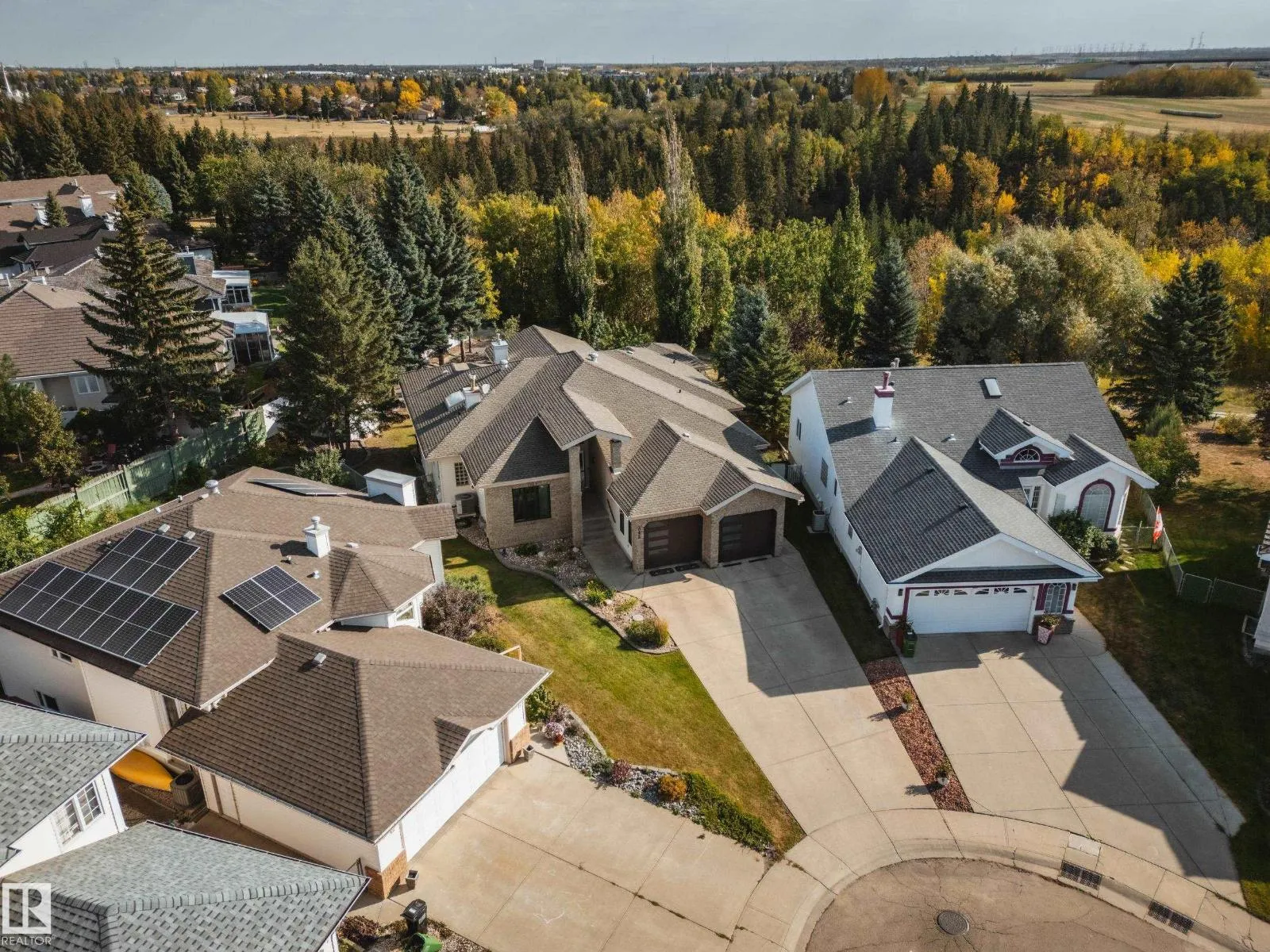 Absolutely stunning 2373 sqft bungalow backing directly onto Blackmud Creek Ravineâthis is the one youâve been waiting for. Located in a quiet cul-de-sac in desirable Twin Brooks, this rare pie-shaped lot offers a beautifully landscaped, oversized backyard with direct access to scenic walking and biking trails. Inside, the home offers 2 beds up plus den, 2 more beds down plus flex room, is bright and spacious with 9â ceilings throughout and vaulted ceilings in the foyer and great room. The formal dining area with pillars is perfect for entertaining, while the expansive kitchen features solid oak cabinetry and abundant counter space. The fully developed basement is exceptional, offering 9â ceilings, large windows, two furnaces, & incredible flexibility. Complete with a wet bar, full-size fridge, dishwasher, built-in sound wiring, three bedrooms, massive storage, and cold room. With central A/C and an unbeatable ravine location, this is a rare opportunity in one of Edmontonâs most sought-after communities. (id:27476)