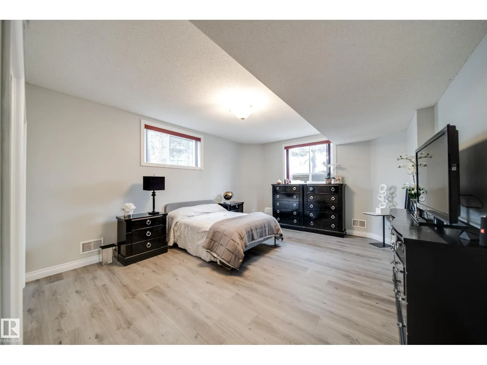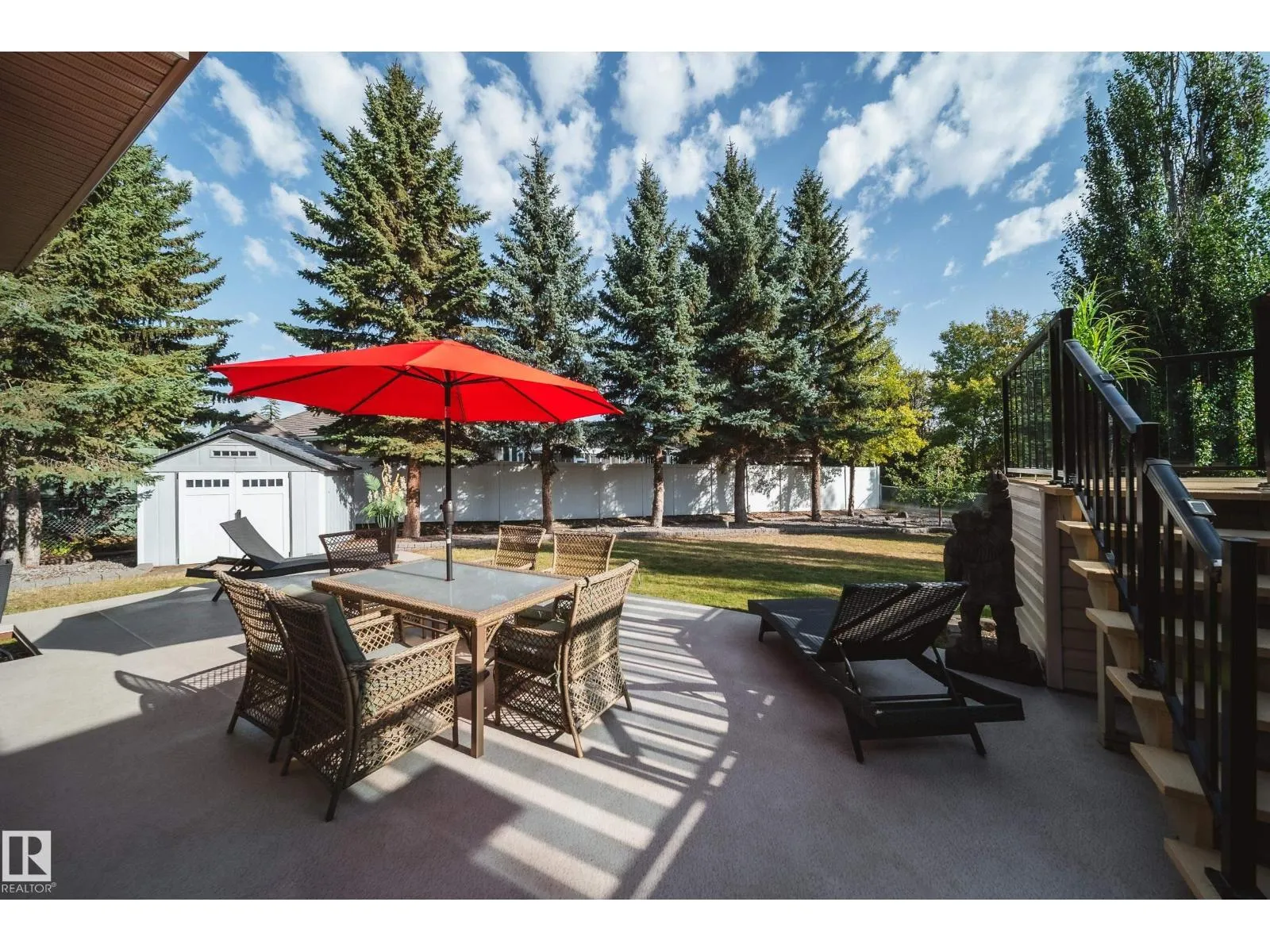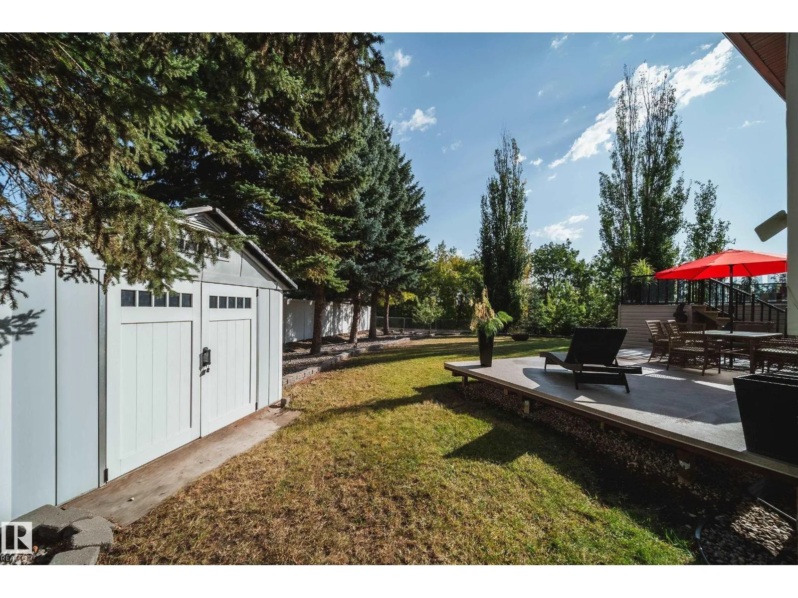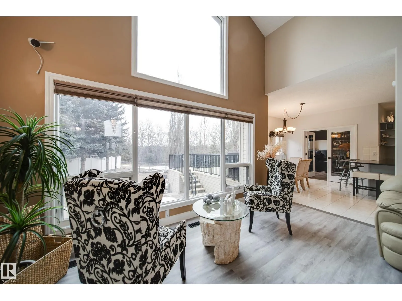 Absolutely stunning 2373 sqft bungalow backing directly onto Blackmud Creek Ravineâthis is the one youâve been waiting for. Located in a quiet cul-de-sac in desirable Twin Brooks, this rare pie-shaped lot offers a beautifully landscaped, oversized backyard with direct access to scenic walking and biking trails. Inside, the home offers 2 beds up plus den, 2 more beds down plus flex room, is bright and spacious with 9â ceilings throughout and vaulted ceilings in the foyer and great room. The formal dining area with pillars is perfect for entertaining, while the expansive kitchen features solid oak cabinetry and abundant counter space. The fully developed basement is exceptional, offering 9â ceilings, large windows, two furnaces, & incredible flexibility. Complete with a wet bar, full-size fridge, dishwasher, built-in sound wiring, three bedrooms, massive storage, and cold room. With central A/C and an unbeatable ravine location, this is a rare opportunity in one of Edmontonâs most sought-after communities. (id:27476)