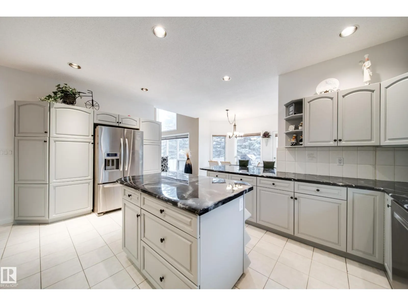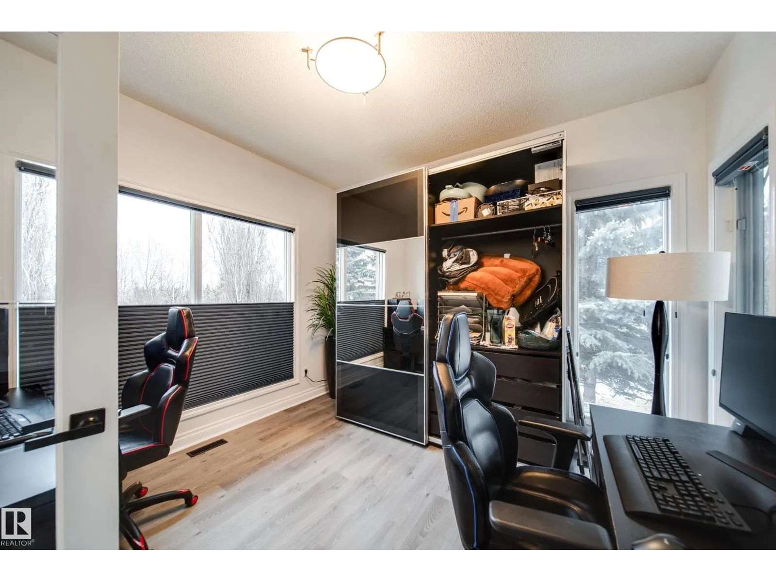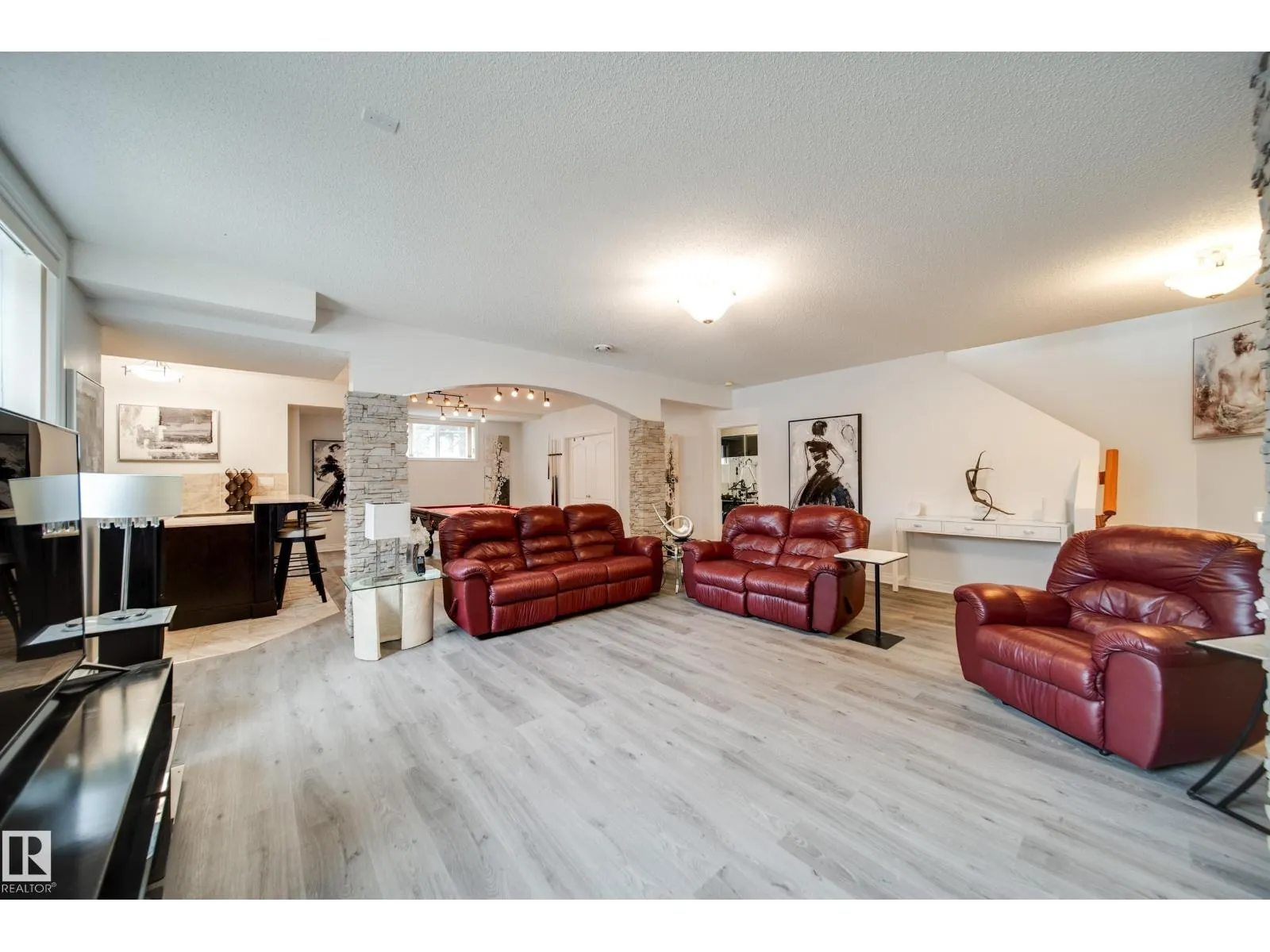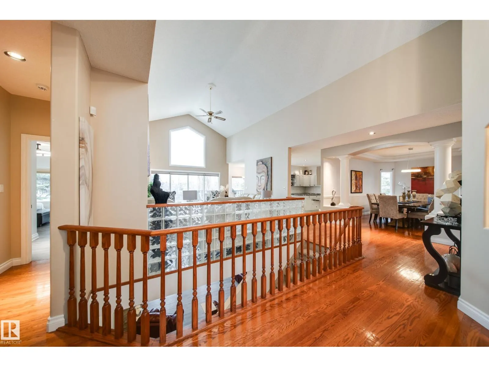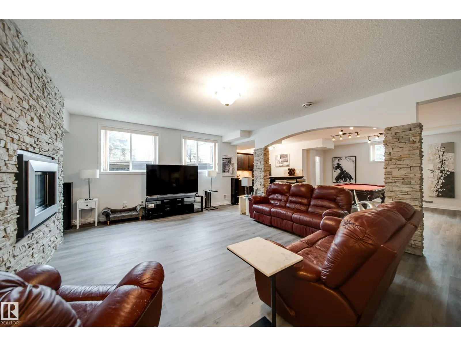 Absolutely stunning 2373 sqft bungalow backing directly onto Blackmud Creek Ravineâthis is the one youâve been waiting for. Located in a quiet cul-de-sac in desirable Twin Brooks, this rare pie-shaped lot offers a beautifully landscaped, oversized backyard with direct access to scenic walking and biking trails. Inside, the home offers 2 beds up plus den, 2 more beds down plus flex room, is bright and spacious with 9â ceilings throughout and vaulted ceilings in the foyer and great room. The formal dining area with pillars is perfect for entertaining, while the expansive kitchen features solid oak cabinetry and abundant counter space. The fully developed basement is exceptional, offering 9â ceilings, large windows, two furnaces, & incredible flexibility. Complete with a wet bar, full-size fridge, dishwasher, built-in sound wiring, three bedrooms, massive storage, and cold room. With central A/C and an unbeatable ravine location, this is a rare opportunity in one of Edmontonâs most sought-after communities. (id:27476)