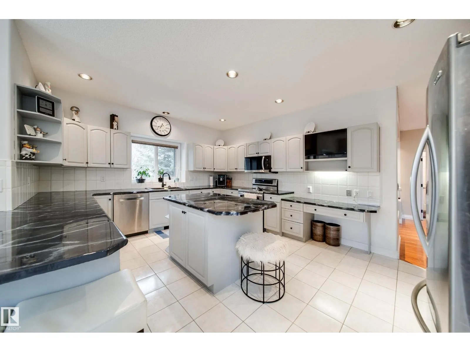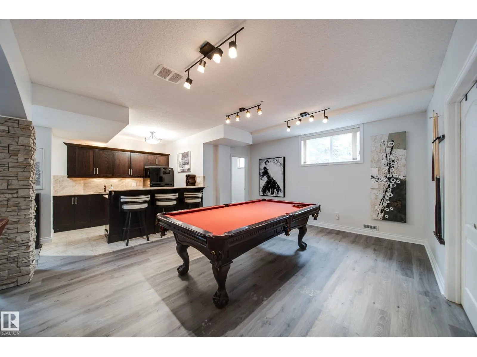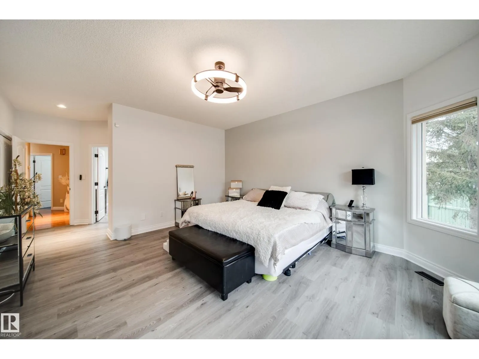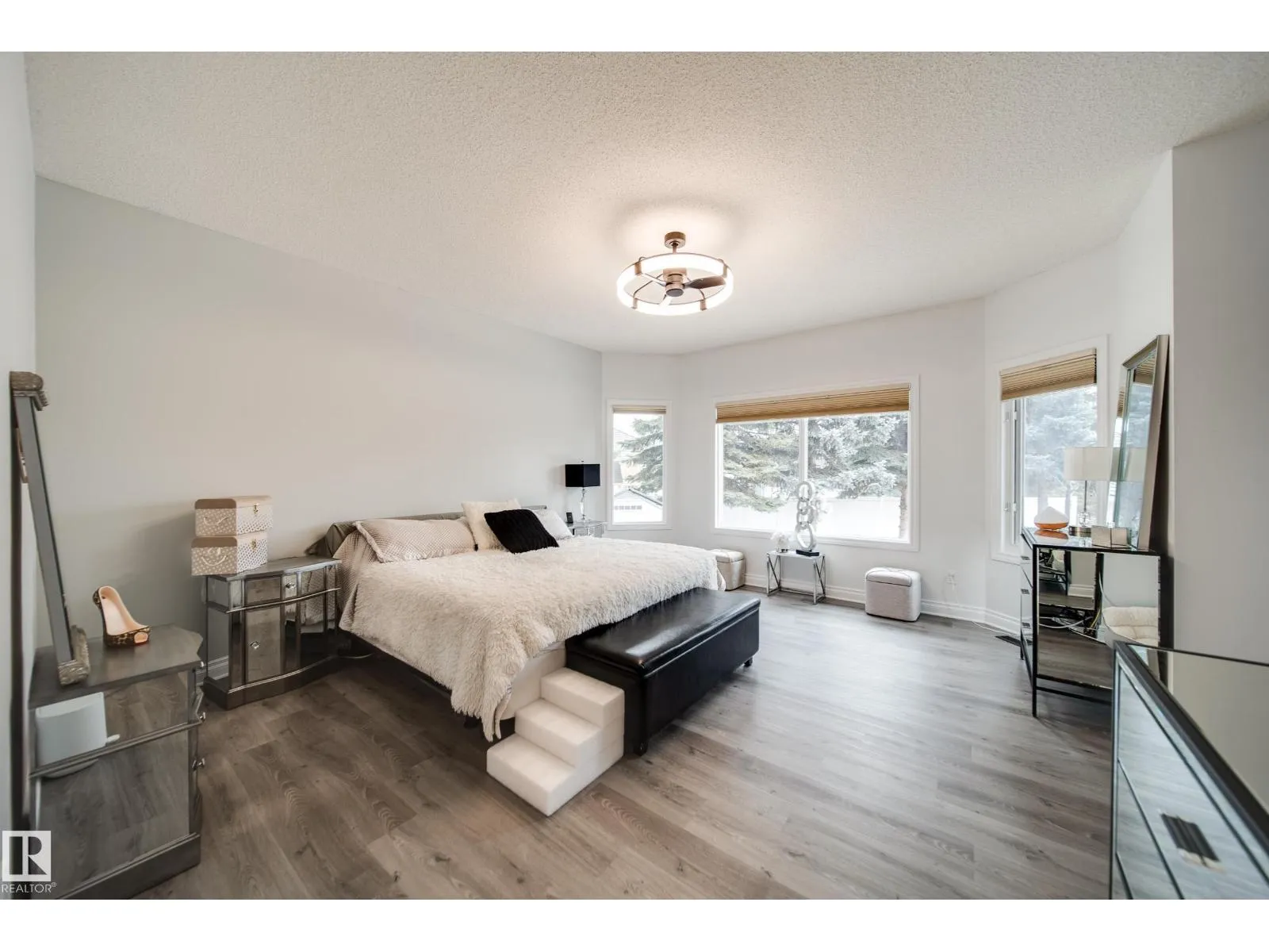 Absolutely stunning 2373 sqft bungalow backing directly onto Blackmud Creek Ravineâthis is the one youâve been waiting for. Located in a quiet cul-de-sac in desirable Twin Brooks, this rare pie-shaped lot offers a beautifully landscaped, oversized backyard with direct access to scenic walking and biking trails. Inside, the home offers 2 beds up plus den, 2 more beds down plus flex room, is bright and spacious with 9â ceilings throughout and vaulted ceilings in the foyer and great room. The formal dining area with pillars is perfect for entertaining, while the expansive kitchen features solid oak cabinetry and abundant counter space. The fully developed basement is exceptional, offering 9â ceilings, large windows, two furnaces, & incredible flexibility. Complete with a wet bar, full-size fridge, dishwasher, built-in sound wiring, three bedrooms, massive storage, and cold room. With central A/C and an unbeatable ravine location, this is a rare opportunity in one of Edmontonâs most sought-after communities. (id:27476)