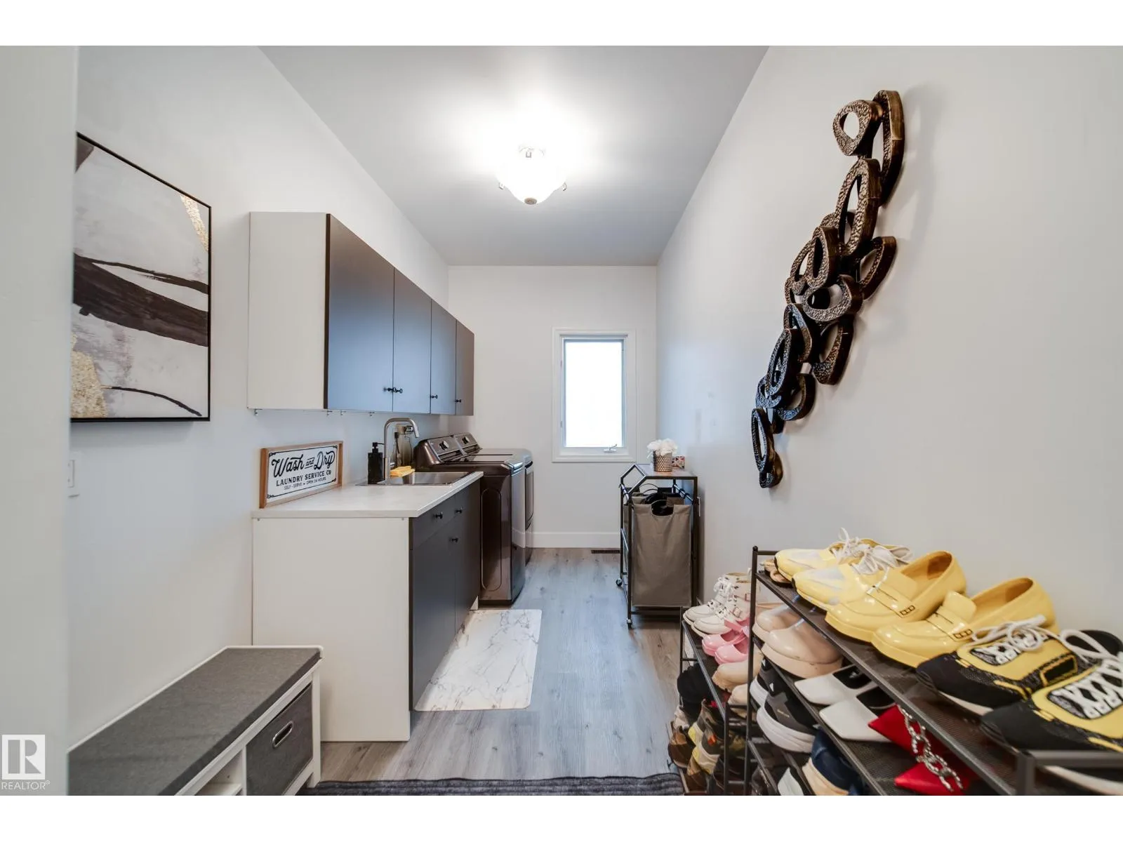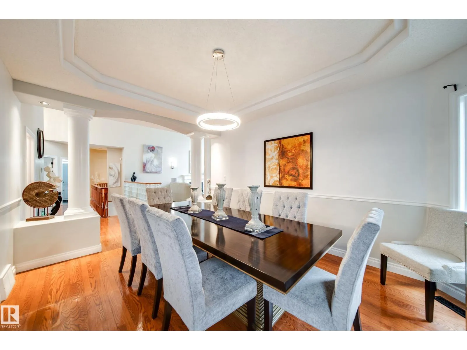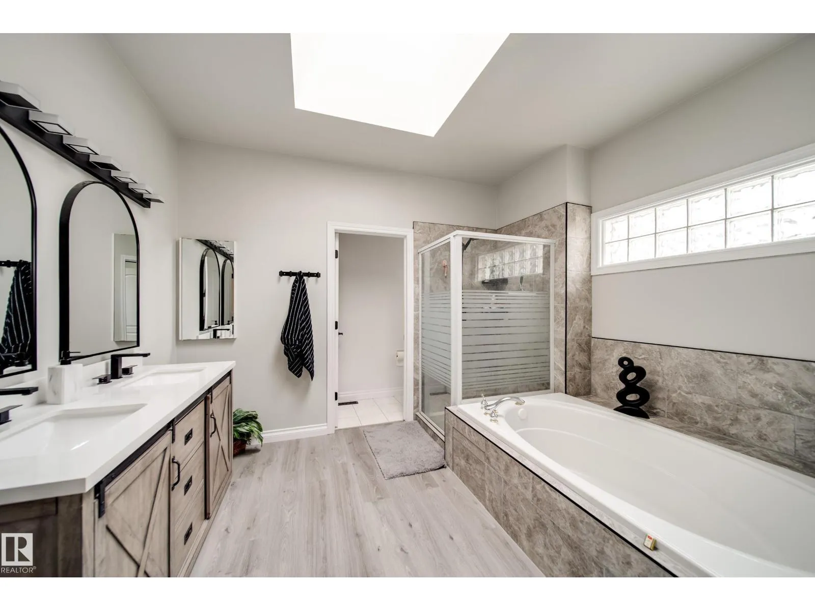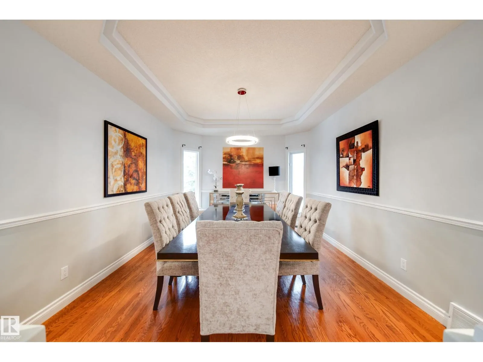 Absolutely stunning 2373 sqft bungalow backing directly onto Blackmud Creek Ravineâthis is the one youâve been waiting for. Located in a quiet cul-de-sac in desirable Twin Brooks, this rare pie-shaped lot offers a beautifully landscaped, oversized backyard with direct access to scenic walking and biking trails. Inside, the home offers 2 beds up plus den, 2 more beds down plus flex room, is bright and spacious with 9â ceilings throughout and vaulted ceilings in the foyer and great room. The formal dining area with pillars is perfect for entertaining, while the expansive kitchen features solid oak cabinetry and abundant counter space. The fully developed basement is exceptional, offering 9â ceilings, large windows, two furnaces, & incredible flexibility. Complete with a wet bar, full-size fridge, dishwasher, built-in sound wiring, three bedrooms, massive storage, and cold room. With central A/C and an unbeatable ravine location, this is a rare opportunity in one of Edmontonâs most sought-after communities. (id:27476)