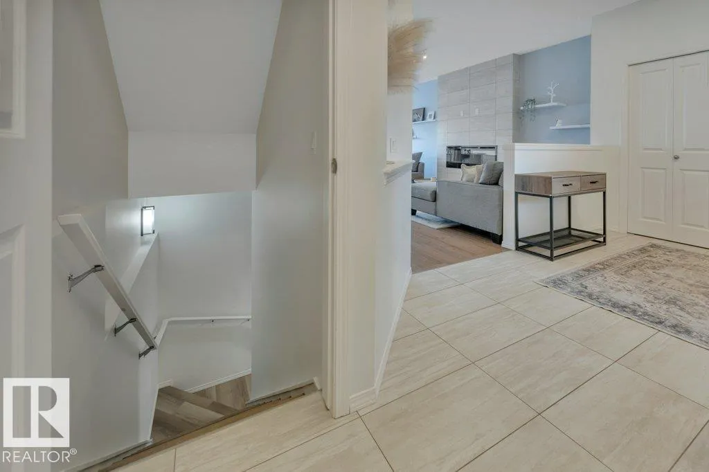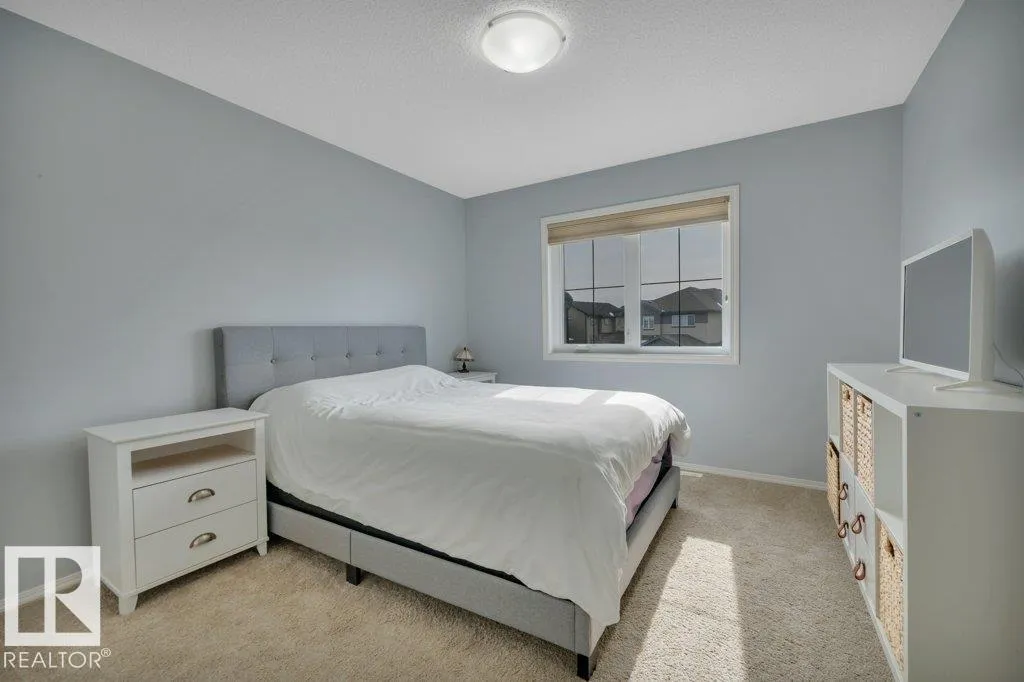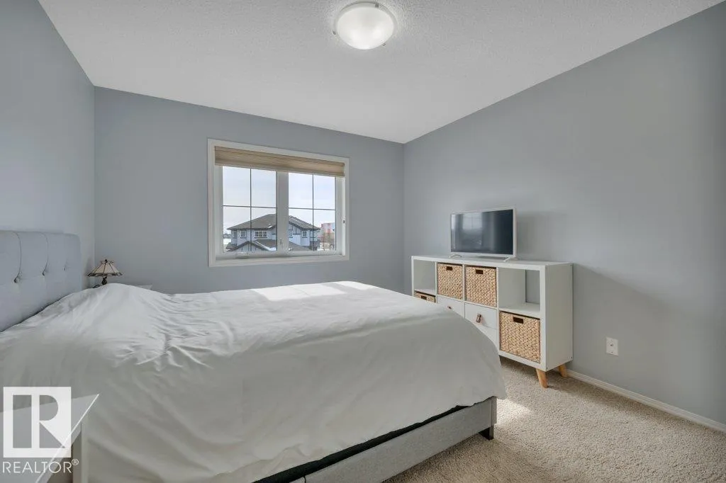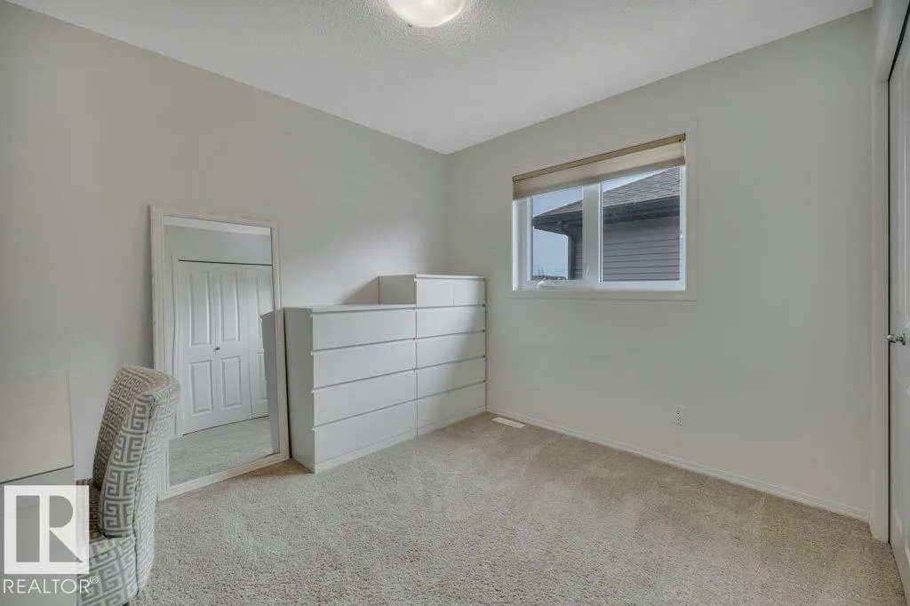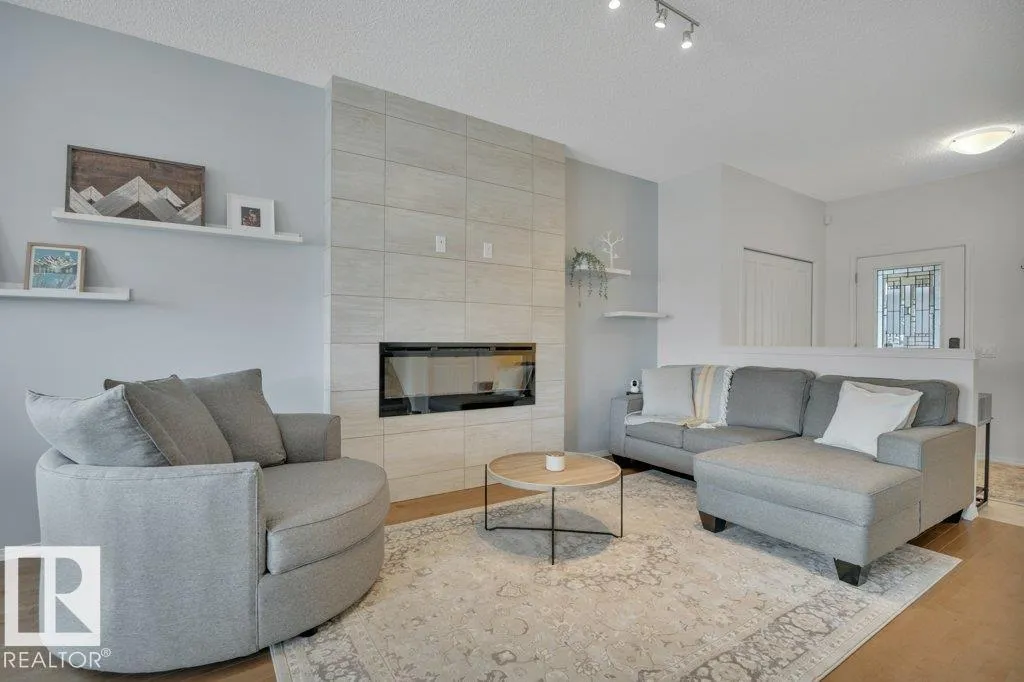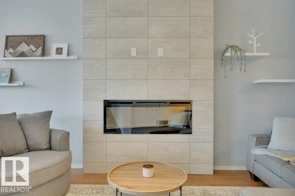 Bright, 2017 built, beautifully maintained half duplex in Webber Greens, just half a block from two schools! Over 1,600 sq ft above grade plus a fully finished basement (2024), 3 bedrooms, 2 full & 2 half bathsârare at this price! Minutes to the Henday, Whitemud, WEM & Lewis Farms Transit Centre. Main floor features 9â ceilings, hardwood floors, cozy electric fireplace with gorgeous floor-to-ceiling tile accent, tile entry, large windows & a stylish kitchen with quartz counters, extended cabinets, gas range, modern penny tile backsplash, a spacious pantry & central island with eating bar & feature lighting. Upstairs: 3 generous bedrooms, primary with walk-in closet & 4-piece ensuite with soaker tub, plus upper laundry room with storage. Basement (2024) fully finished with striking vinyl plank flooring, an impressive rec room/home gym, trendy 2-piece bath & separate storage room. Central A/C, fully fenced private yard with deck, no backyard neighbors, & a double attached insulated garage on a quiet street! (id:27476)