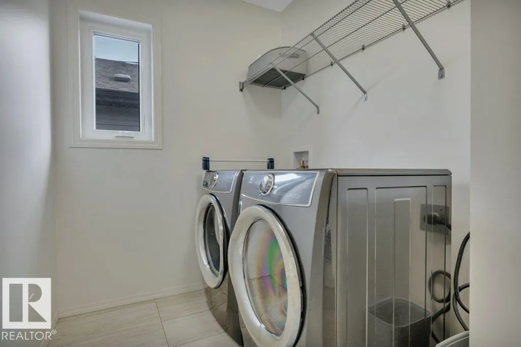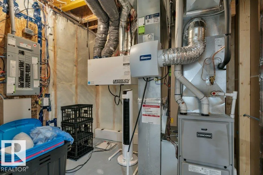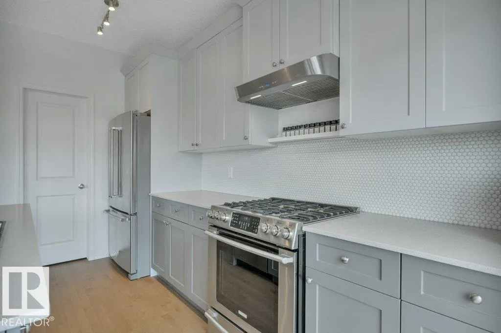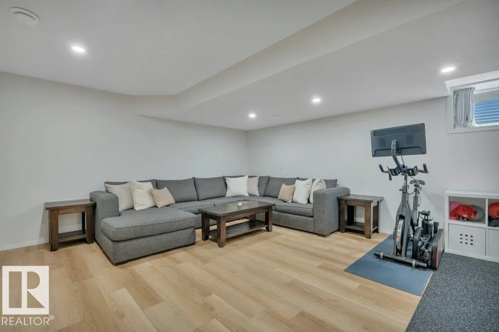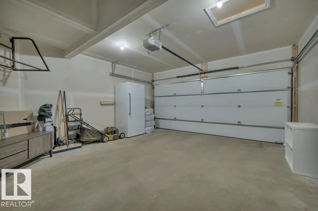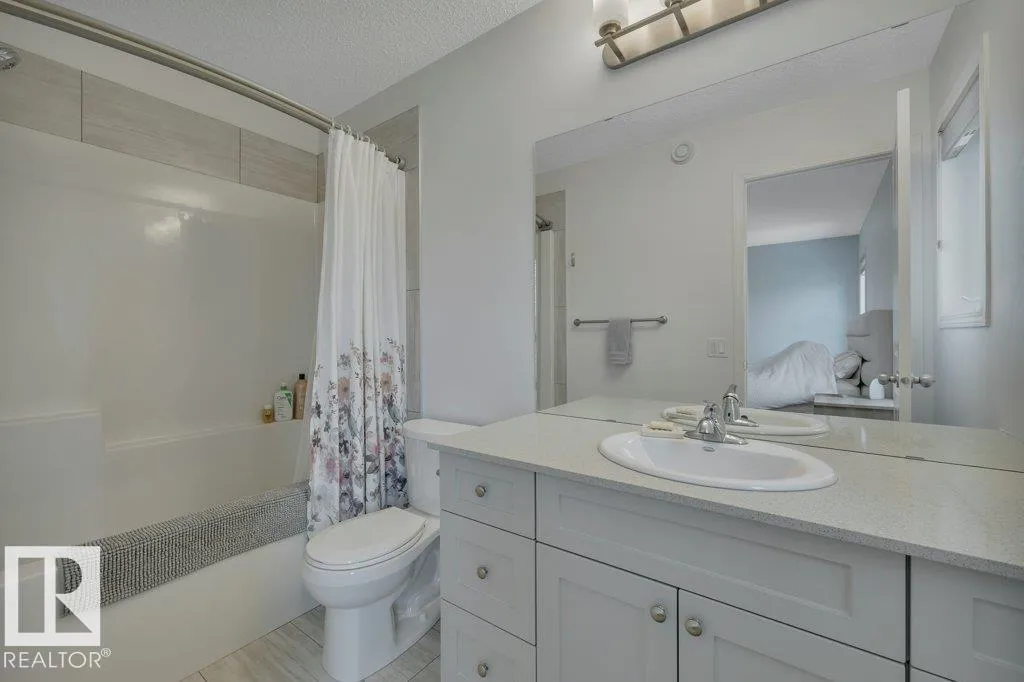 Bright, 2017 built, beautifully maintained half duplex in Webber Greens, just half a block from two schools! Over 1,600 sq ft above grade plus a fully finished basement (2024), 3 bedrooms, 2 full & 2 half bathsârare at this price! Minutes to the Henday, Whitemud, WEM & Lewis Farms Transit Centre. Main floor features 9â ceilings, hardwood floors, cozy electric fireplace with gorgeous floor-to-ceiling tile accent, tile entry, large windows & a stylish kitchen with quartz counters, extended cabinets, gas range, modern penny tile backsplash, a spacious pantry & central island with eating bar & feature lighting. Upstairs: 3 generous bedrooms, primary with walk-in closet & 4-piece ensuite with soaker tub, plus upper laundry room with storage. Basement (2024) fully finished with striking vinyl plank flooring, an impressive rec room/home gym, trendy 2-piece bath & separate storage room. Central A/C, fully fenced private yard with deck, no backyard neighbors, & a double attached insulated garage on a quiet street! (id:27476)