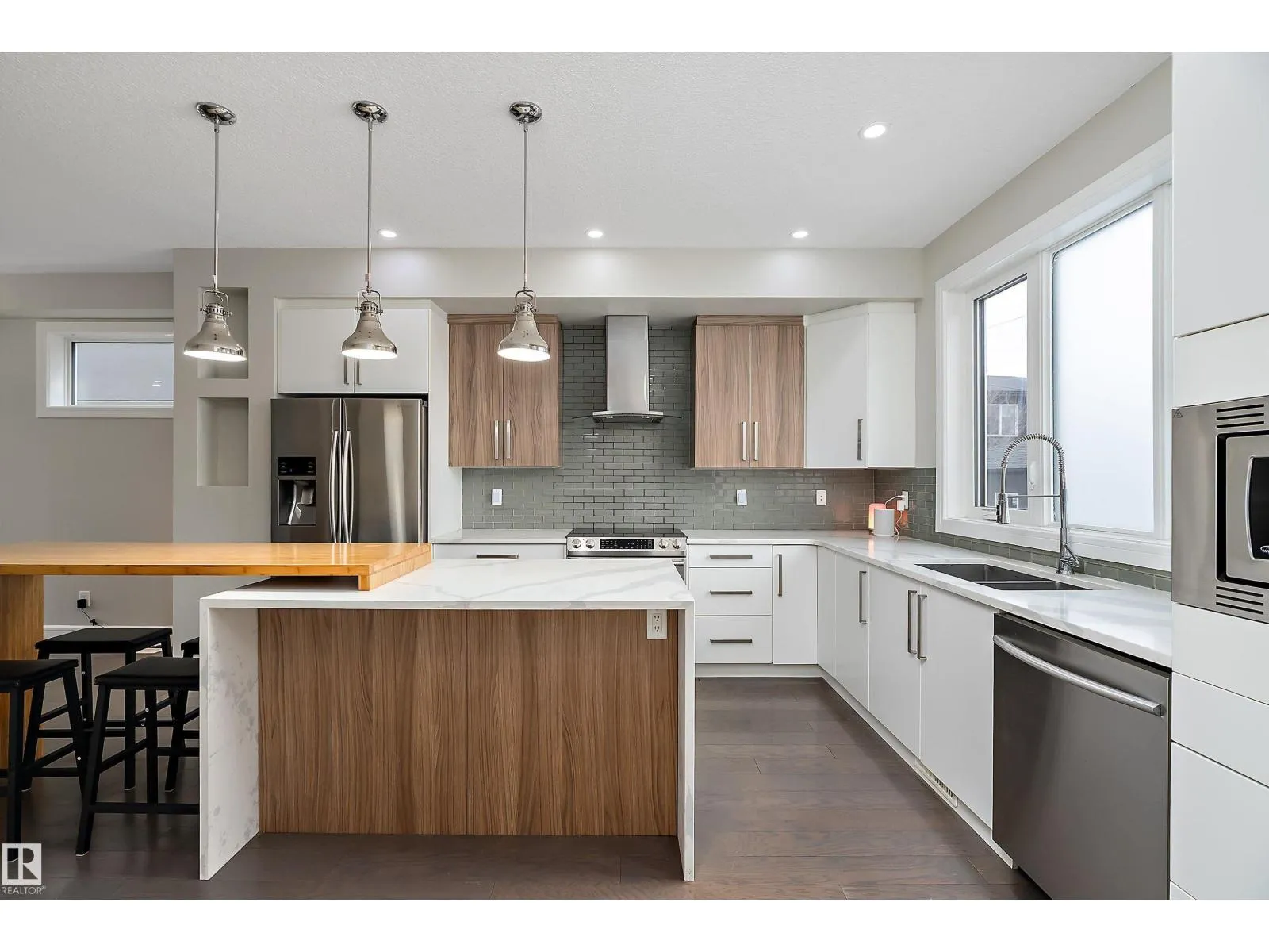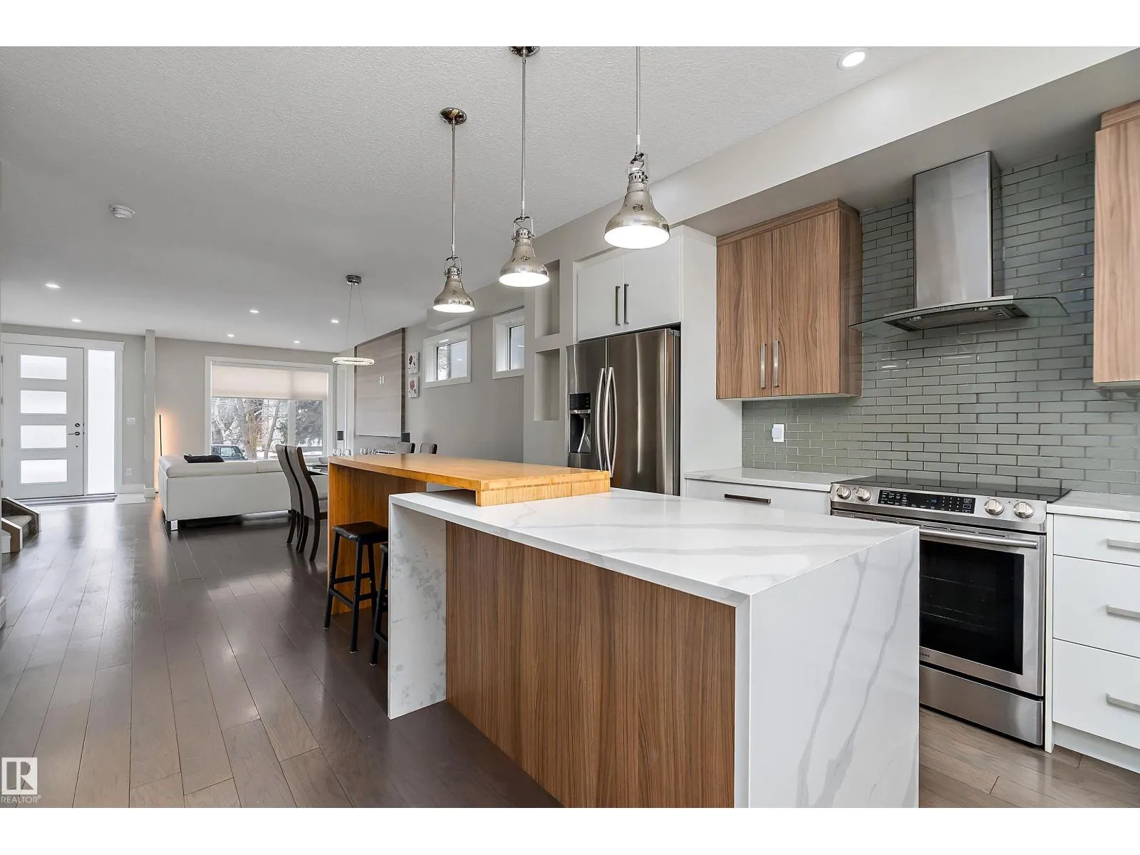 RARE OPPORTUNITY! Prime McKernan location just steps to the U of A & walking distance to LRTâideal for students, professionals & investors. This modern 1,627 sq.ft. 2-storey half-duplex offers a bright open-concept main floor featuring wide-plank flooring, large living room & sleek linear fireplace. The kitchen is designed for function & style with quartz countertops, waterfall island w/ raised eating bar, two-tone cabinetry & stainless steel appliances, flowing into the dining area. Rear mudroom + 2pc bath adds convenience. Upstairs features 3 bedrooms including a spacious primary with walk-in closet & ensuite, plus upper laundry. Fully finished basement with separate entrance offers added flexibility with a large family room, bedroom, full bath & storage. Fenced yard, deck & double detached garage. Walk to U of A, Whyte Ave, cafes, dining & transit. Great for young professionals who work or study at the U of A. This is a location you will not outgrow! Move-in ready with immediate possession available! (id:27476)