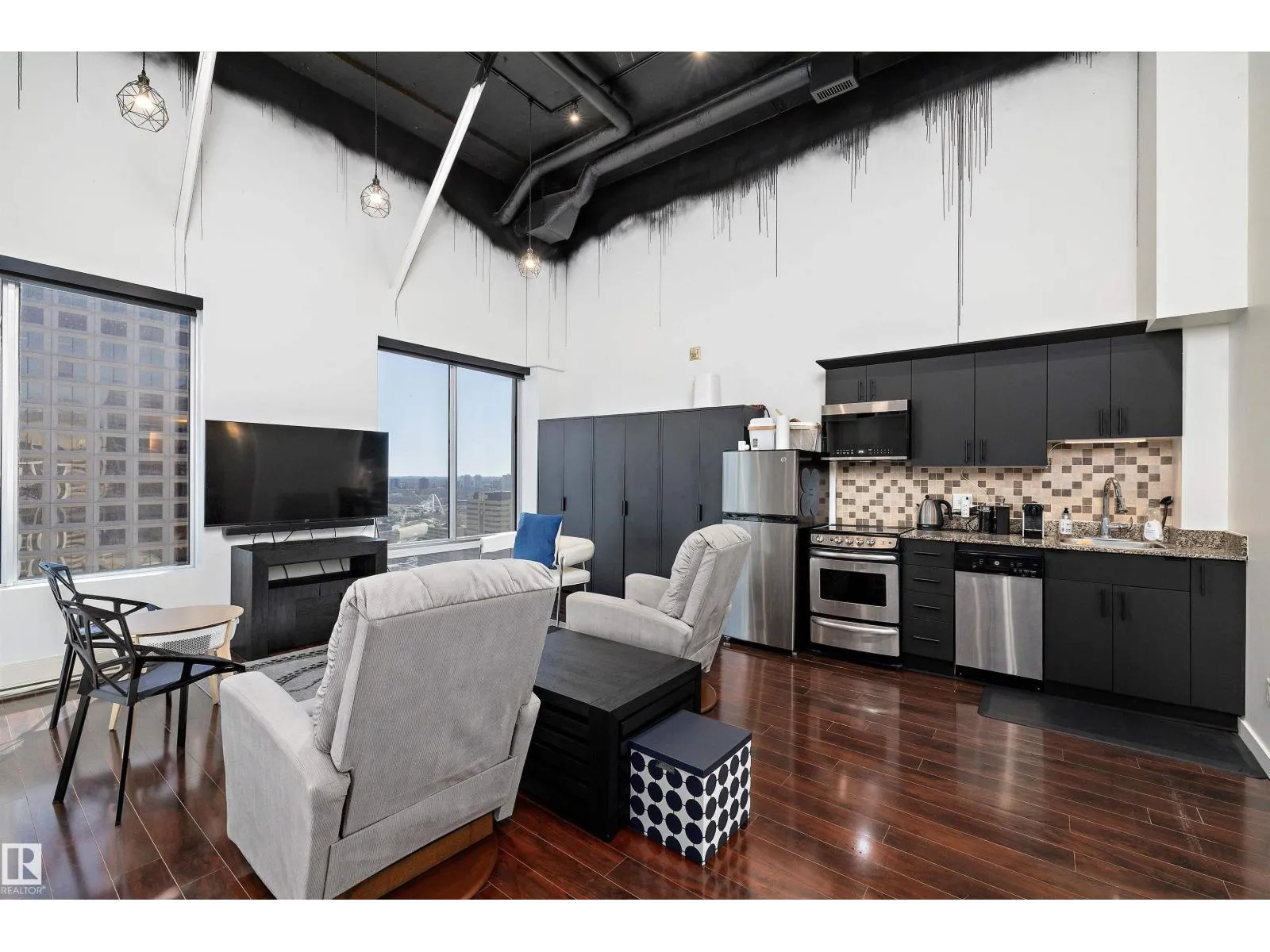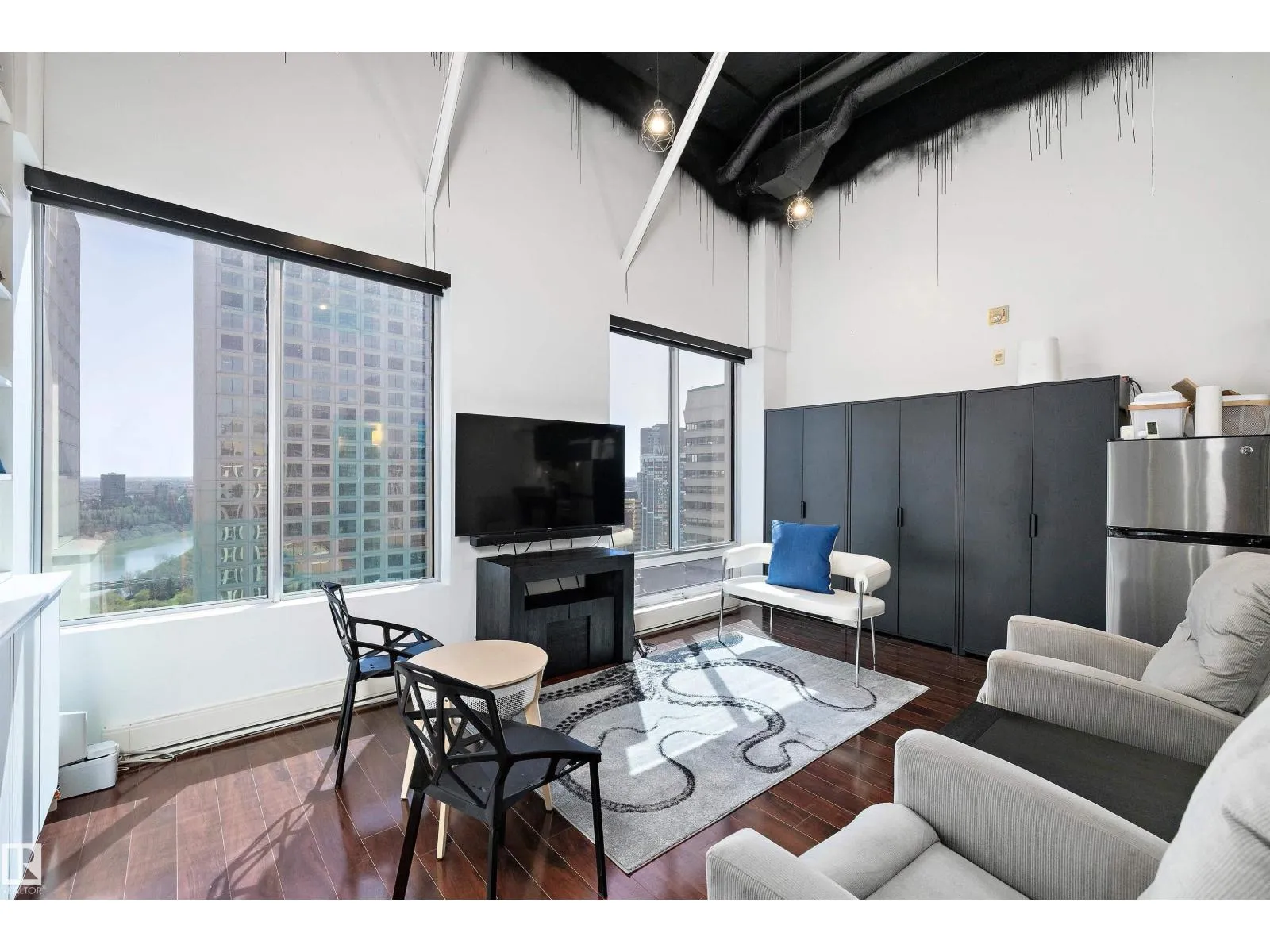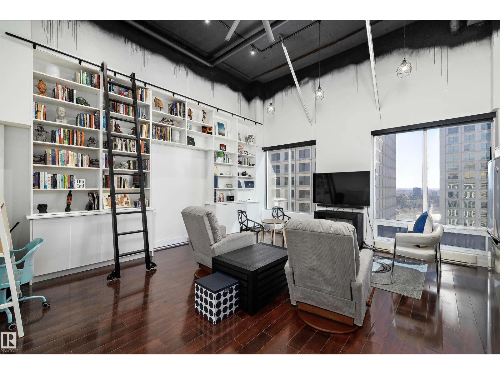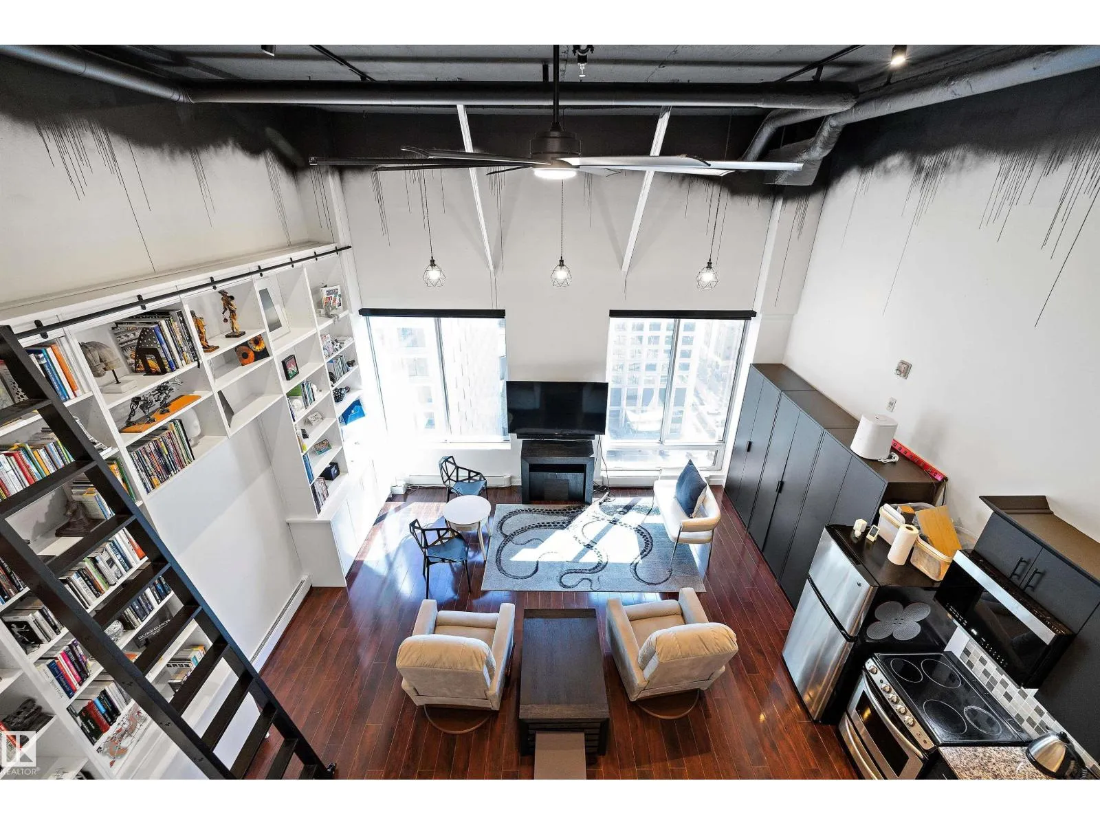 Embrace the ultimate urban lifestyle in this stunning top-floor, two-storey loft at Cambridge Lofts. Located in the heart of downtown Edmonton, this upgraded unit offers a rare river valley view and immediate access to the city's best amenities. For unbeatable convenience, the building elevator provides direct, secure access to the Central LRT station, making commutes to the U of A, MacEwan, and NAIT effortless. The interior features a functional one-bedroom plus loft layout with two full bathrooms and titled storage. This pet-friendly building is a prime opportunity for students, young professionals, or first-time buyers seeking low property taxes and a walkable lifestyle near the ICE District. With Airbnb-friendly policies and high rental potential, it is also a standout addition to any investment portfolio. (id:27476)
