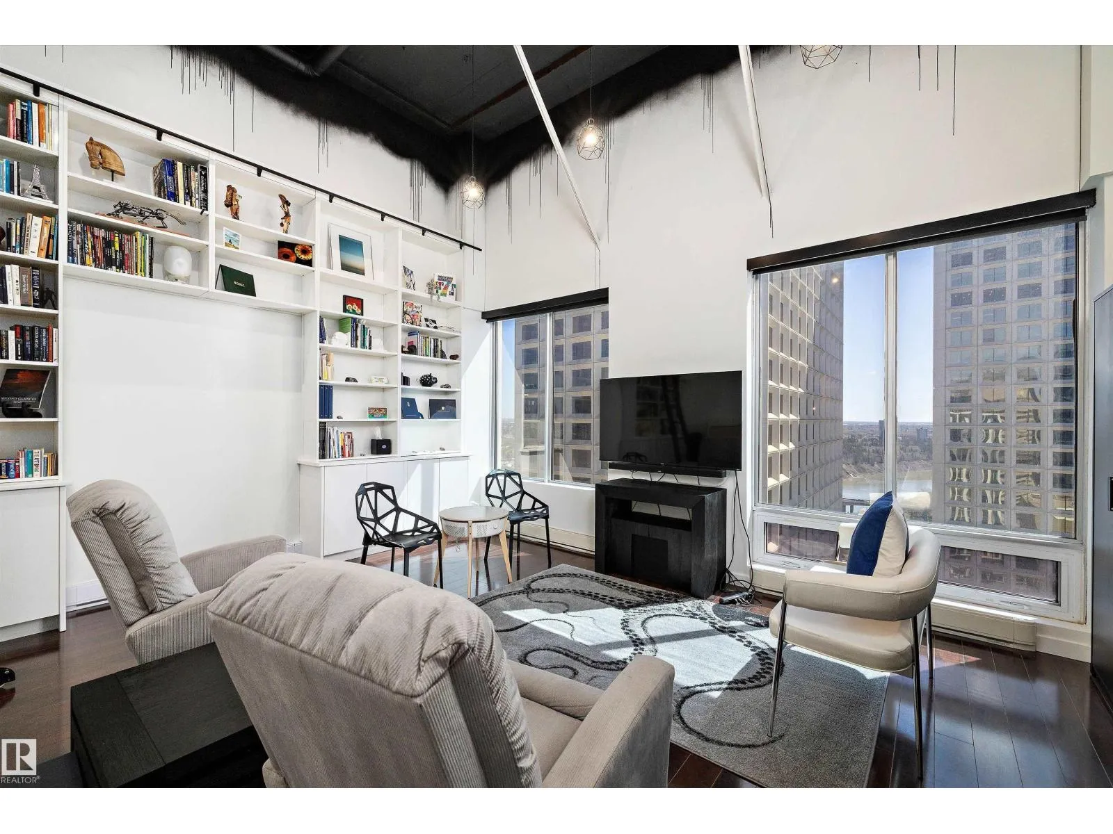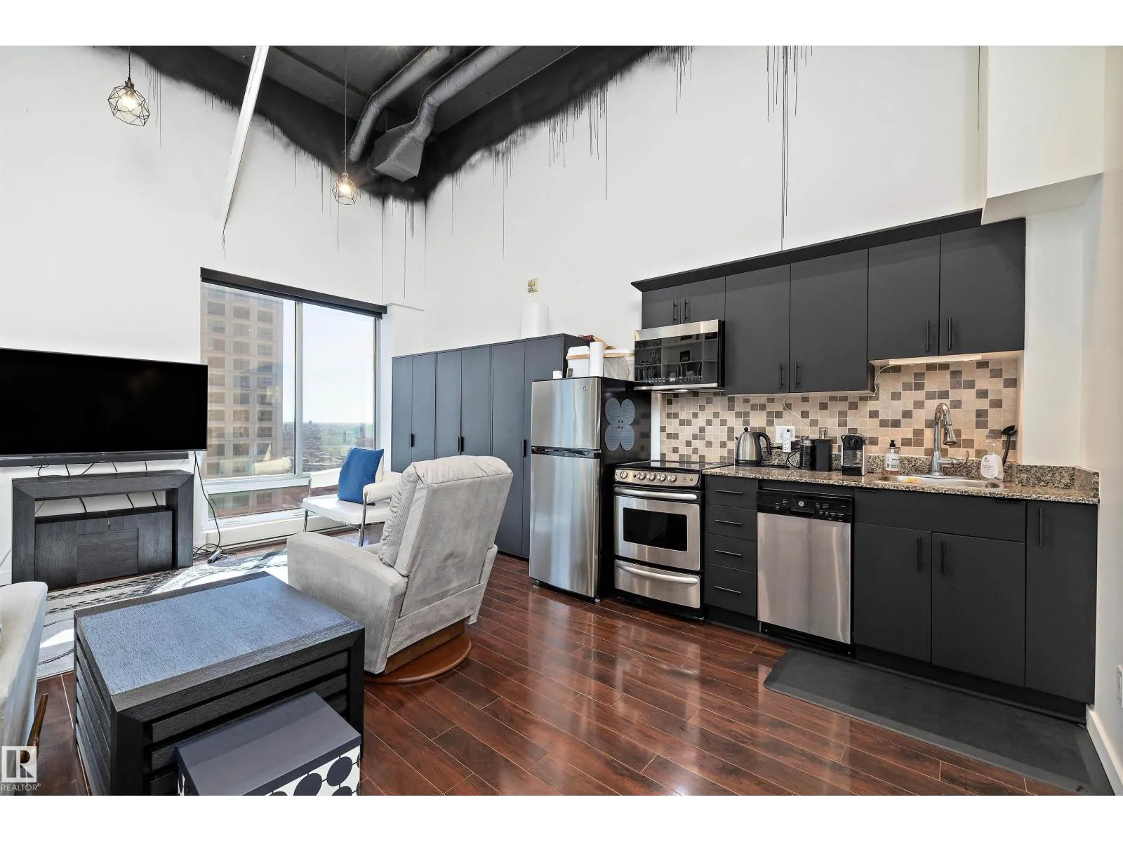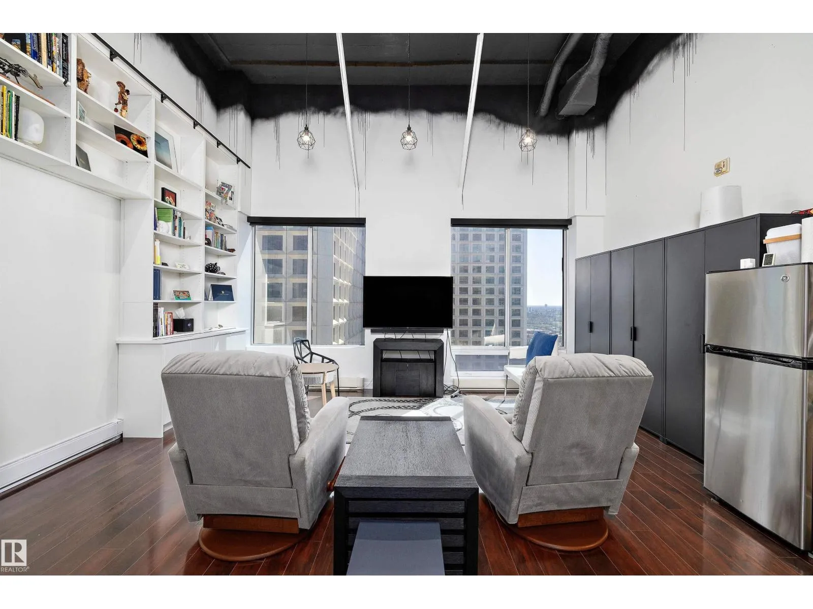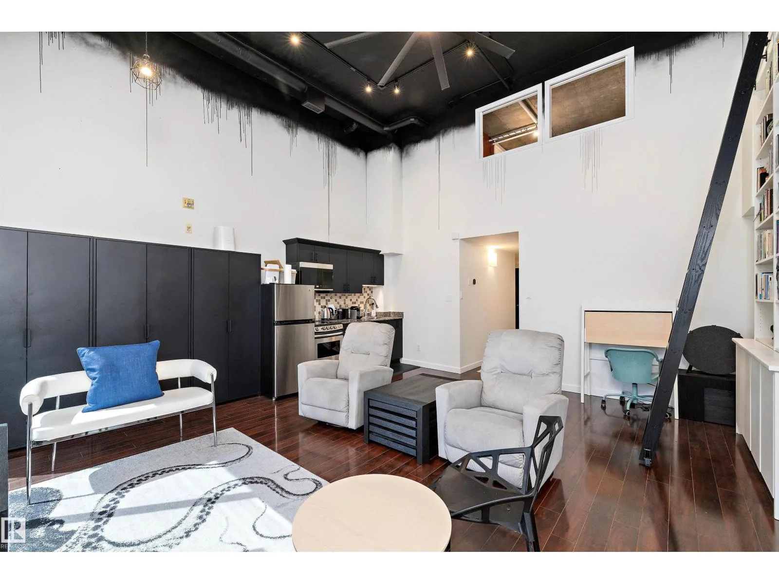 Embrace the ultimate urban lifestyle in this stunning top-floor, two-storey loft at Cambridge Lofts. Located in the heart of downtown Edmonton, this upgraded unit offers a rare river valley view and immediate access to the city's best amenities. For unbeatable convenience, the building elevator provides direct, secure access to the Central LRT station, making commutes to the U of A, MacEwan, and NAIT effortless. The interior features a functional one-bedroom plus loft layout with two full bathrooms and titled storage. This pet-friendly building is a prime opportunity for students, young professionals, or first-time buyers seeking low property taxes and a walkable lifestyle near the ICE District. With Airbnb-friendly policies and high rental potential, it is also a standout addition to any investment portfolio. (id:27476)