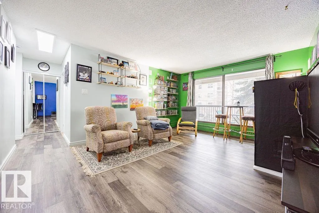 AMAZING OPPORTUNITY for a 1 BEDROOM CONDO on the 2nd Floor, with an industrial kitchen flare, and a large west facing balcony. SECURE, CONCRETE, BUILDING with Key Fob entrance, new Elevators, & Camera Surveillance on every floor. ALL BASIC UTILITIES INCLUDED (electric, heat, water/sewer) only $410.75/month. Card Operated Laundry Rooms on Every Floor, Telus Optik is wired through the building so you can order the fastest internet available & BELVEDERE LRT STATION just a couple blocks way! This 1 Bedroom 1 Bath unit has MANY UPGRADES: VINYL PLANK FLOORING, KITCHEN HUSKY CABINETS including Pantry, STAINLESS STEEL APPLIANCES, LIGHTING, CLOSET DOORS & Shelving & UPGRADED BATHROOM. BALCONY is 28 FEET LONG x 6 FEET DEEP... HUGE! Large storage room too. ALL BUILDING PARKING STALLS are on MONTH-TO-MONTH LEASE for $40/month & THIS UNIT HAS A COVERED STALL IF YOU WANT TO KEEP THE LEASE (not included in condo fee price). Very affordable living, and excellent investment opportunity. (id:27476)