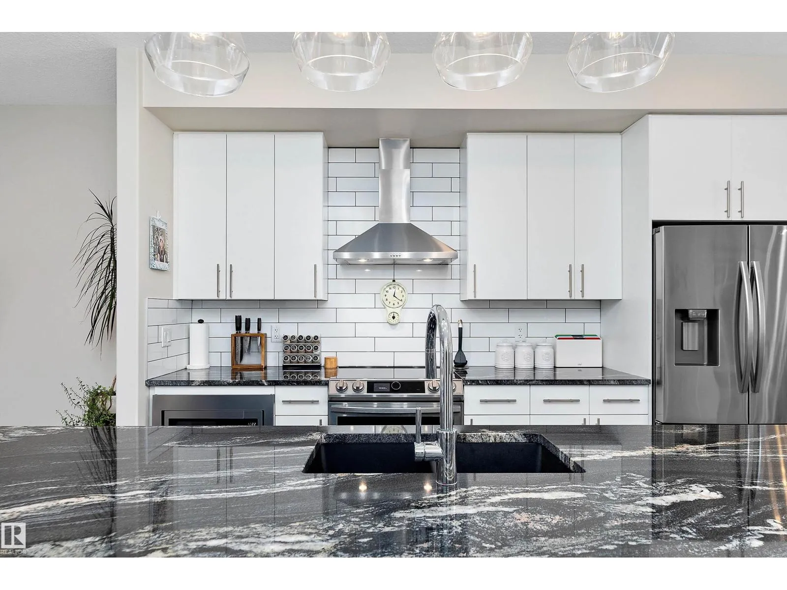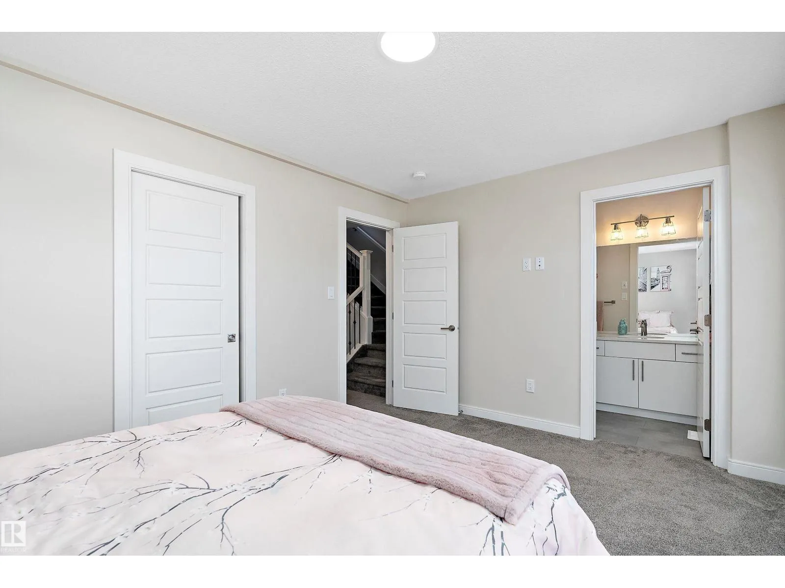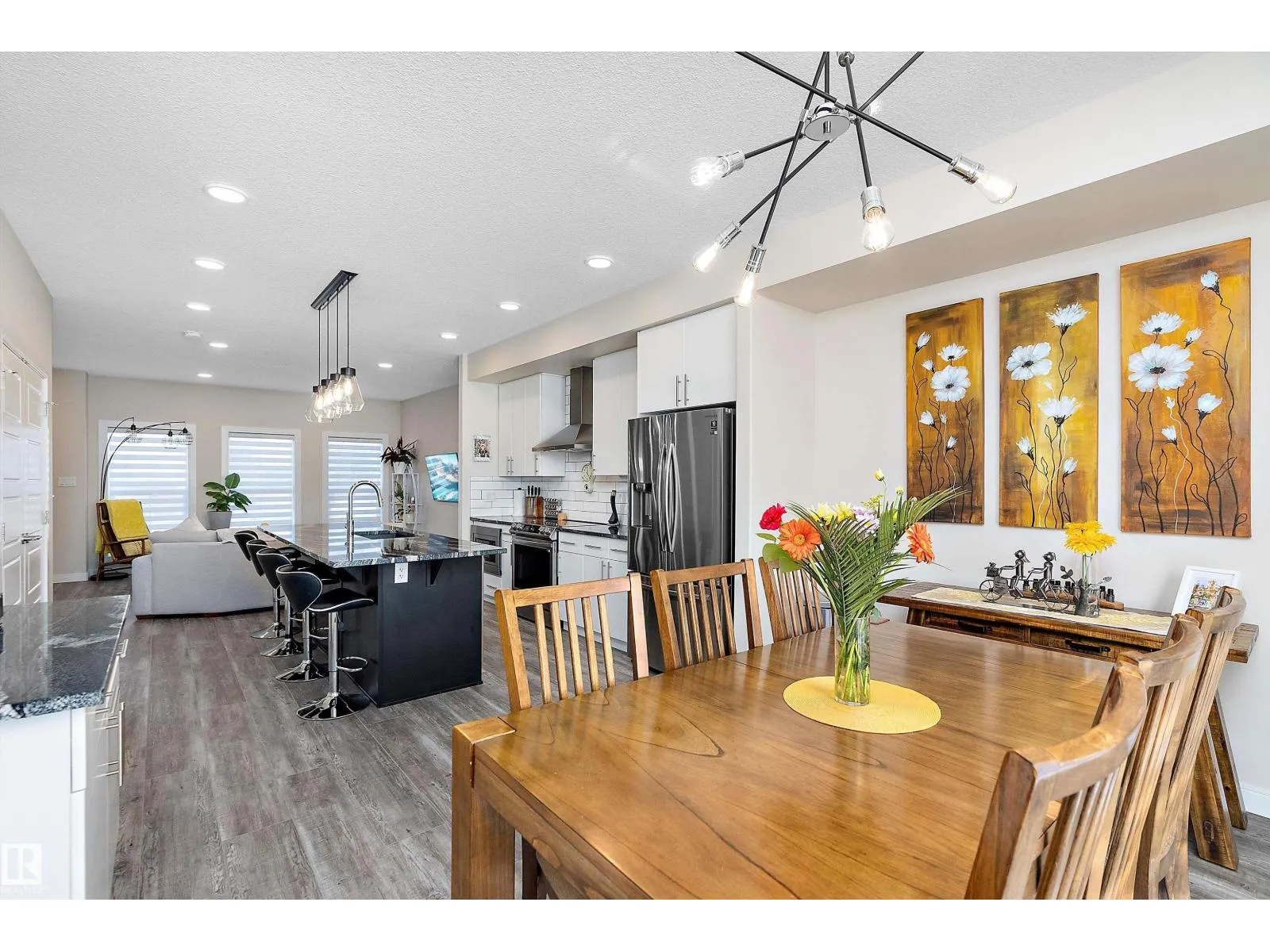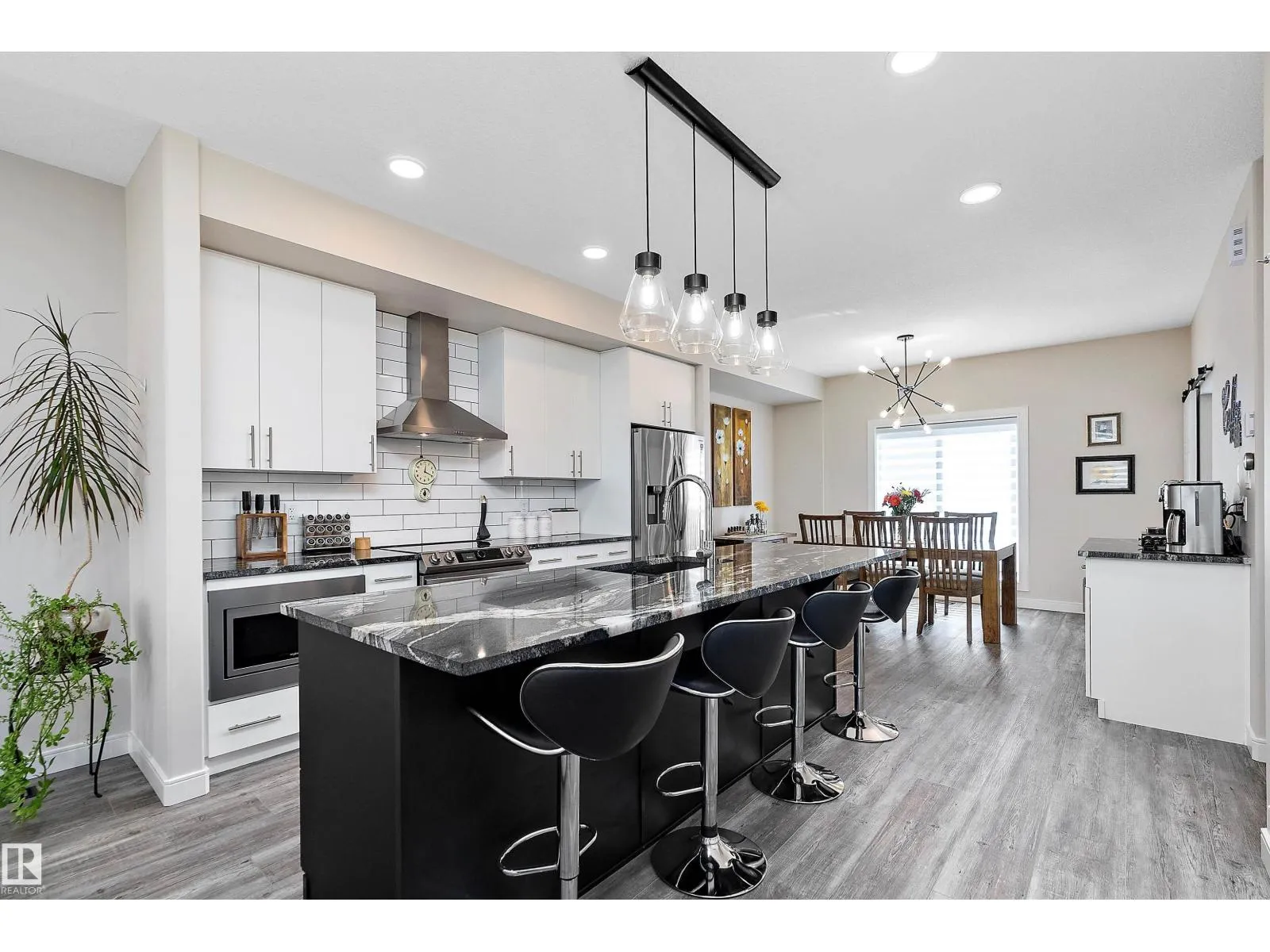 This one of a kind, energy-efficient custom 3-storey home in Edmontonâs award-winning Blatchford community offers environmentally conscious buyers a rare blend of sustainable living and unbeatable urban convenience, featuring geothermal heating and cooling, smart thermostats, and a thoughtfully designed layout that includes three true primary bedrooms, each with its own full ensuite and walk-in closet, plus a private rooftop patio for low-carbon outdoor living in the heart of the city; the main floor showcases 9-ft ceilings, a stylish galley kitchen and HUGE chef inspired island with custom cabinetry, quartz countertops, a coffee station, high-end smart stainless appliances, and a side-by-side pantry, complemented by custom iron railings and durable luxury vinyl plank flooring. Outside youâll find a fully fenced, landscaped yard and a double detached garage, all just steps from the new LRT station and minutes to NAIT, Royal Alex, and the ICE District, with no condo fees or HOA fees. (id:27476)