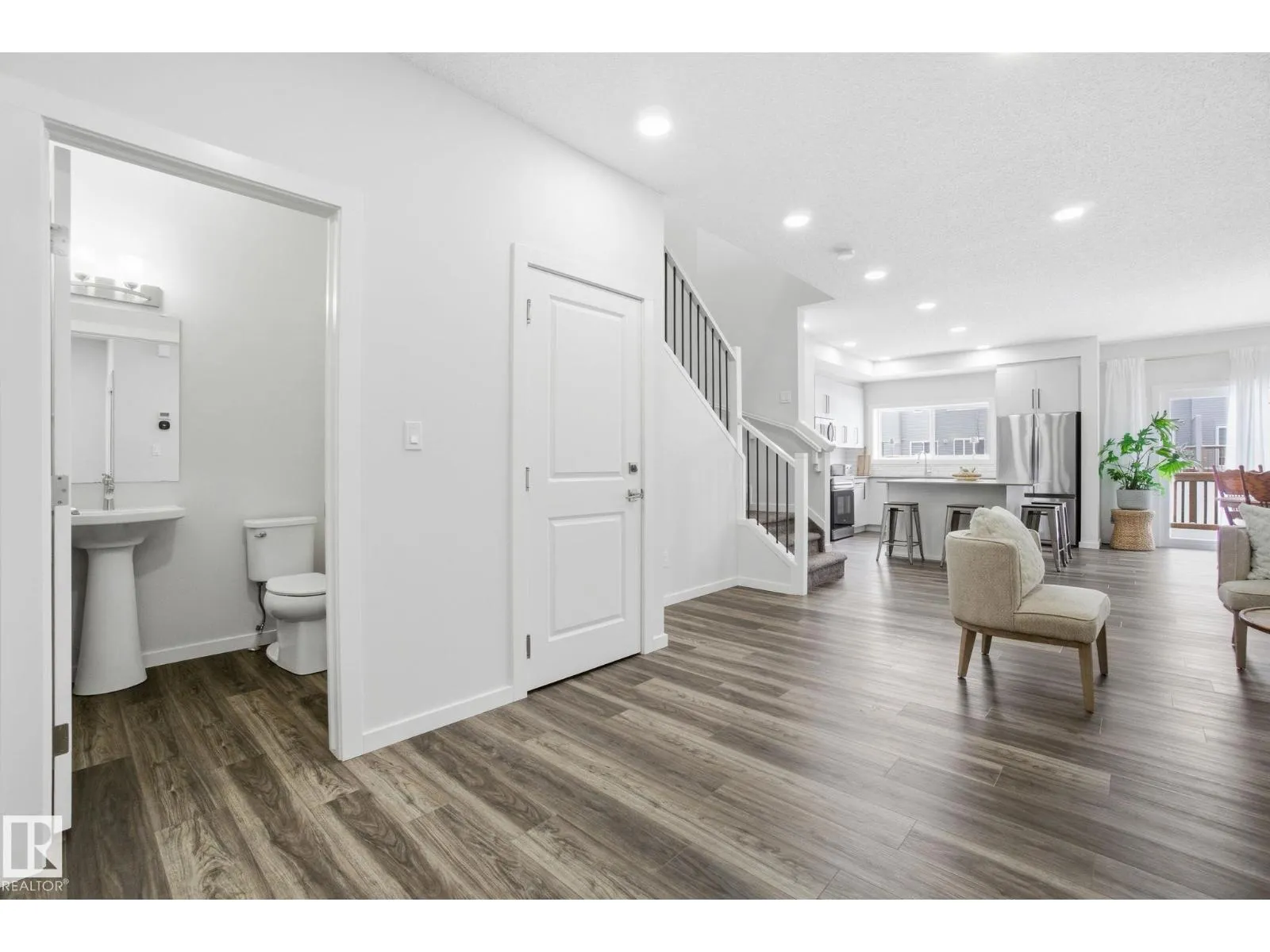 Welcome to the beautiful community of ALCES! A thoughtfully designed two-storey detached home featuring 3 bedrooms and 2.5 bathrooms, blending modern style with everyday functionality. It includes a double attached garage and smart home technology for added convenience. The open-concept rear kitchen is bright and inviting, with a large window, SS appliances, spacious island with eating bar, quartz countertops, undermount sinks, soft-close cabinets, and 41 upper cabinetry. The elegant spindle railings enhance the open feel between levels, while an electric fireplace adds warmth to the main living space. Upstairs, the laundry is conveniently connected to the primary bedroomâs walk-in closet. A separate entrance and upgraded 9-foot foundation height provide excellent potential for future basement development, making this home ideal for growing families or investment opportunities. This property is conveniently located to shopping, public transportation, schools, Anthony Henday and all other amenities. (id:27476)