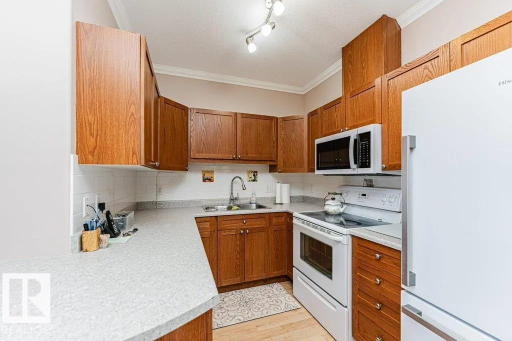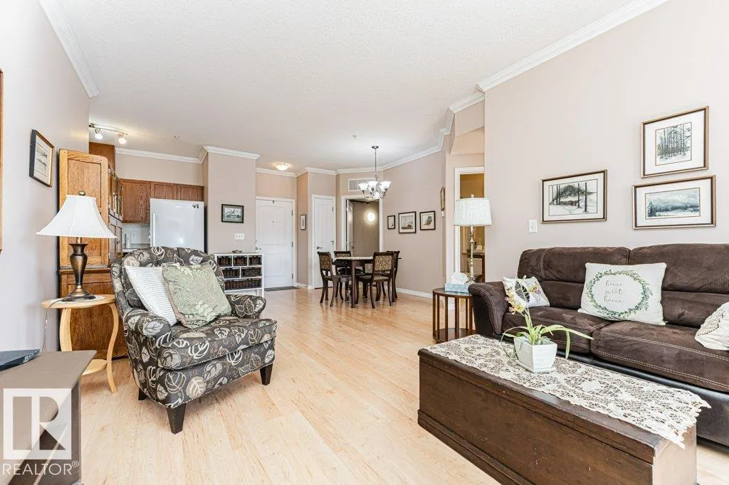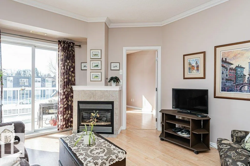 Immaculate and well-maintained 2-bedroom, 2-bathroom condo within the Belcanto Court complex designed for residents aged 45 and over. This property boasts a thoughtfully laid out Open-Concept floor plan comprising a functional kitchen, living and dining area, gas fireplace, and a balcony with Southern exposure, flooding the space with an abundance of natural light. The Primary Suite features a walk-through closet, and a 3-piece ensuite bath, complemented by a secondary bedroom, another full bath, plus in suite laundry. Amenities to enjoy include a social room, convenient guest suite, assigned Heated Underground Parking, and a handy Car Wash. Strategically located near Bonnie Doon Mall, the LRT, and various essential services, this residence offers a blend of comfort, convenience, and is move in ready! (id:27476)