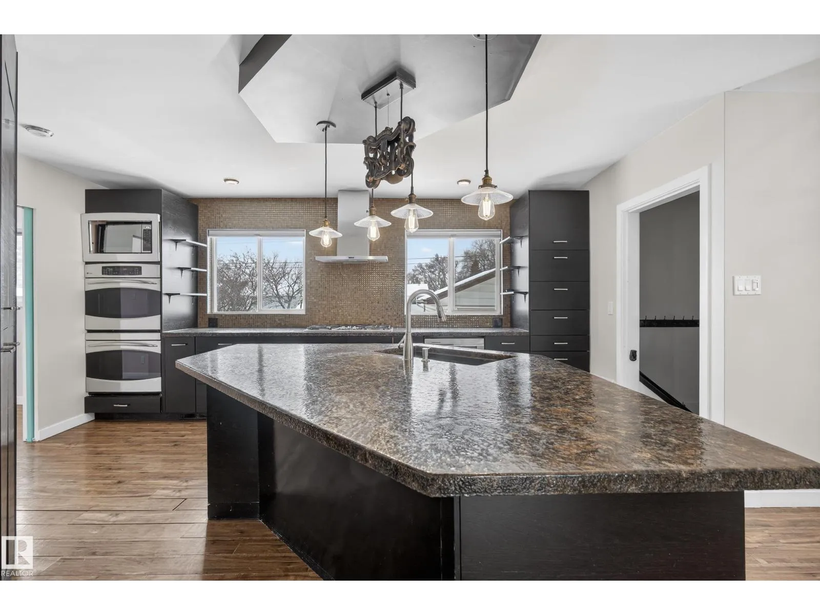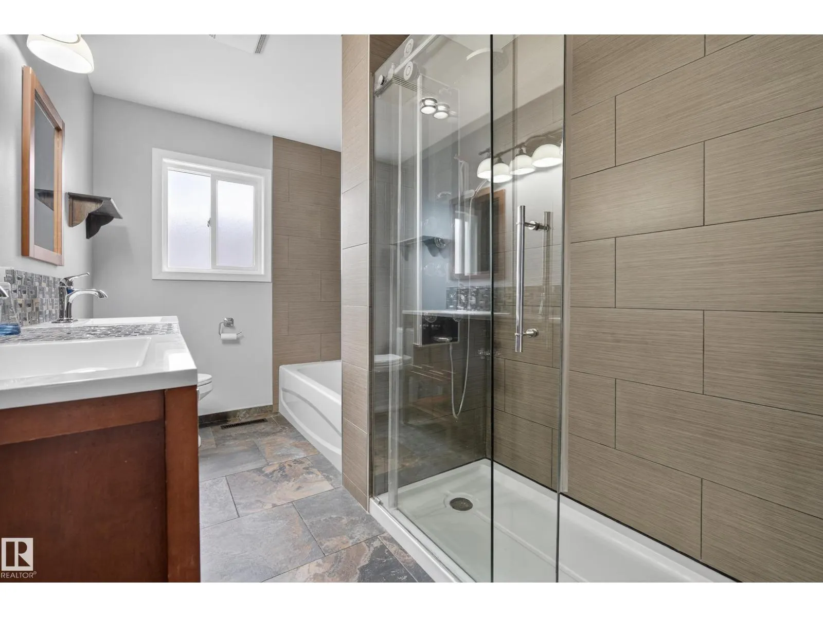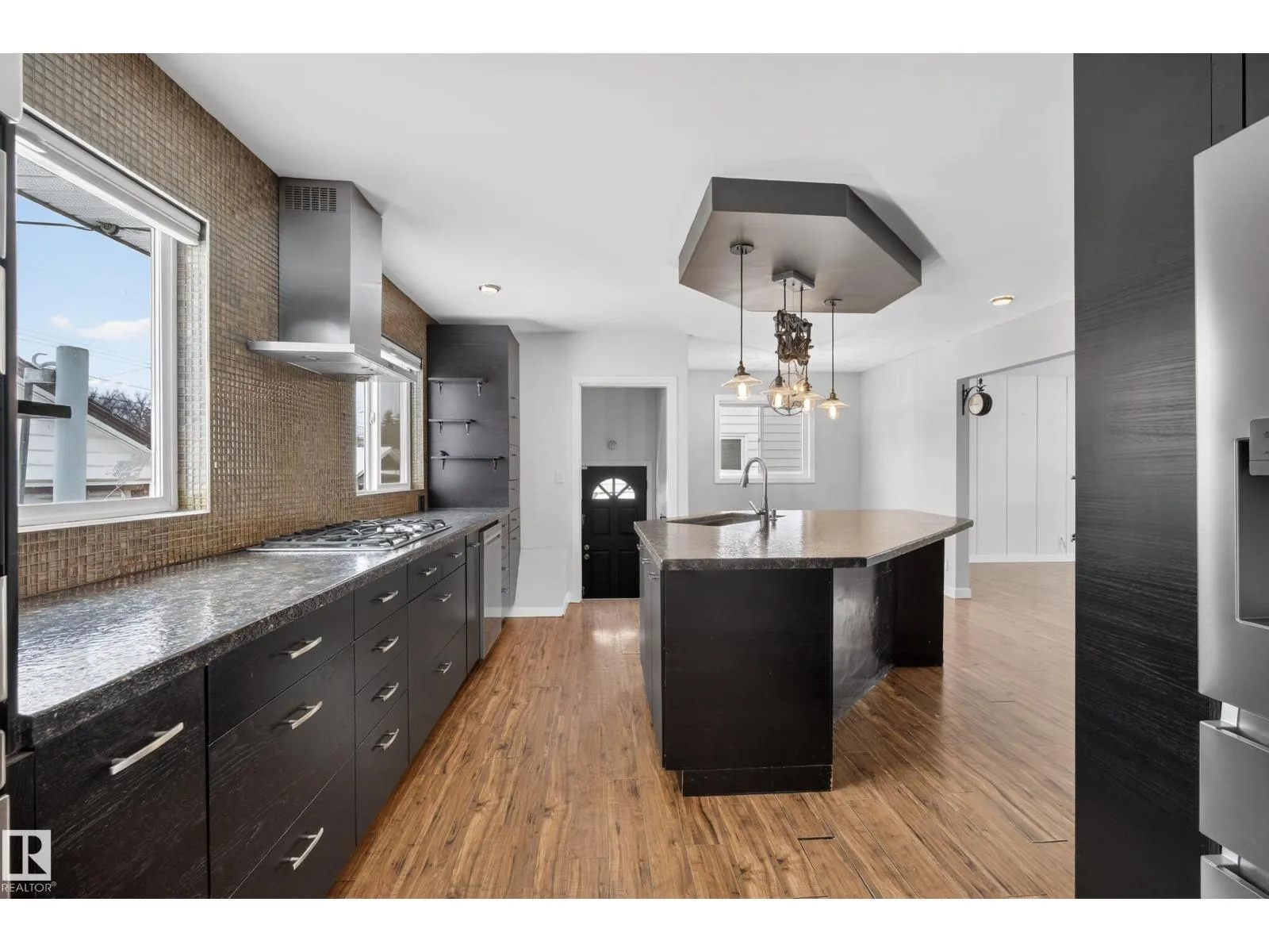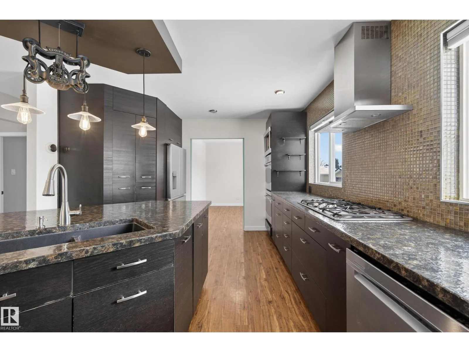 Welcome to Beverly Heights, just steps from Edmontonâs iconic River Valley. This beautifully refreshed bungalow offers a bright open layout that blends everyday living with effortless entertaining. At the center of the home is a stunning chef-inspired kitchen featuring a gas range, double ovens, and abundant cabinetry, ideal for hosting family and friends. The main floor is complete with a stylish 5 piece bathroom and two generous bedrooms, delivering both comfort and modern appeal. The fully finished basement provides the perfect space to unwind with a cozy media area, two additional bedrooms, and a 3 piece bathroom. Outside, the expansive backyard is ready for summer nights around the fire, kids at play, or peaceful evenings to relax. Set in a welcoming, tree lined community just minutes to schools, parks, and scenic trails, this home offers the perfect balance of city convenience and neighbourhood charm. Many recent updates including furnace, AC, relined sewer, hot water tank, and roof. (id:27476)