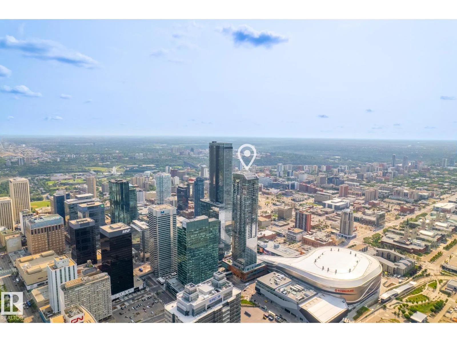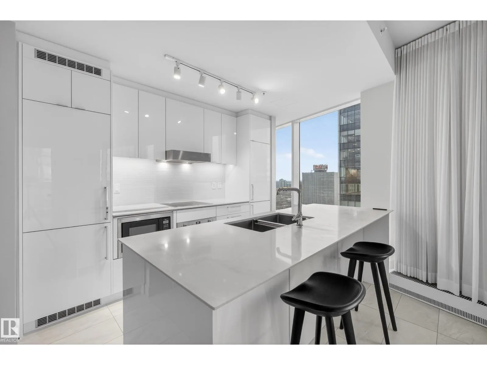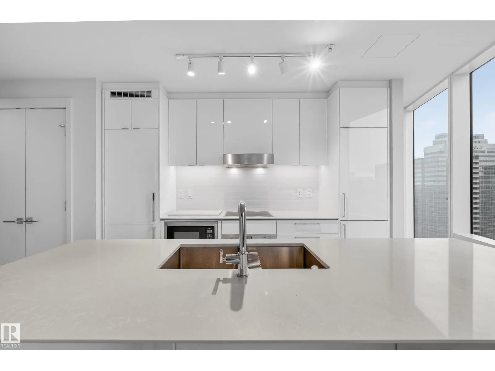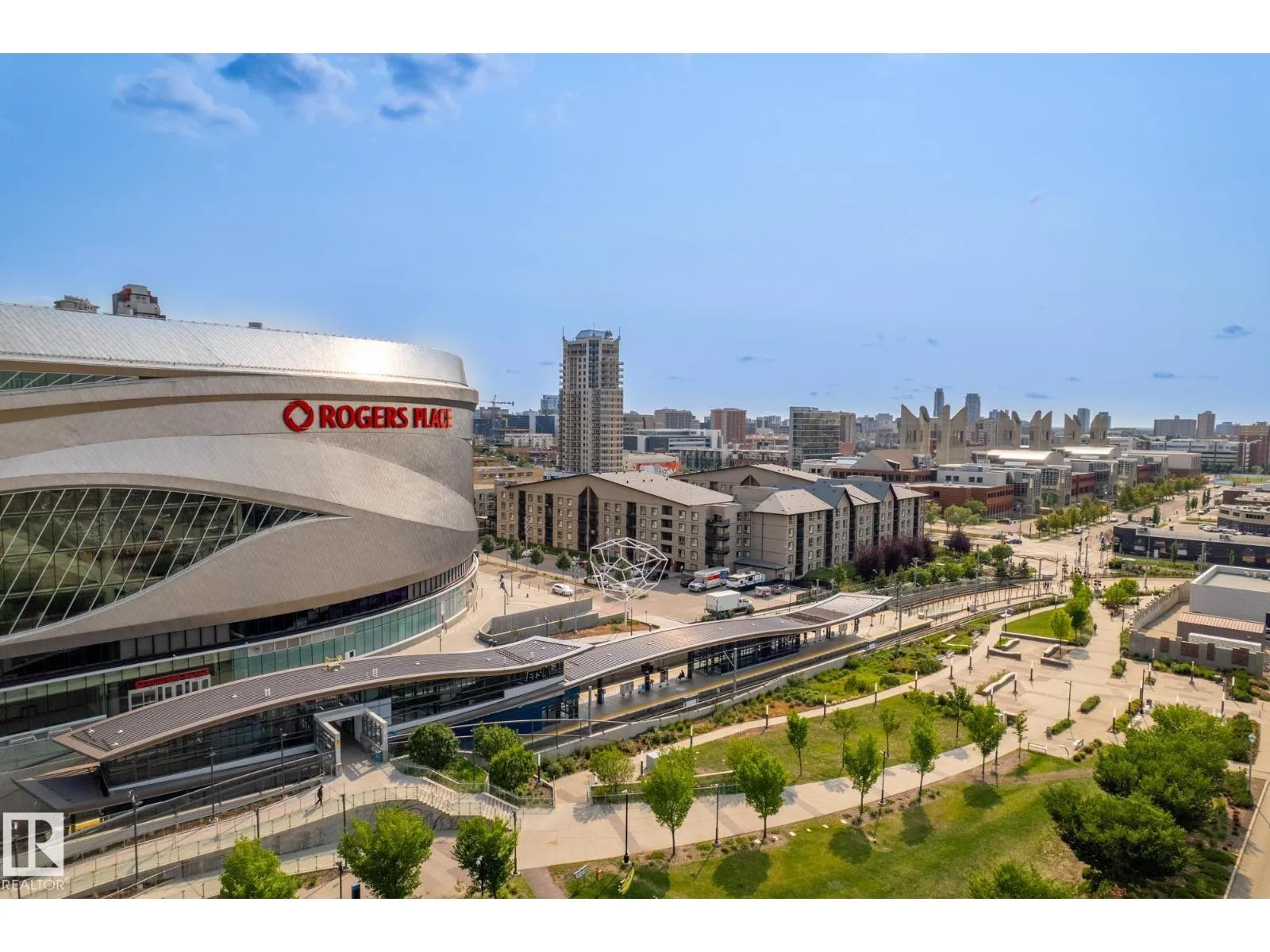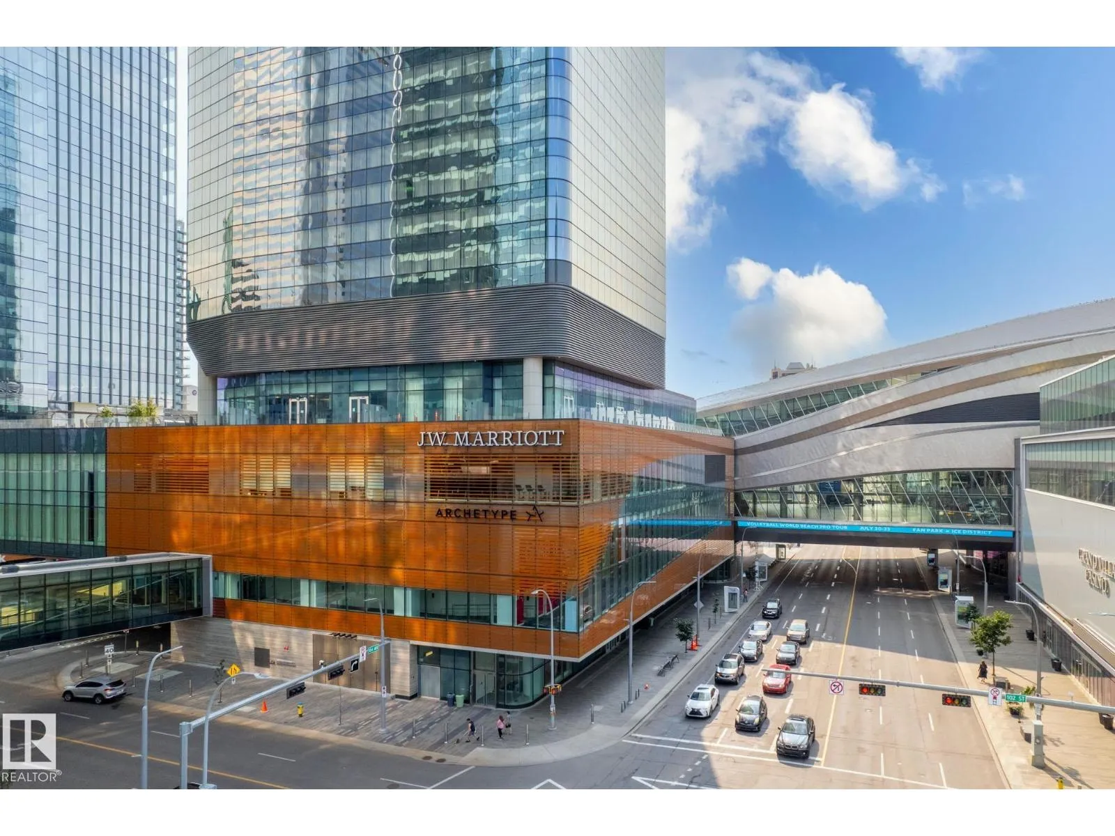 Gorgeous, swanky 1-bedroom residence in the highly sought-after Legends Private Residences, perched above the JW Marriott in the heart of Edmontonâs ICE District. This bright, modern unit features floor-to-ceiling windows with stunning downtown views, creating a spacious, open feel well beyond its footprint. Enjoy true luxury living with access to world-class amenities including 24-hour concierge, residents lounge, outdoor terraces with fire pits & BBQs, fitness centre, pool, spa, and full JW Marriott services including room service. Direct indoor access to Rogers Place, pedway system, LRT, restaurants, shopping, and downtown offices makes this one of the most connected addresses in the city. Perfect for professionals, investors, or those seeking an elevated urban lifestyle. (id:27476)