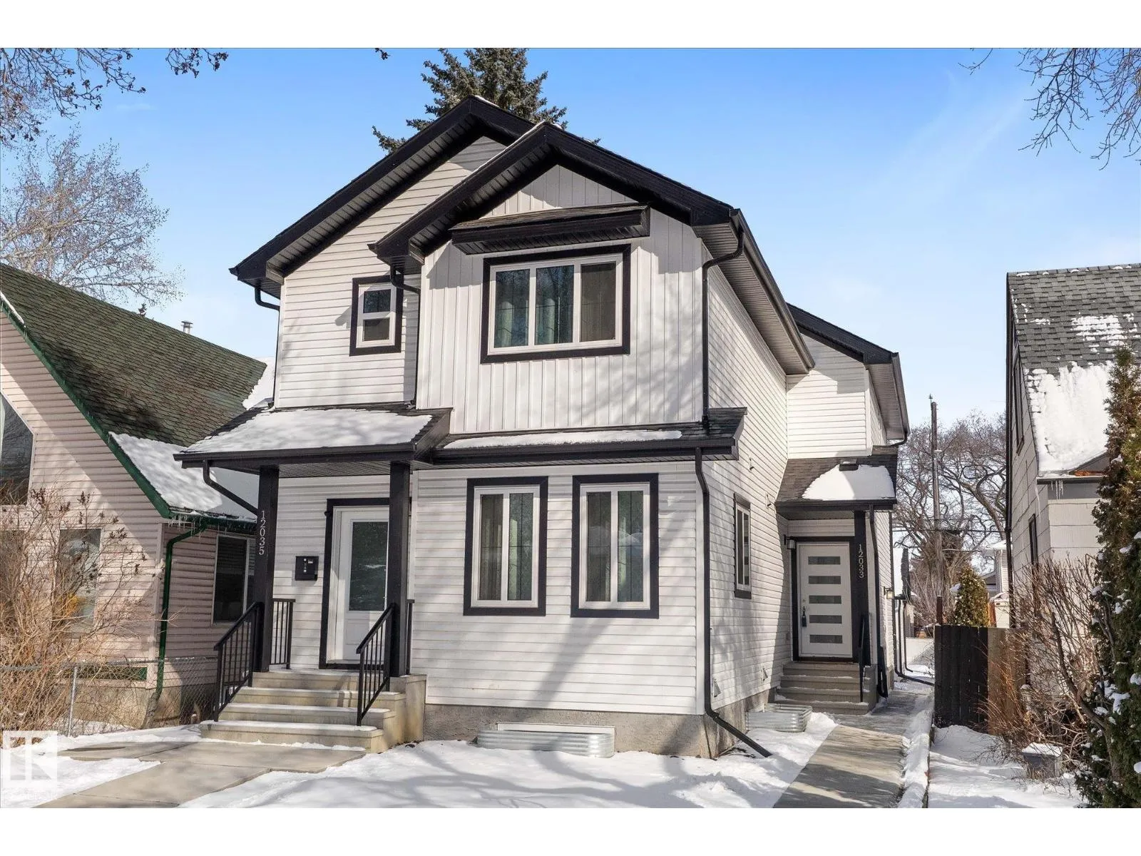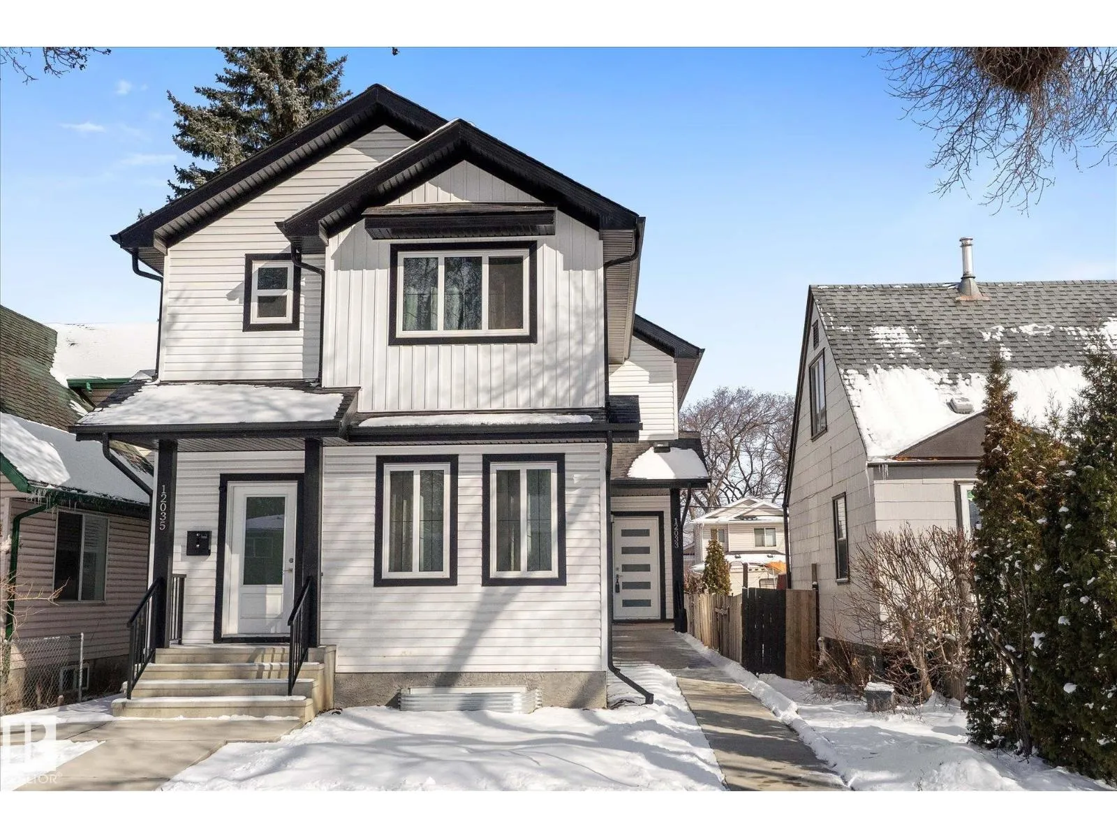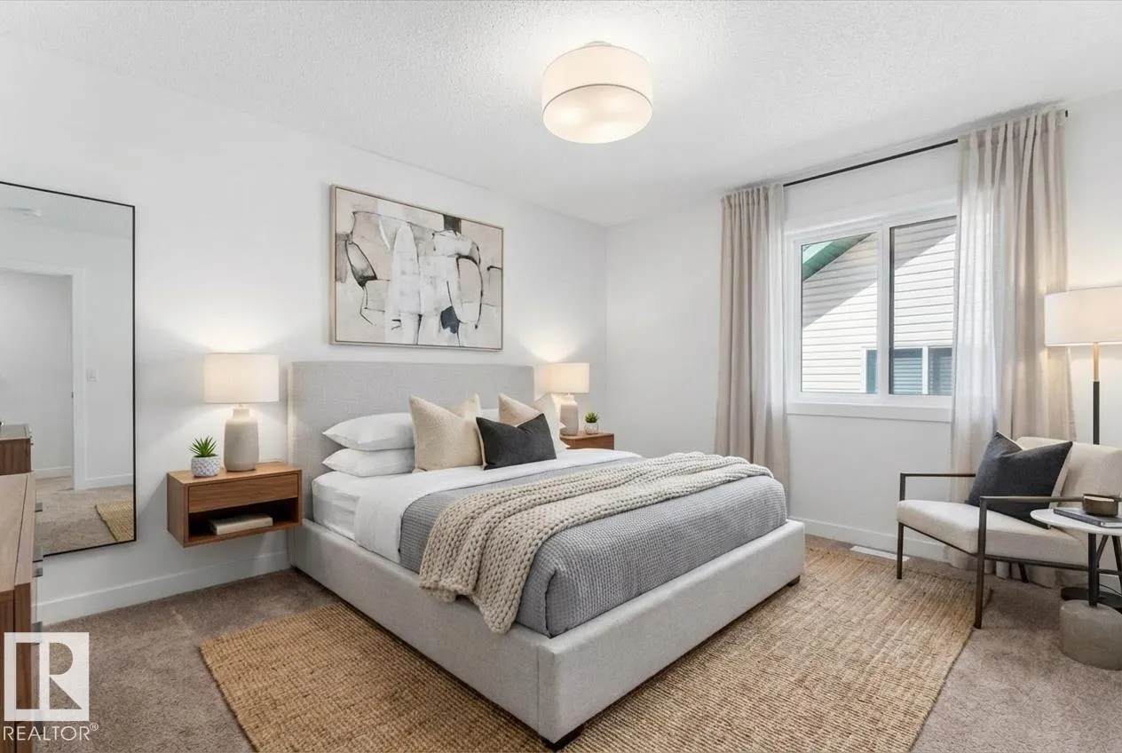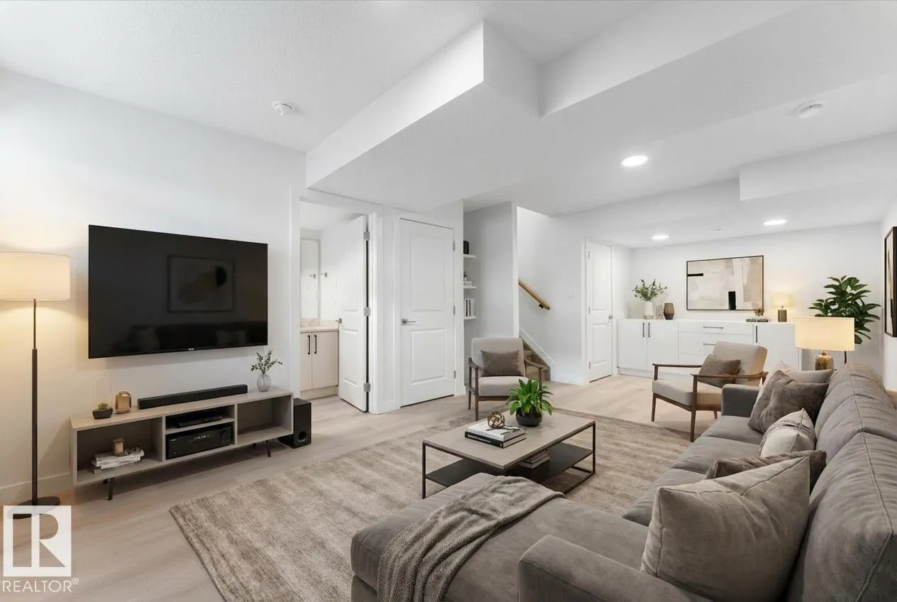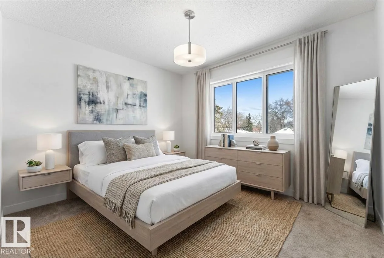 BRAND NEW half duplex on a beautiful mature tree-lined street with SIDE ENTRANCE and SUITE POTENTIAL! The finished basement includes a 4-piece bath and cabinet with rough-in for a future wet bar sink. Step inside to a front entry with mirrored closet leading to an open-concept main floor with gorgeous vinyl plank flooring and 9' ceilings. The modern layout is perfect for entertaining and includes a convenient 2-piece bath. The kitchen features QUARTZ countertops, ceiling-height cabinetry, soft-close drawers/hinges, and a pantry. Upstairs offers TWO LARGE BEDROOMS, each with its own 4-piece ensuite, plus upper-level laundry. Complete with a SINGLE DETACHED GARAGE, STAINLESS STEEL APPLIANCES, and a $1,750 washer/dryer credit. Located close to public transit, downtown, Ice District, NAIT, Kingsway, and Yellowhead Trail. (id:27476)