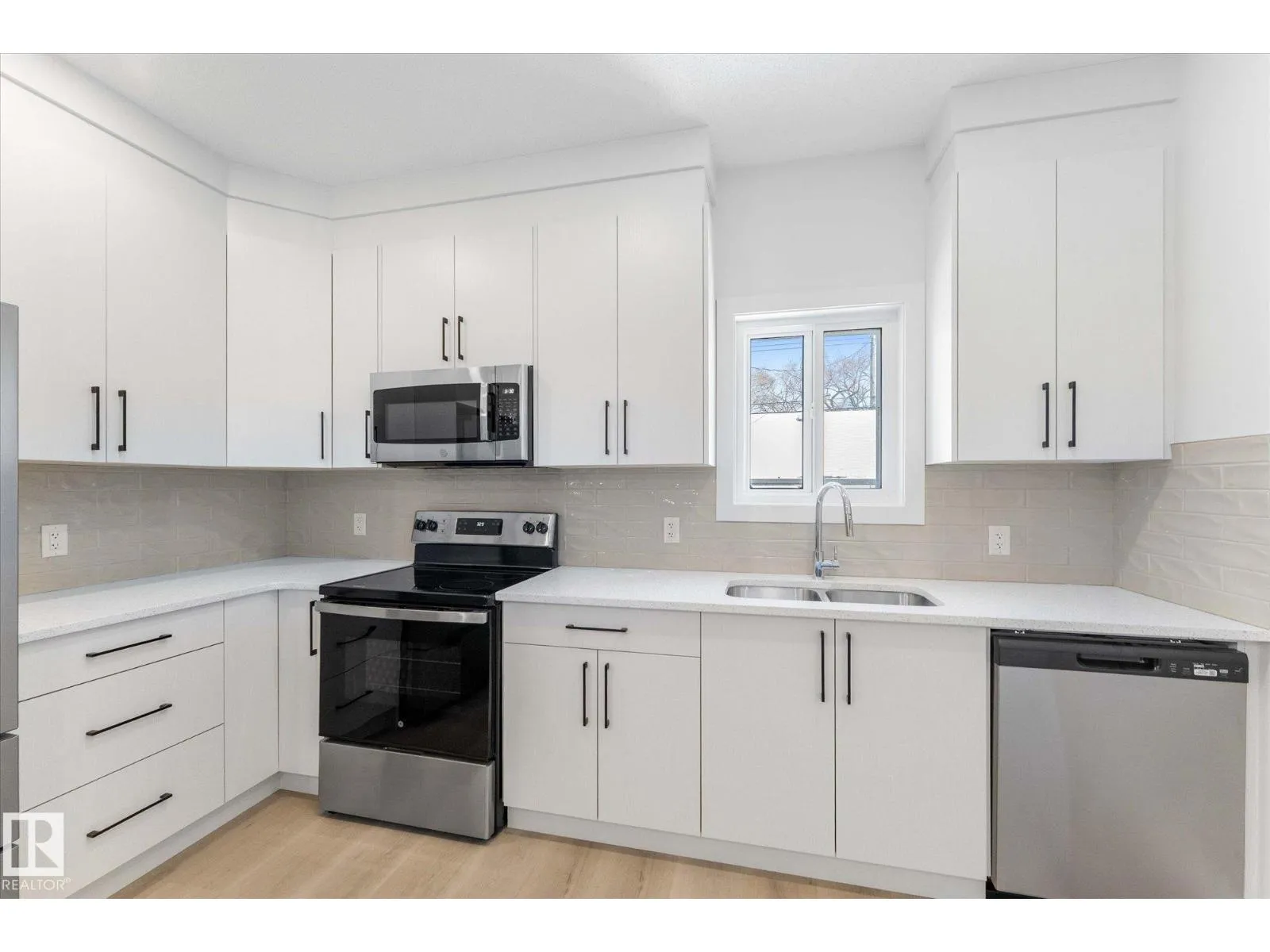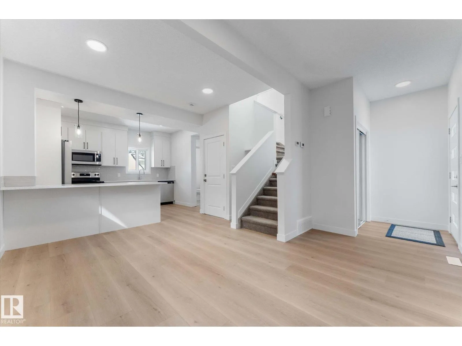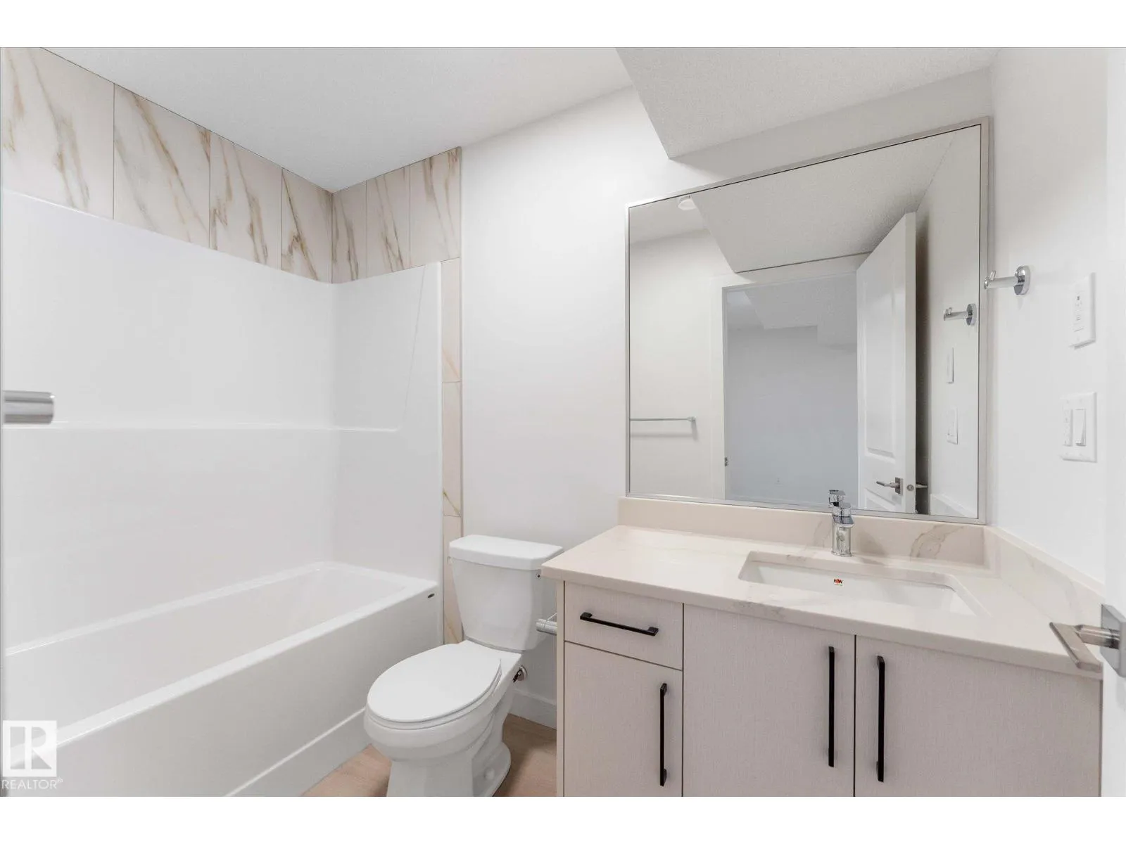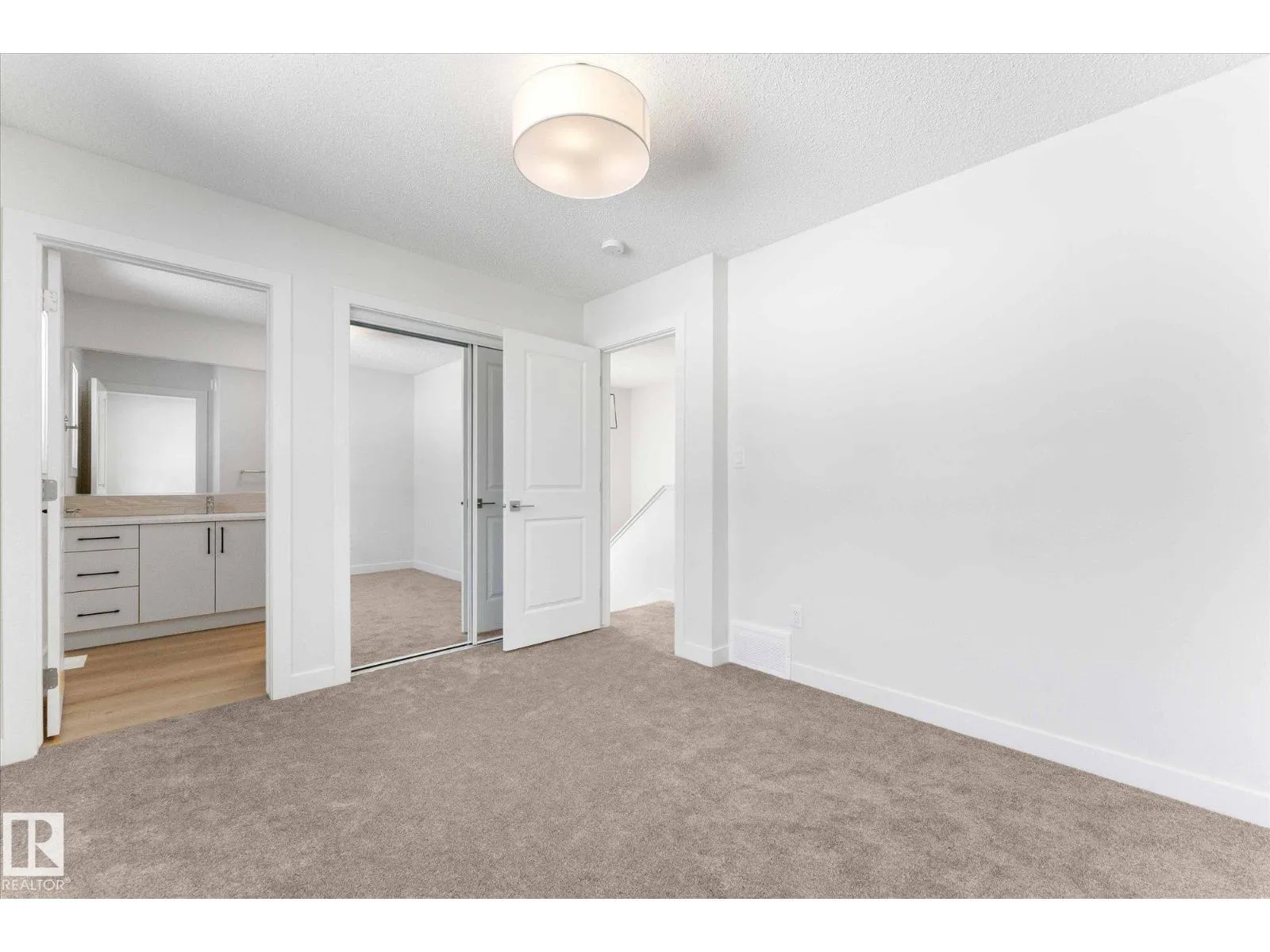 BRAND NEW half duplex on a beautiful mature tree-lined street with SIDE ENTRANCE and SUITE POTENTIAL! The finished basement includes a 4-piece bath and cabinet with rough-in for a future wet bar sink. Step inside to a front entry with mirrored closet leading to an open-concept main floor with gorgeous vinyl plank flooring and 9' ceilings. The modern layout is perfect for entertaining and includes a convenient 2-piece bath. The kitchen features QUARTZ countertops, ceiling-height cabinetry, soft-close drawers/hinges, and a pantry. Upstairs offers TWO LARGE BEDROOMS, each with its own 4-piece ensuite, plus upper-level laundry. Complete with a SINGLE DETACHED GARAGE, STAINLESS STEEL APPLIANCES, and a $1,750 washer/dryer credit. Located close to public transit, downtown, Ice District, NAIT, Kingsway, and Yellowhead Trail. (id:27476)