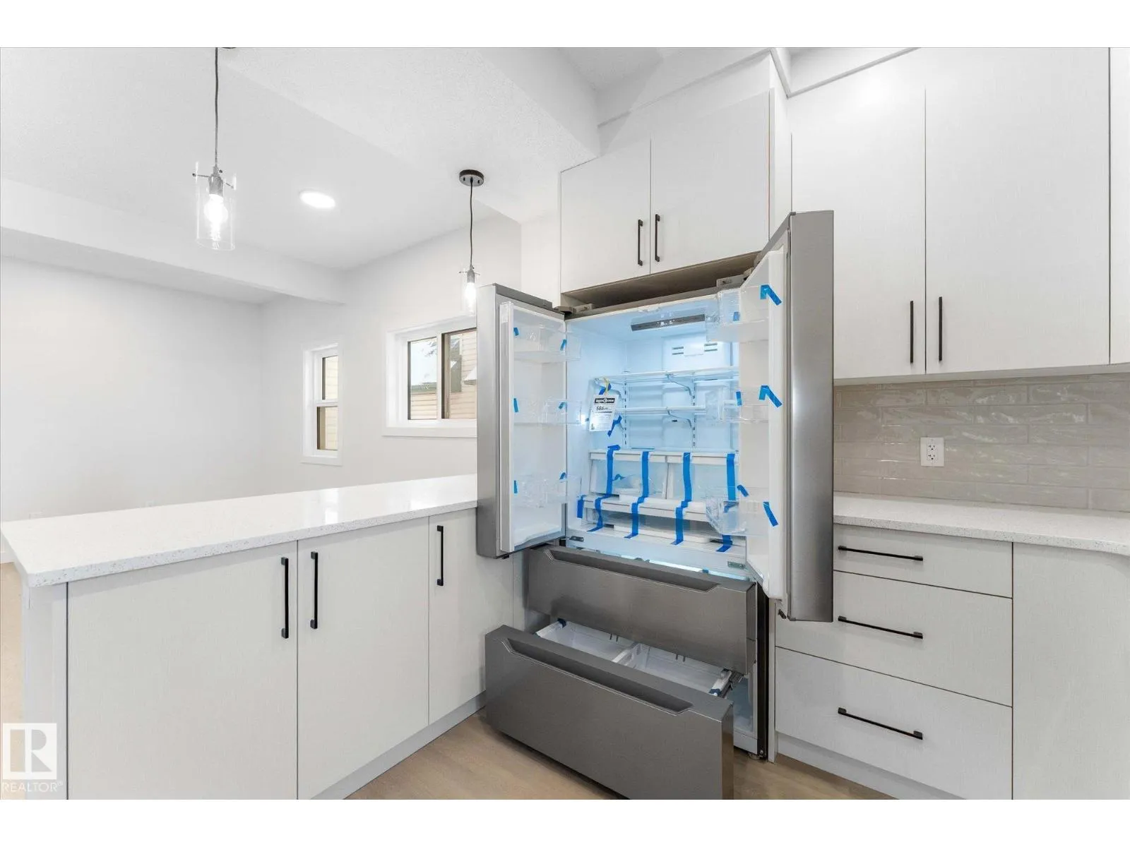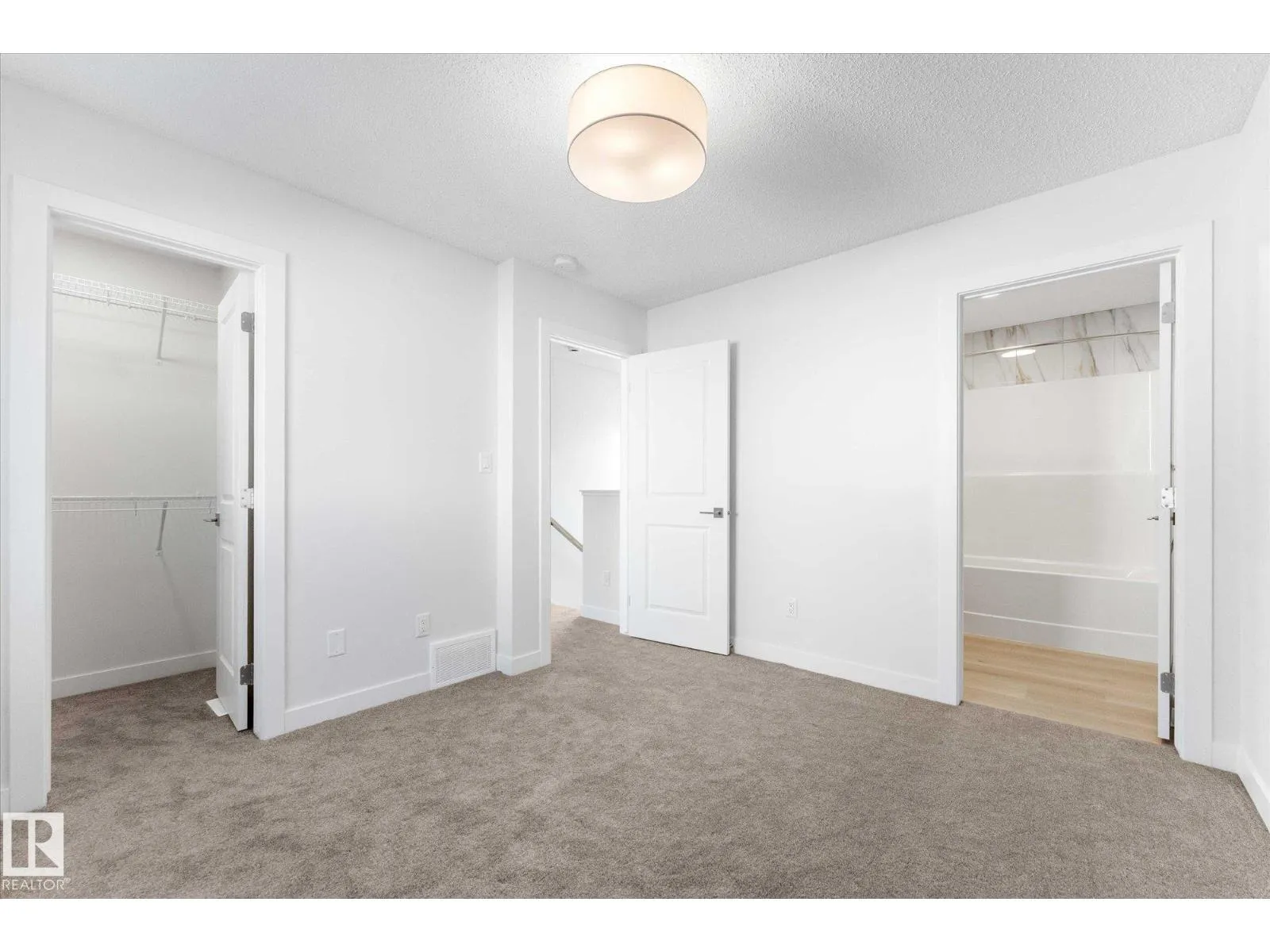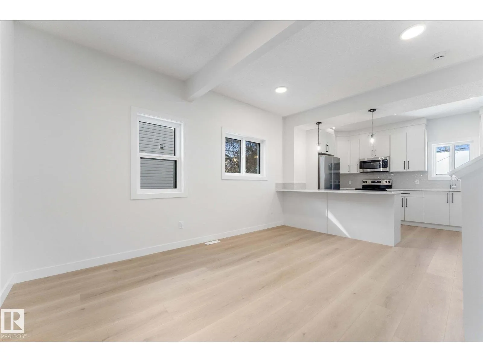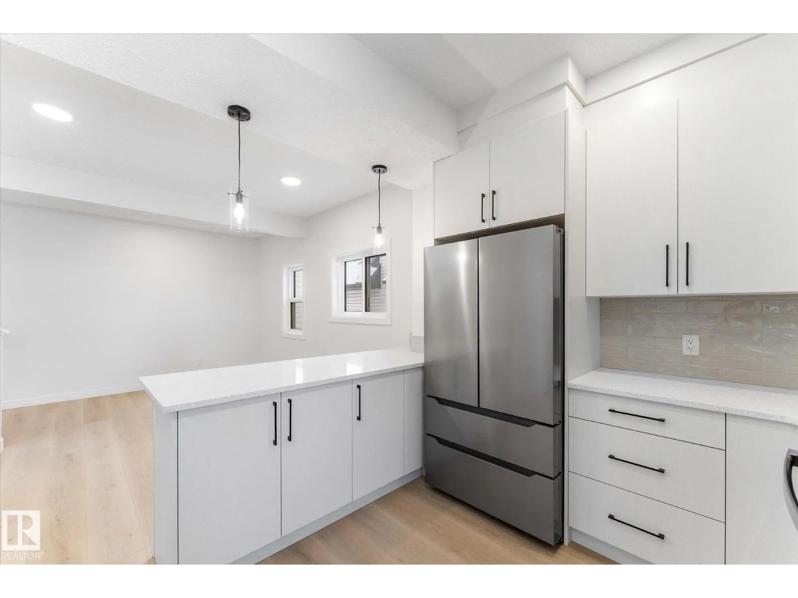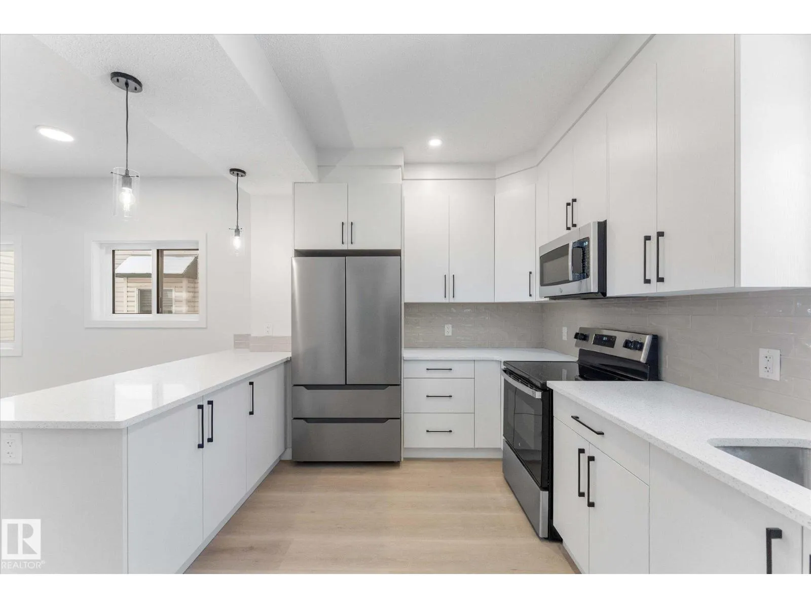 BRAND NEW half duplex on a beautiful mature tree-lined street with SIDE ENTRANCE and SUITE POTENTIAL! The finished basement includes a 4-piece bath and cabinet with rough-in for a future wet bar sink. Step inside to a front entry with mirrored closet leading to an open-concept main floor with gorgeous vinyl plank flooring and 9' ceilings. The modern layout is perfect for entertaining and includes a convenient 2-piece bath. The kitchen features QUARTZ countertops, ceiling-height cabinetry, soft-close drawers/hinges, and a pantry. Upstairs offers TWO LARGE BEDROOMS, each with its own 4-piece ensuite, plus upper-level laundry. Complete with a SINGLE DETACHED GARAGE, STAINLESS STEEL APPLIANCES, and a $1,750 washer/dryer credit. Located close to public transit, downtown, Ice District, NAIT, Kingsway, and Yellowhead Trail. (id:27476)