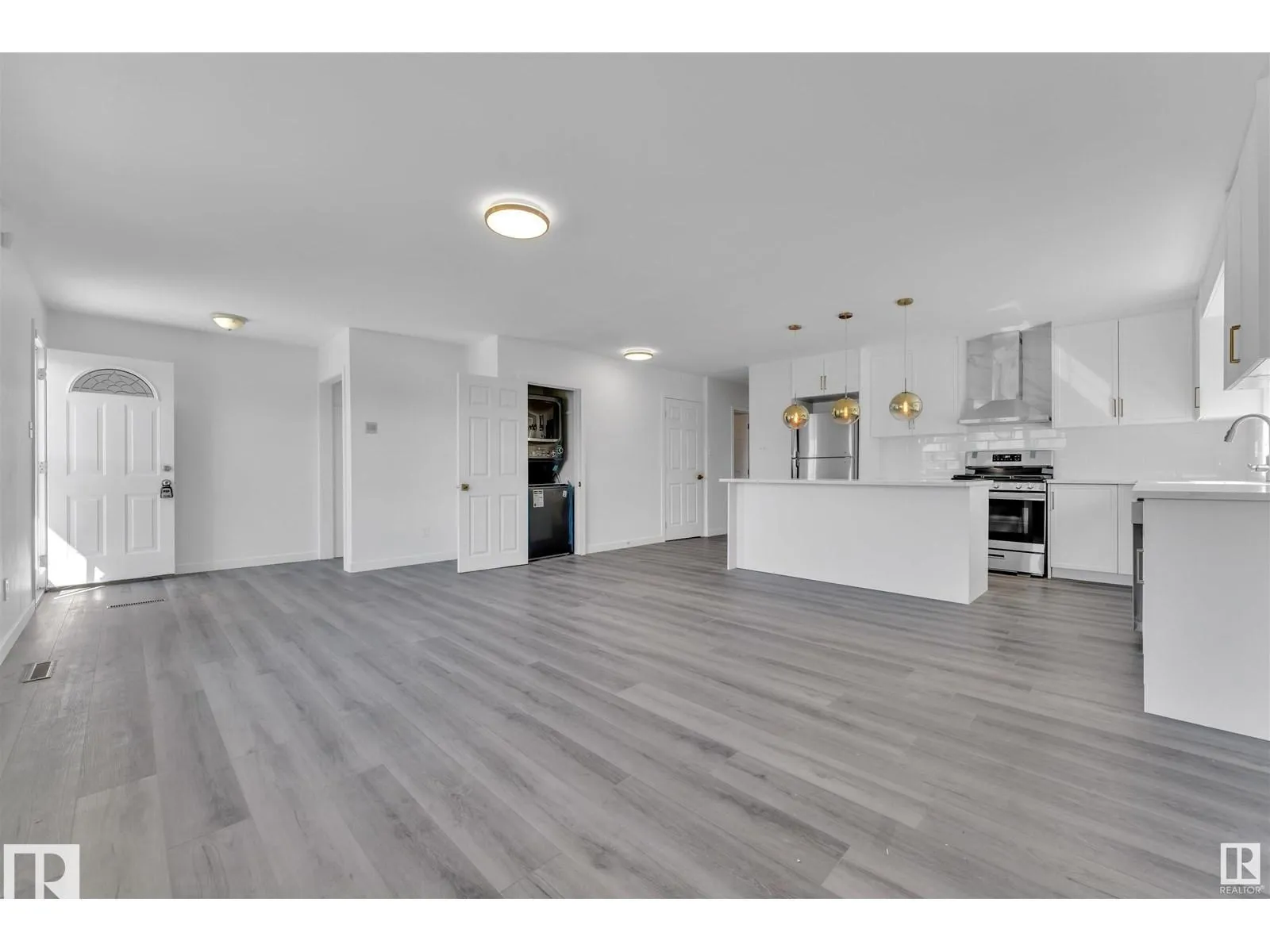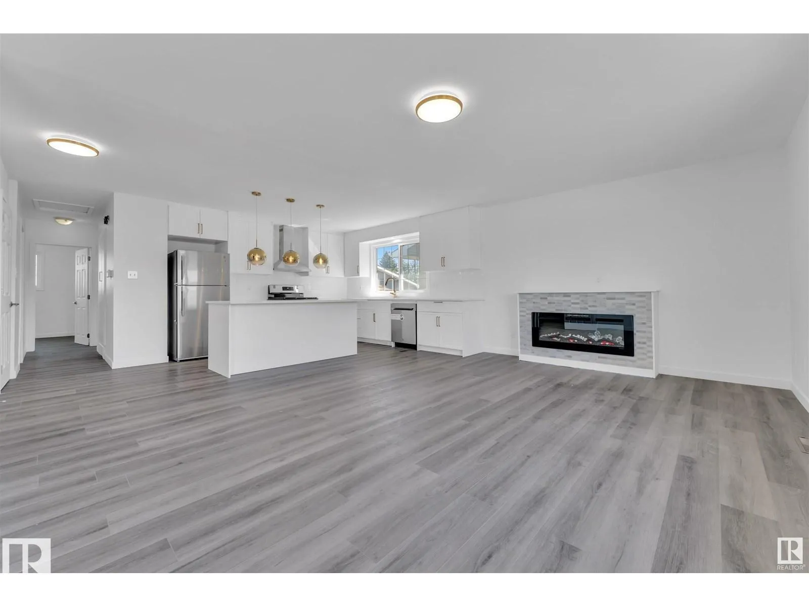 Fully renovated 5-bedroom bungalow offering over 2,200 sq ft of finished living space and 2 full kitchensâideal for extended family or added flexibility. The main floor features a bright open layout with a spacious living room and electric fireplace, flowing into a brand-new kitchen with high-end appliances and gas stove. Three generous bedrooms, a stylish updated full bathroom, and separate main floor laundry complete the level. The basement, with its own separate entrance, includes a large living area with electric fireplace, two bedrooms, a new kitchen, full 4pc bath, and a large laundry room. Situated on a 48x120 lot with a landscaped yard, new concrete, and updated garage steps. Oversized attached single garage. Upgrades include new windows, fresh paint, newer roof and HWT. Move-in ready and packed with value. (id:27476)