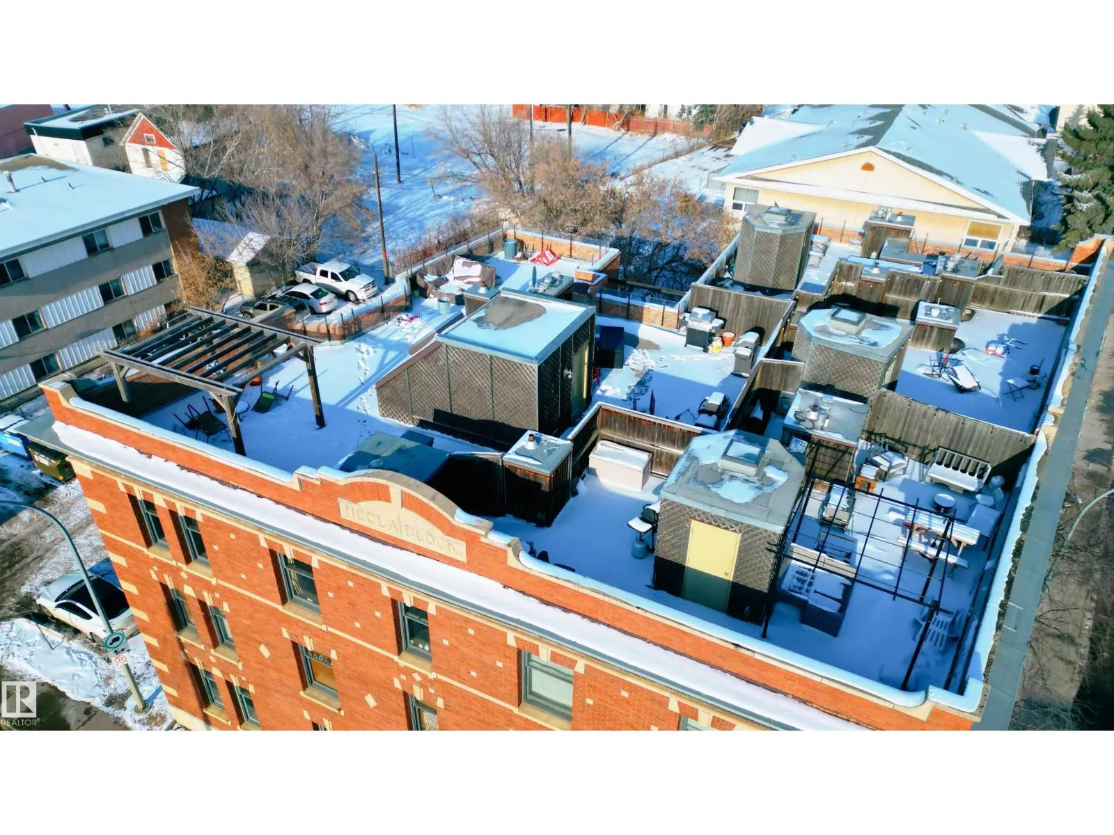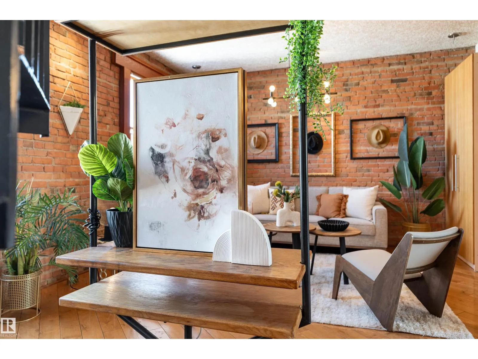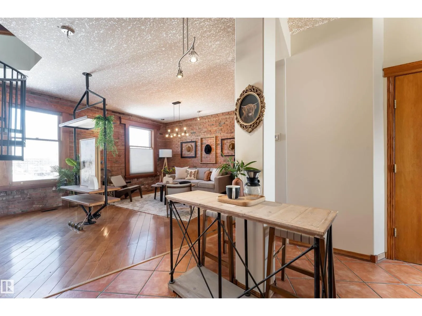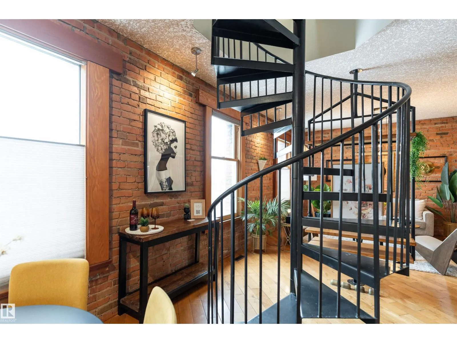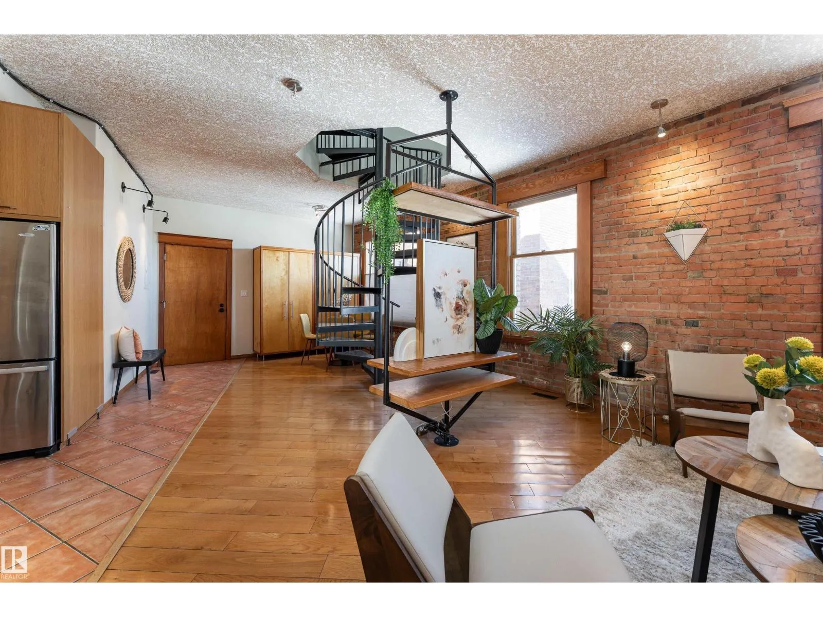 A spiral staircase leads to your PRIVATE ROOFTOP PATIO with a HOT TUB, this 885 sq ft top floor condo is the kind of home people dream about but rarely find. Located in the boutique Hecla Lofts, this penthouse style unit is truly one of a kind, featuring 9 ft ceilings, exposed brick, bright open concept layout and AIRBNB FRIENDLY! The kitchen with stainless steel appliances and modern cabinetry flows seamlessly into the dining and living areas, perfect for entertaining. Upstairs, your private rooftop oasis offers over 500 sq ft of outdoor space with incredible river valley and downtown views, ideal for summer nights in the hot tub or hosting friends. The spacious bedroom, full bath, in suite laundry, underground parking, and added storage complete the home. Just steps to the River Valley, downtown, restaurants, nightlife, and transit, this is more than a condo, itâs a rare chance to own one of the most unique lofts in the city. (id:27476)