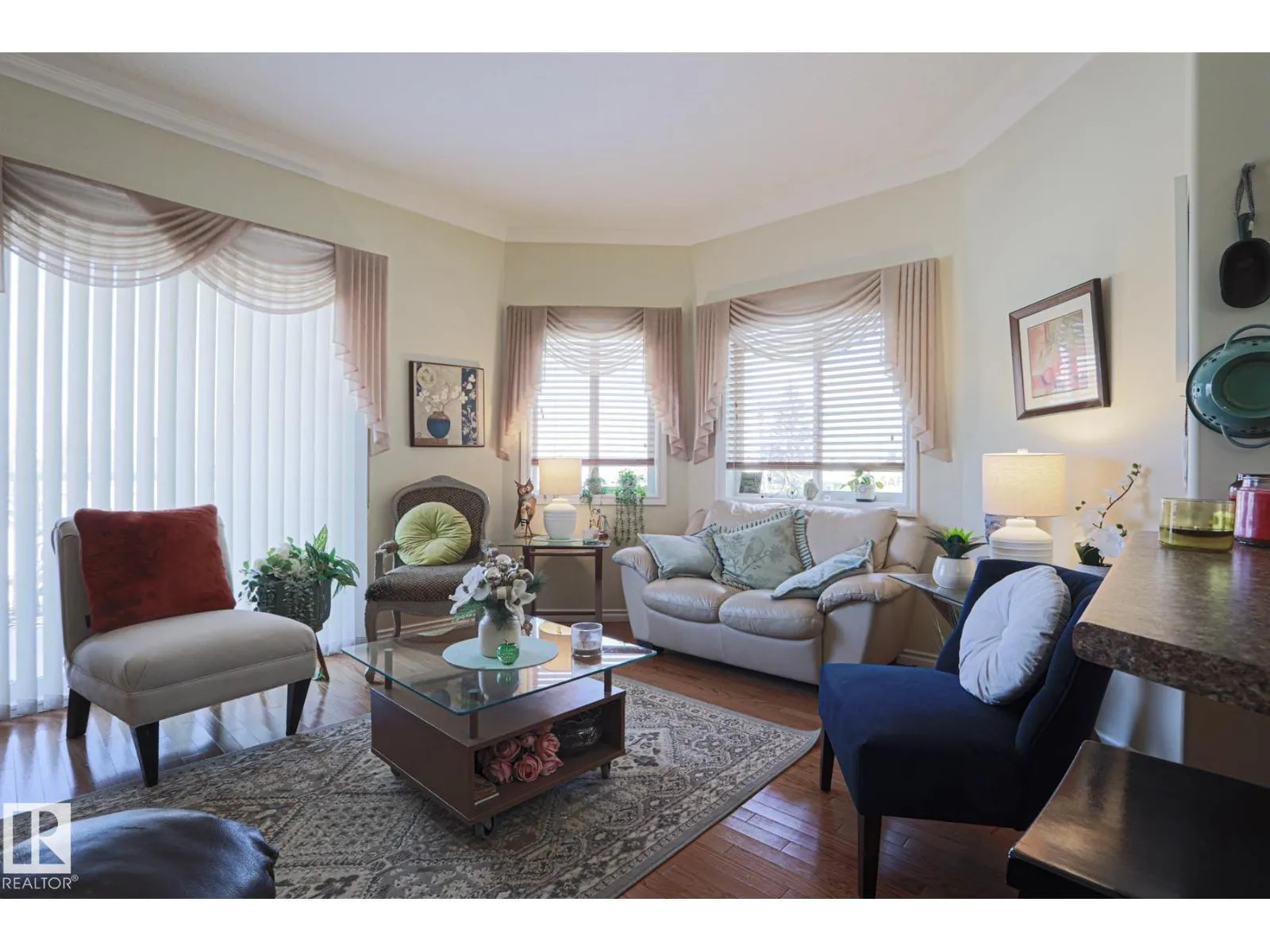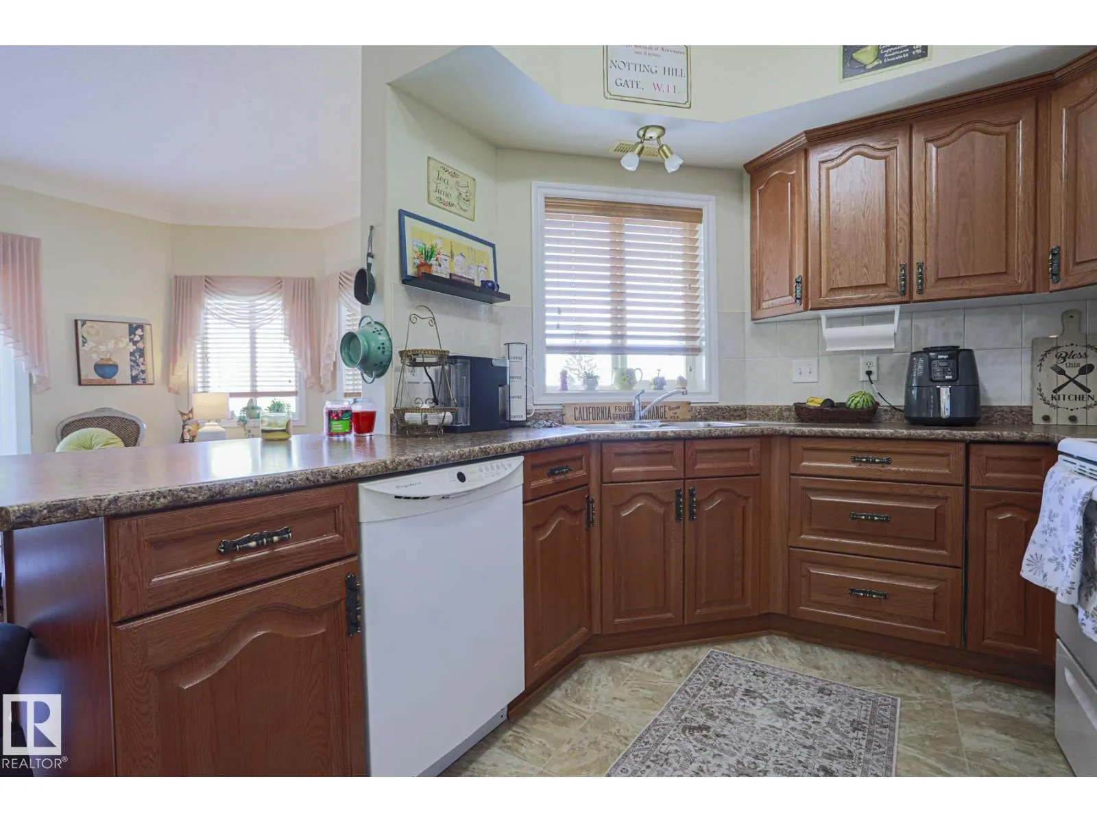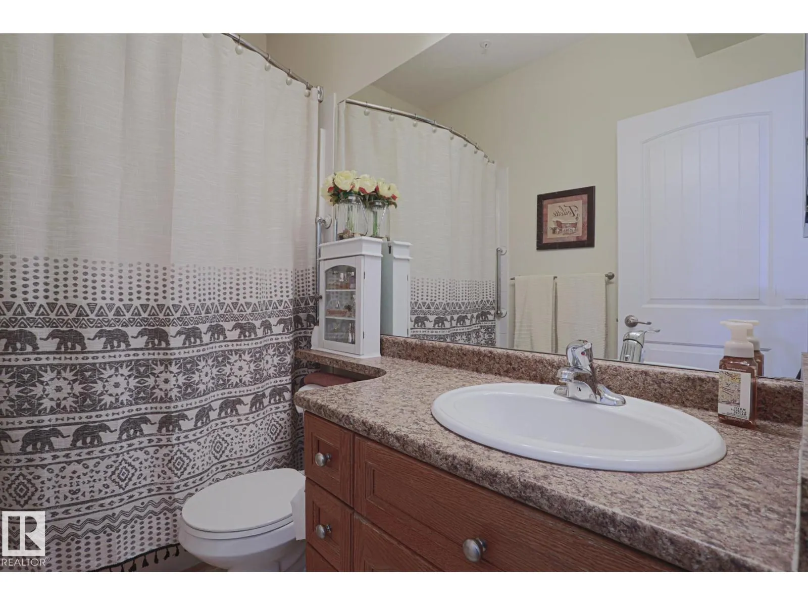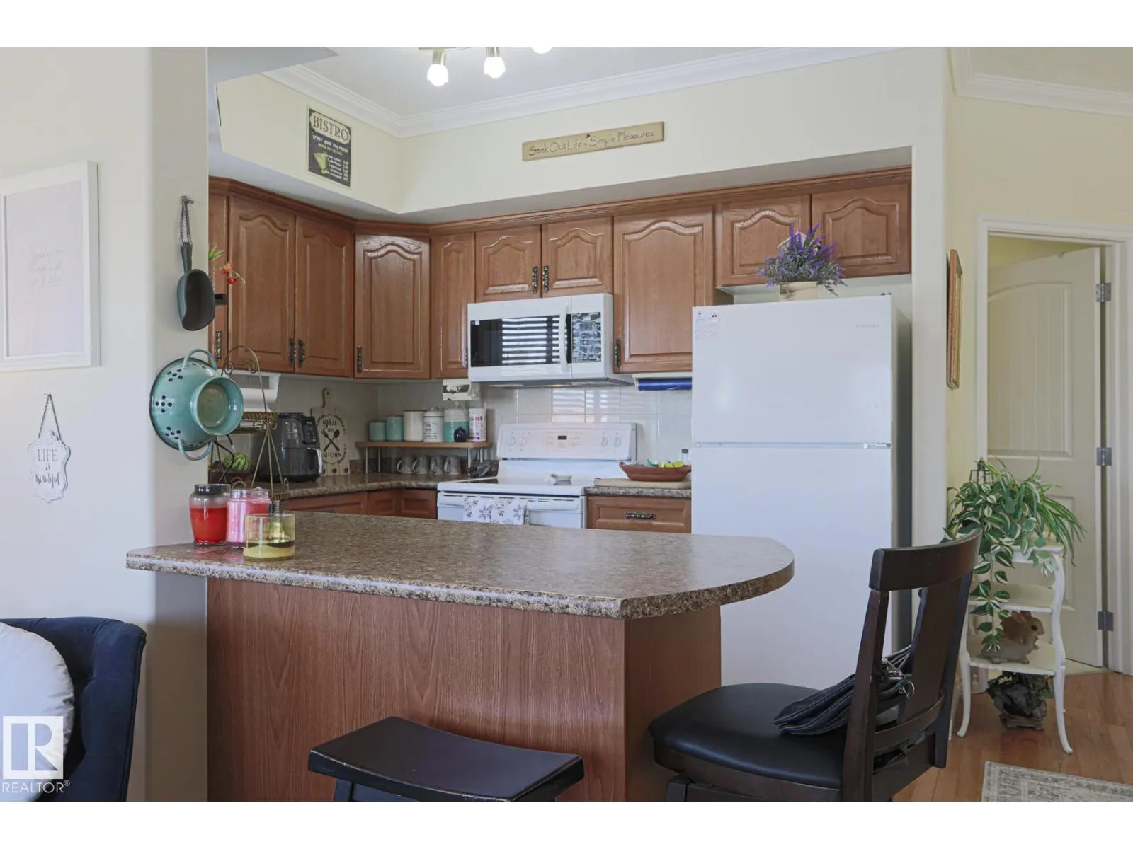 Adult living at its best in Belcanto Court in desirable Bonnie Doon. Beautiful 3rd floor north and east facing suite has lovely primary bedroom, walk through closet and three piece ensuite. Gorgeous hardwood floor adorns the living room with 9' ceilings which features a heartwarming natural gas fireplace with mantle to display your favorite photos and art. Bright kitchen with oak cabinets has a step saving wrap-around style that makes meal prep easy and convenient to serve the breakfast bar and smart dinette. A huge den (which can technically be a bedroom as it has a sprinkler head) makes for a great guest room, office, hobby/craft or relaxing private TV/reading room. You decide! Nice four piece bath for guests with tub. Large laundry room with stacker washer/dryer, lots of shelving and space for your collectibles too. Underground heated parking, carwash, guest suite and social room for savings, value and comfort. Bonnie Doon Mall + Valley Line LRT is close-by for your shopping and travelling convenience. (id:27476)