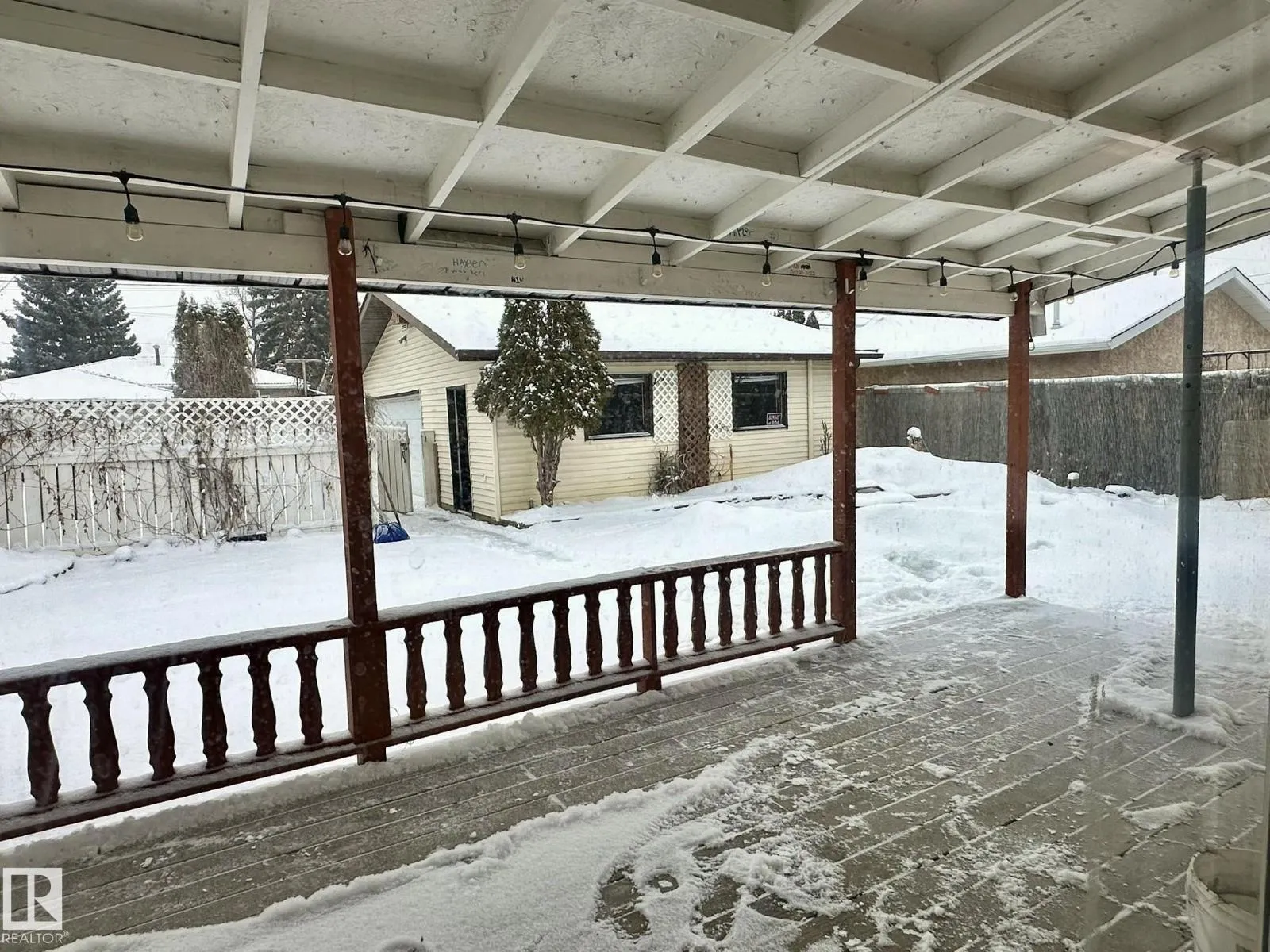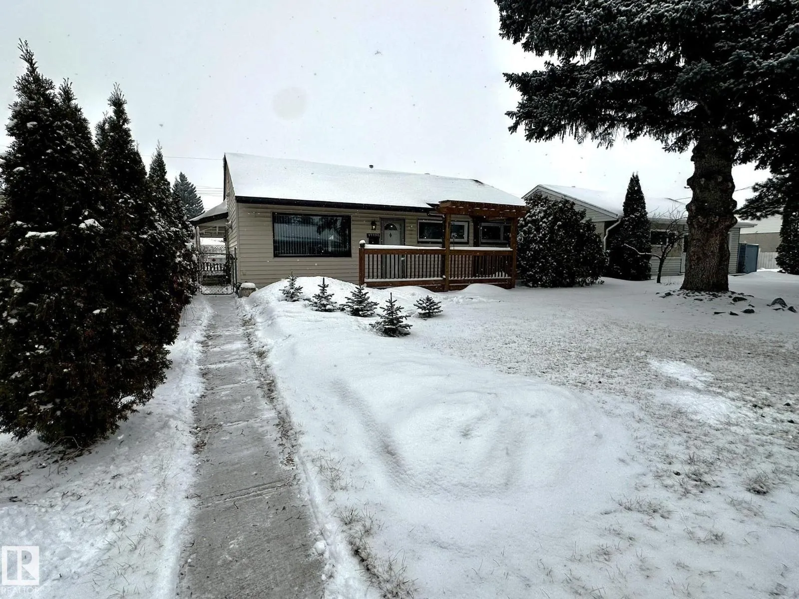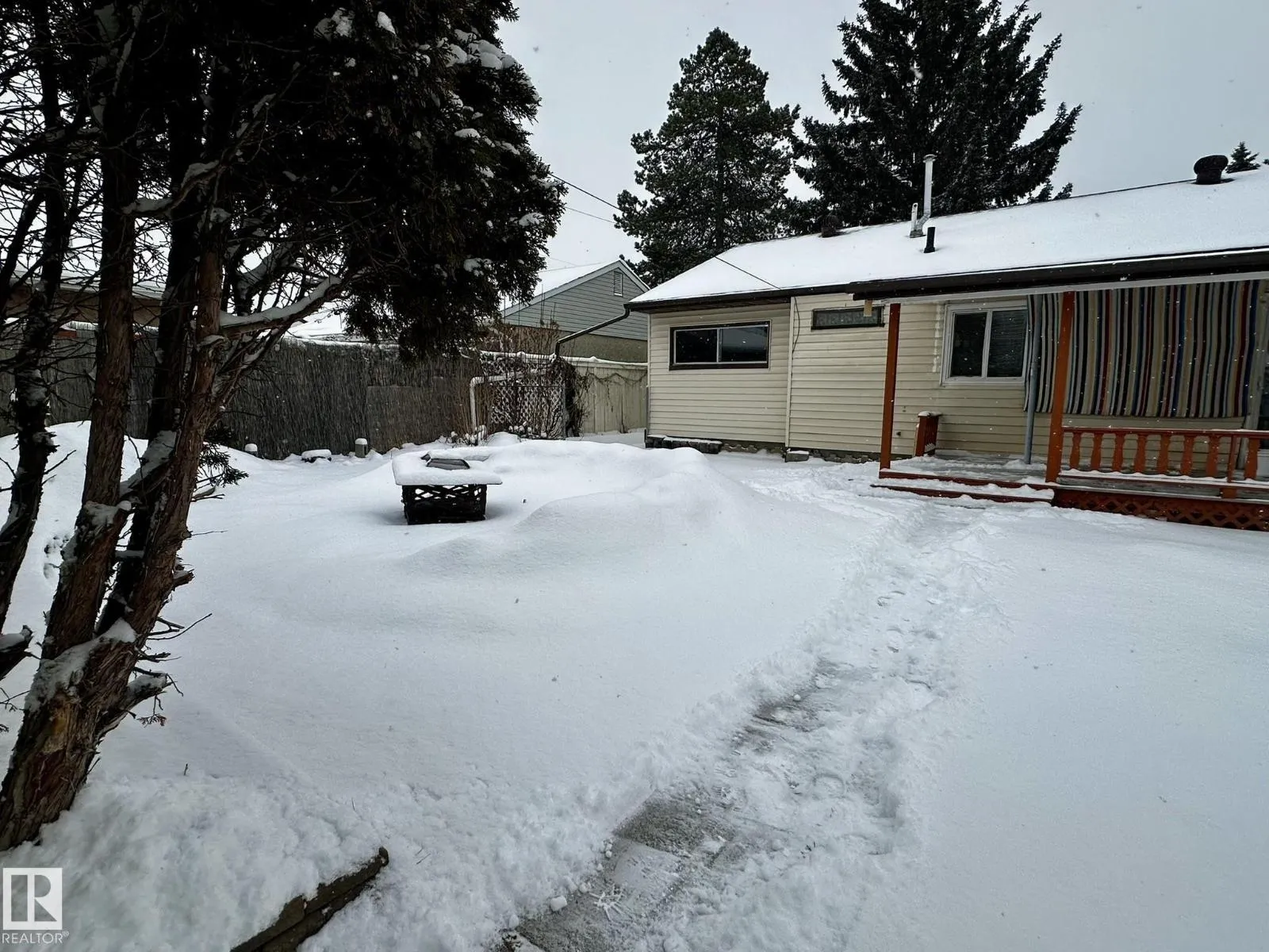 Excellent opportunity for first-time home buyers and investors looking for unbeatable value! This home features a SPACIOUS INSULATED TRIPLE DETACHED GARAGE (30x24) with a double garage door, including a workspace with work bench, and plenty of outside parking. You need to see this garage in person to appreciate its size. The home offers 3 bedrooms (one with classic parquet flooring), a very spacious and bright living room with gas fireplace, laminate throughout, and eat-in kitchen with beautiful wooden cabinetry. Through the kitchen, the sliding glass doors take you out to the covered deck that overlooks the landscaped yard (with fruit trees!). The yard is ready for hosting with a firepit space with plenty of room for everyone. Recent upgrades include: Roof (2021), Furnace and HWT (2022), and laminate flooring (2020). This home is tucked in a quiet corner of Athlone and is walking distance to schools and parks. Minutes to shopping and to the Yellowhead and Mark Messier Trail. A fantastic opportunity! (id:27476)