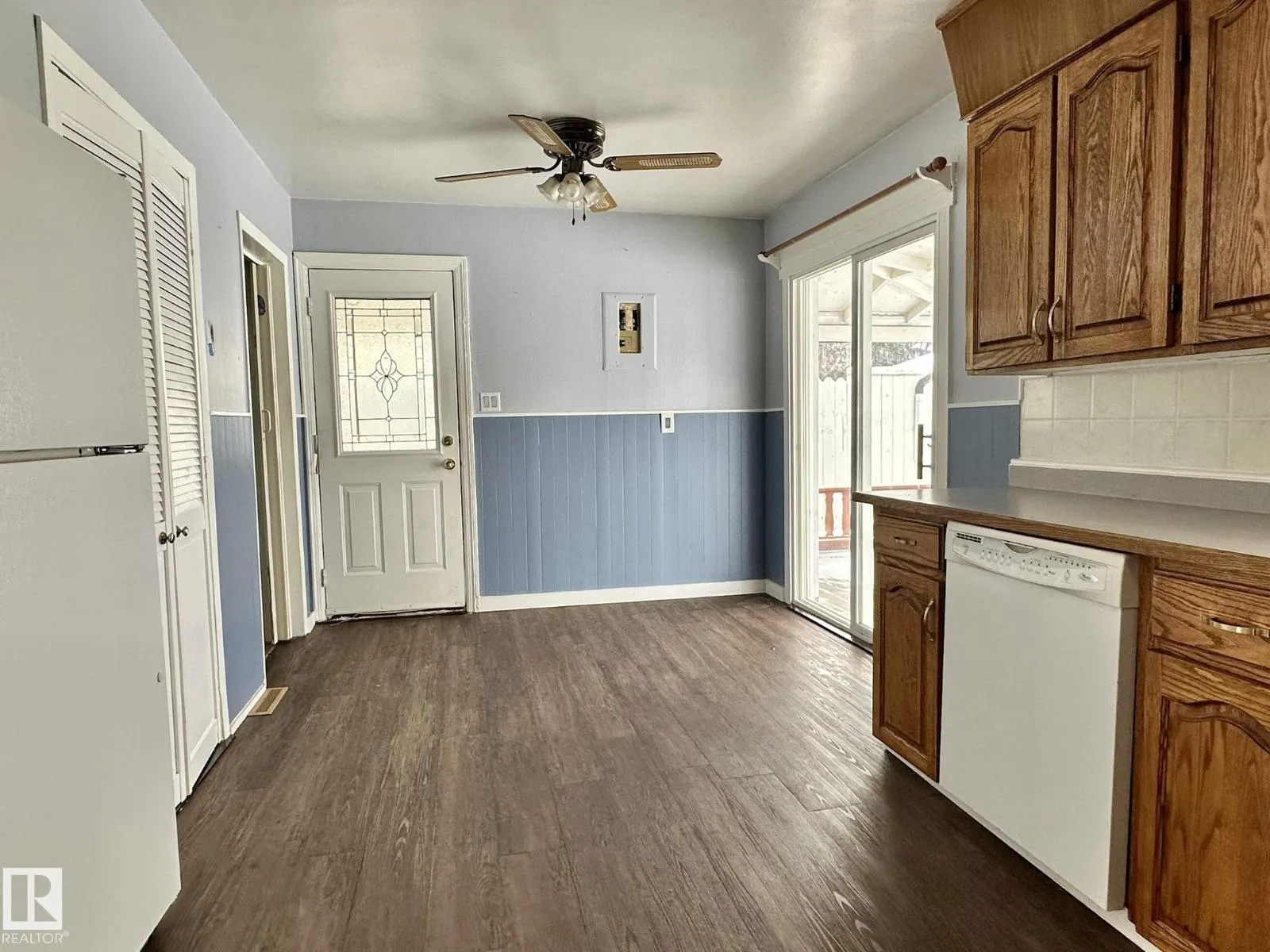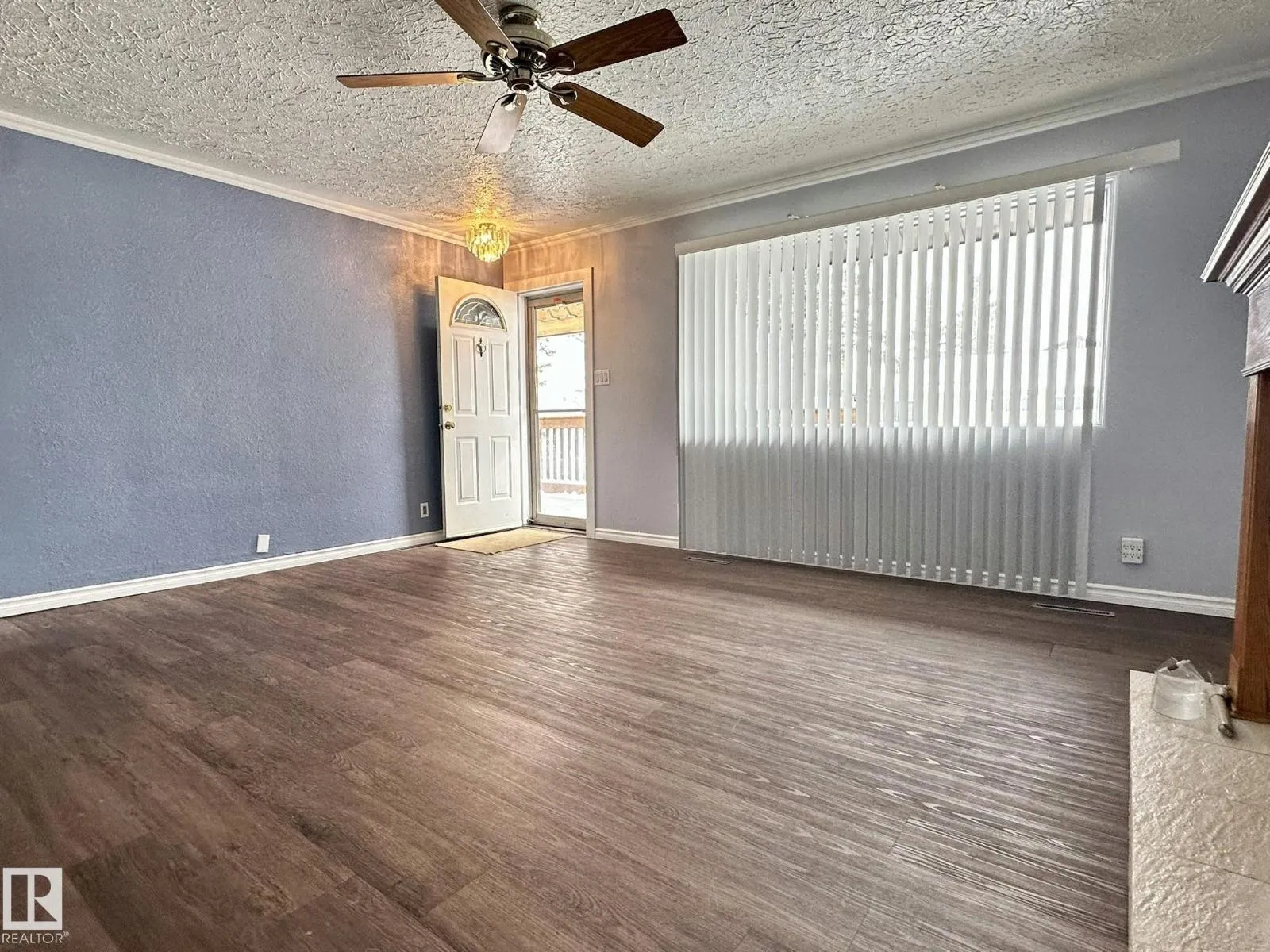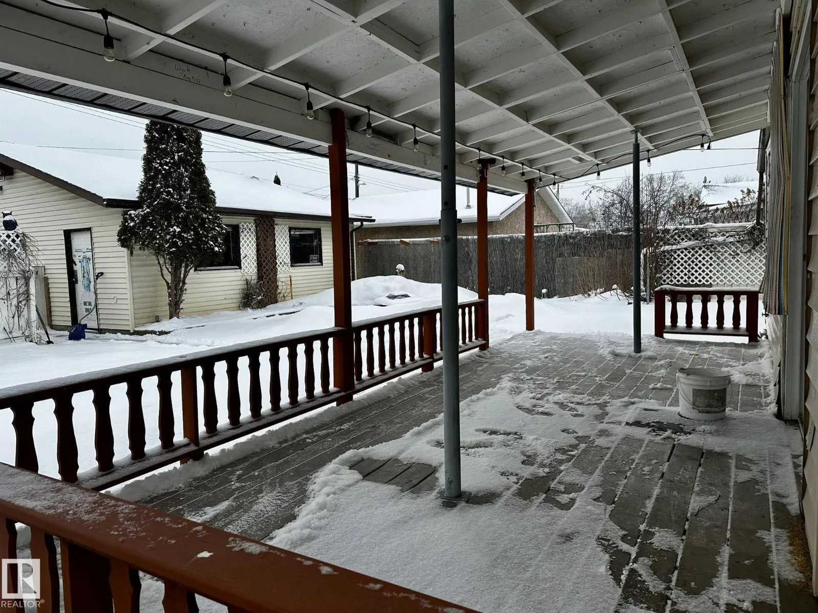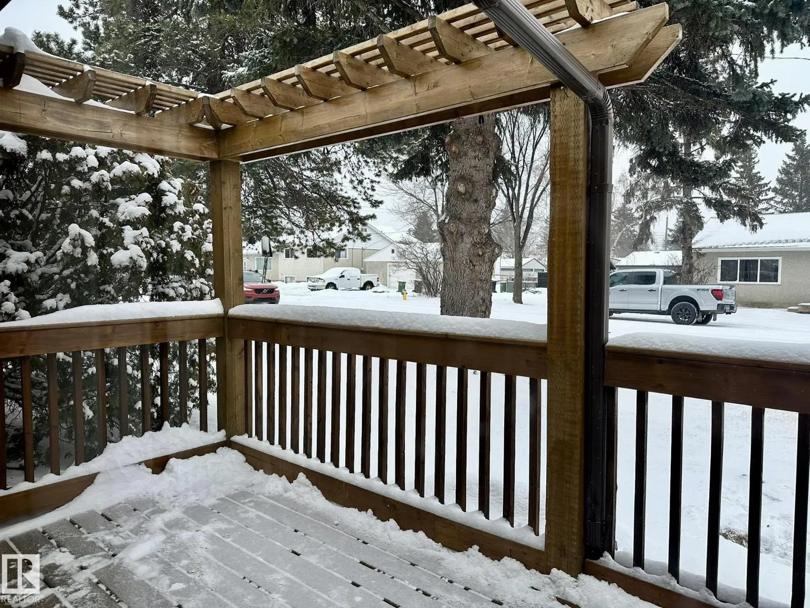 Excellent opportunity for first-time home buyers and investors looking for unbeatable value! This home features a SPACIOUS INSULATED TRIPLE DETACHED GARAGE (30x24) with a double garage door, including a workspace with work bench, and plenty of outside parking. You need to see this garage in person to appreciate its size. The home offers 3 bedrooms (one with classic parquet flooring), a very spacious and bright living room with gas fireplace, laminate throughout, and eat-in kitchen with beautiful wooden cabinetry. Through the kitchen, the sliding glass doors take you out to the covered deck that overlooks the landscaped yard (with fruit trees!). The yard is ready for hosting with a firepit space with plenty of room for everyone. Recent upgrades include: Roof (2021), Furnace and HWT (2022), and laminate flooring (2020). This home is tucked in a quiet corner of Athlone and is walking distance to schools and parks. Minutes to shopping and to the Yellowhead and Mark Messier Trail. A fantastic opportunity! (id:27476)
