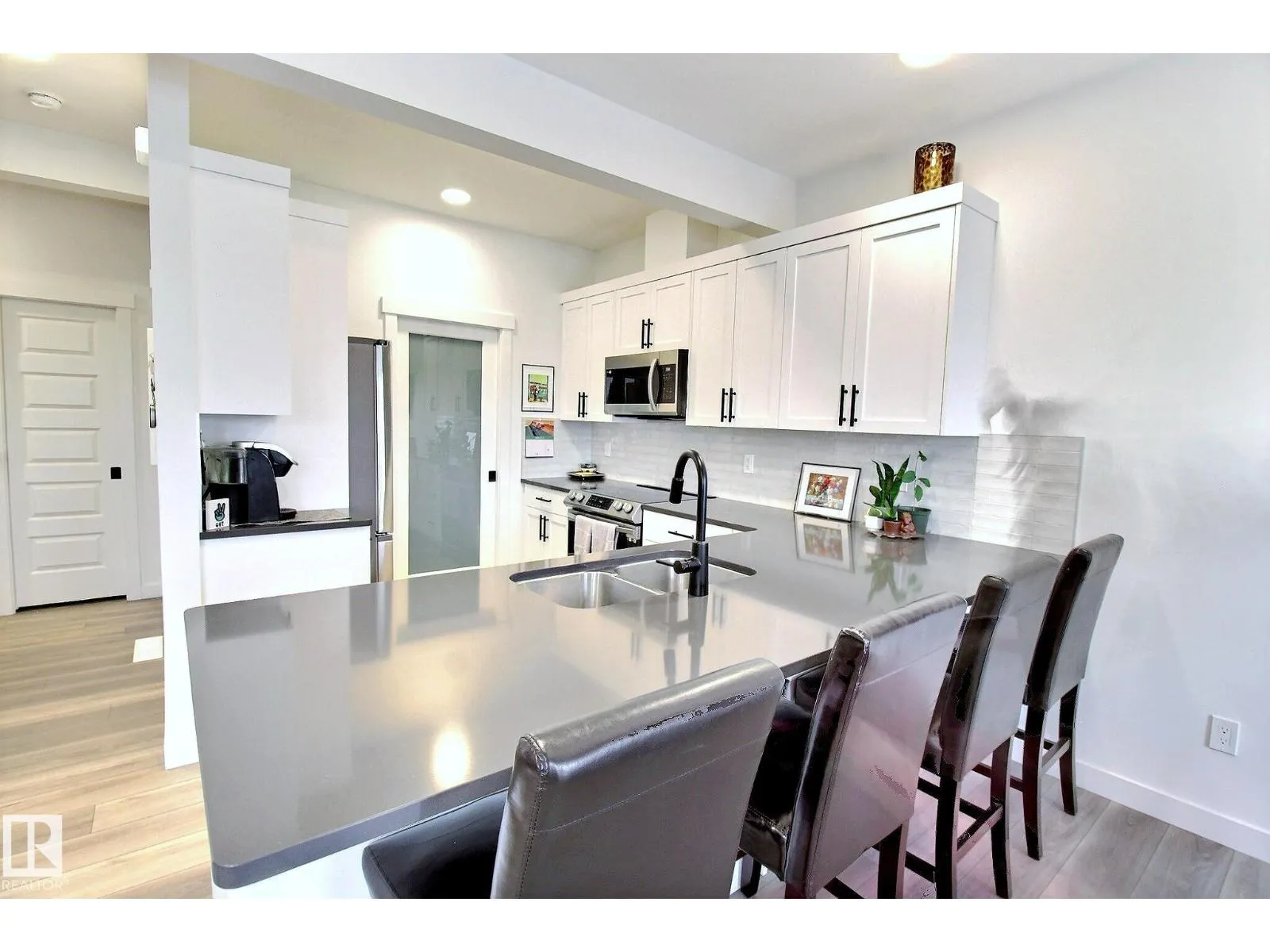 Beautifully maintained and impeccably designed, this exceptional townhome in the desirable Banks of Cavanagh offers a rare blend of style, comfort, and natural serenity. Backing onto the picturesque Blackmud Creek ravine with no neighbours to the south, you'll enjoy peaceful views and direct access to scenic walking trails. The bright, open-concept main floor showcases 9-foot ceilings, large windows, and a modern kitchen with ss appliances, quartz countertops, and seamless flow for everyday living and entertaining. Thoughtfully designed, it features a walk-through mudroom from the double attached garage and central A/C for year-round comfort. Upstairs offers a cozy family room, convenient laundry, and three spacious bedrooms, including a refined primary retreat with a spacious walk-in closet and private 4-pc ensuite. An unfinished basement with roughed-in plumbing provides future potential. Ideally located just minutes from South Edmonton Common and all amenities. A true MUST SEE property! (id:27476)