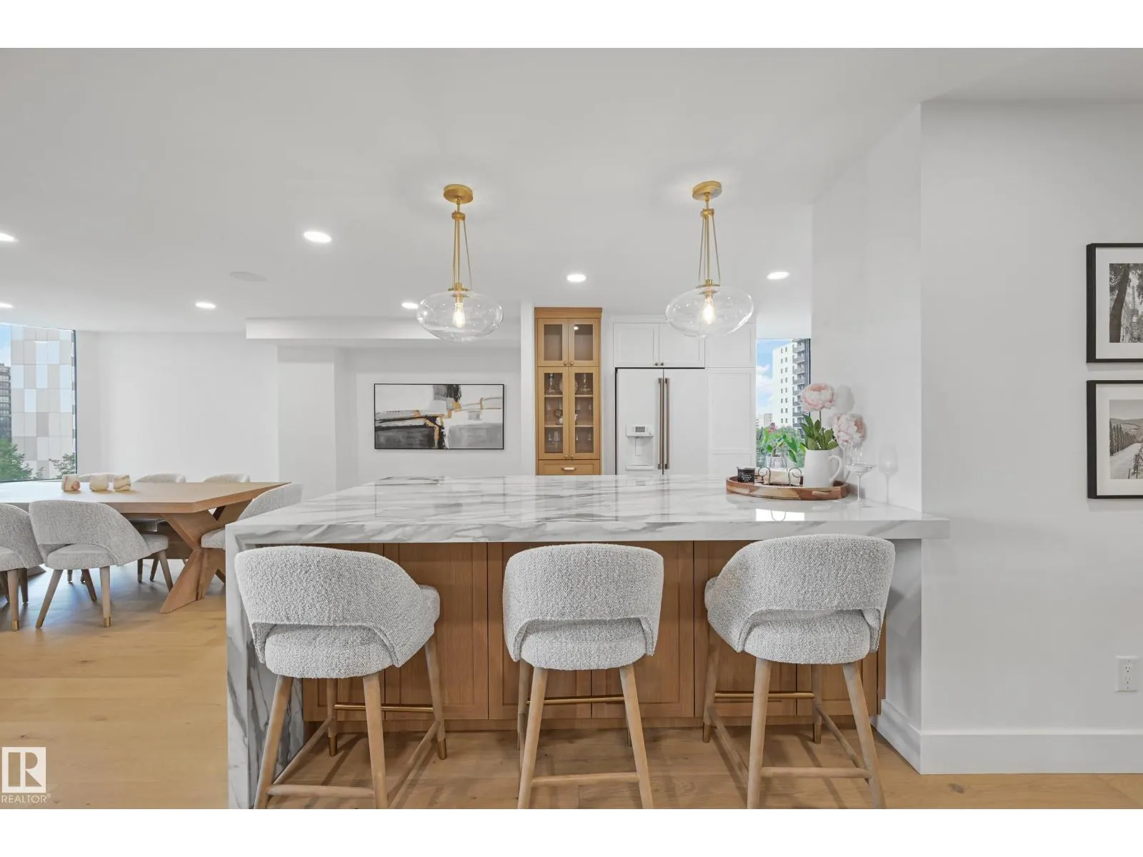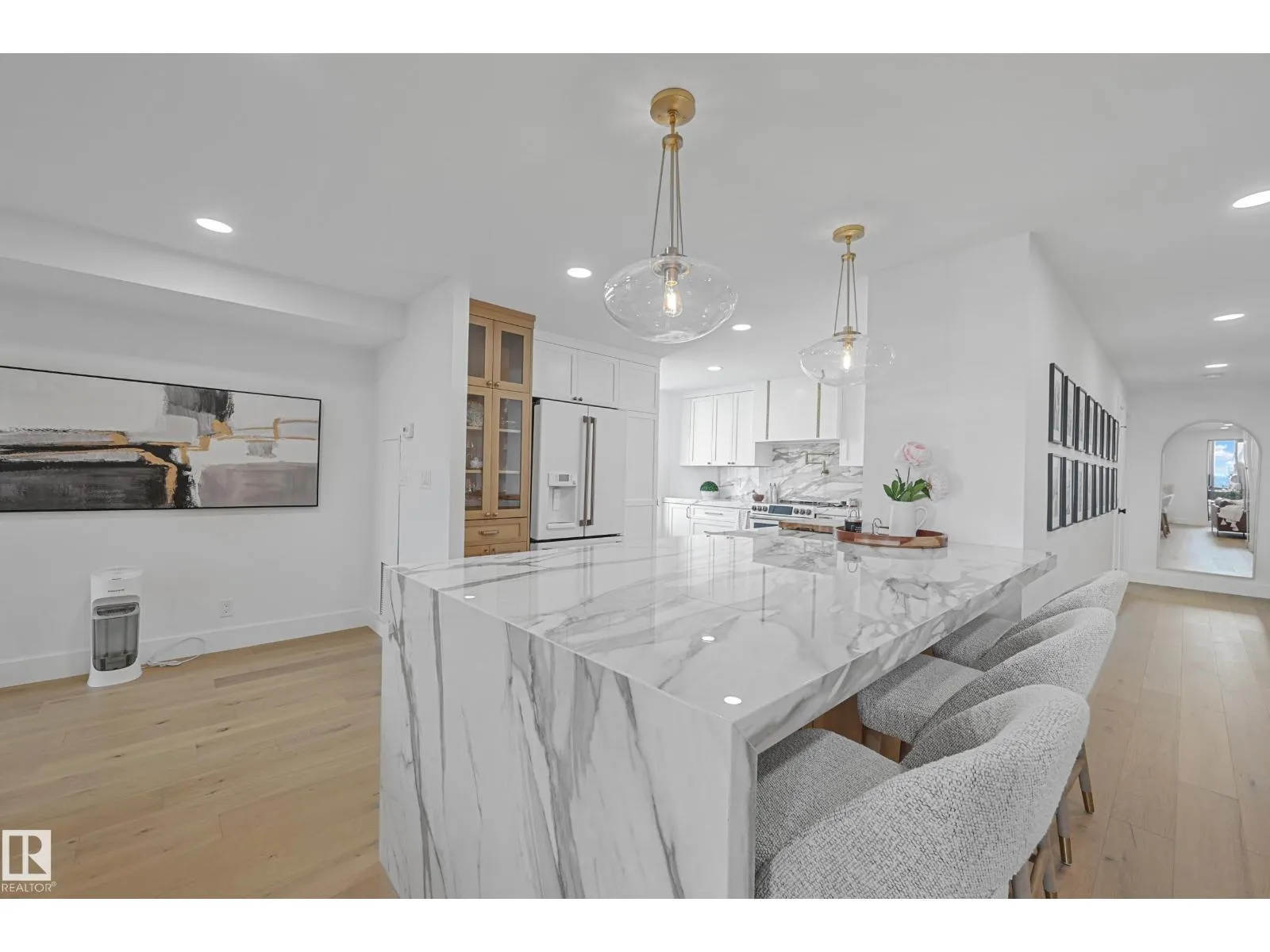 WOW Factor, Dream Location and Upgrades Galore! Welcome to Le Marchand Tower, where timeless historic elegance is seamlessly blended with modern style and functionality. This beautifully reimagined condo in one of Edmontonâs most iconic buildings is sure to leave a lasting impression. Renovated top to bottom, this spacious unit features two bedrooms, two full bathrooms, ample storage in suite laundry and a show-stopping kitchen and open-concept living space perfect for entertaining. With two private patios and stunning partial River Valley and downtown views, it offers the ultimate downtown lifestyle. Need more room to host? Le Marchand offers exceptional amenity spaces, including luxurious indoor and outdoor entertaining areas available for private bookingsâthe crème de la crème of social spaces. Complete with secure heated under ground parking. Love the decor. Letâs talk more, this unit could come professionally curated with the furnishings you see during your viewing. (id:27476)
