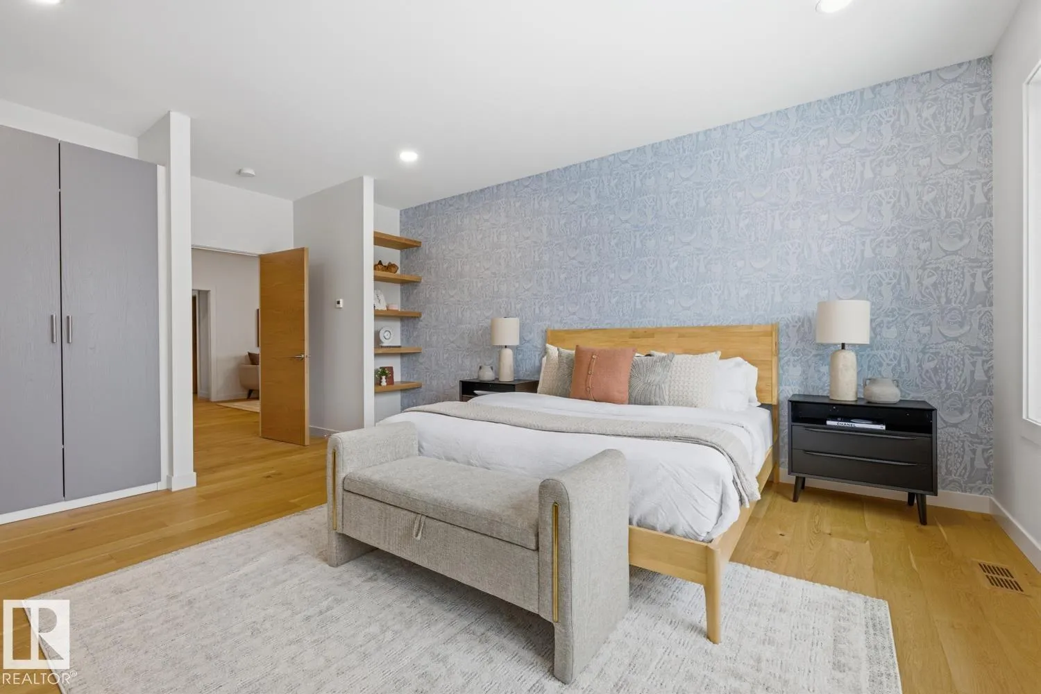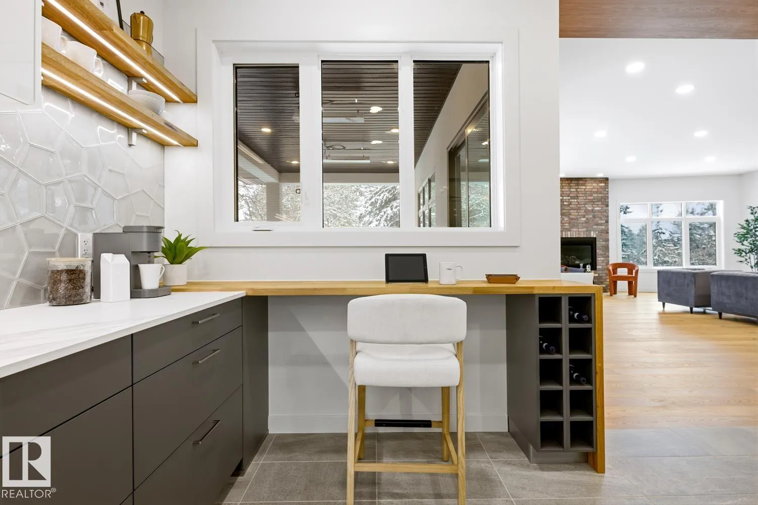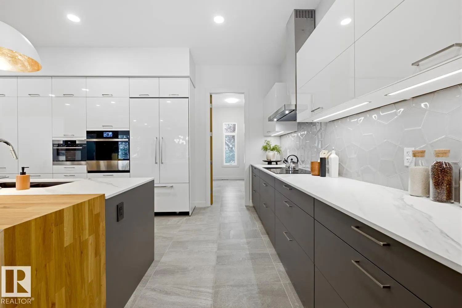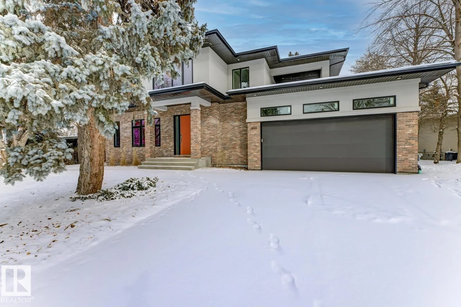Prestigious GRANDVIEW a rare NEW with over 5,790 sqft living space, custom contemporary infill steps from UofA, minutes from the newly announced Stollery Childrenâs Hospital, elevating this already prime location. This 5-bed, 6-bath masterpiece features an open layout, chefâs kitchen, Dekton counters, high-end appliances, a butlerâs pantry. Main floor showcases white-oak hardwood, designer fireplace, office/den, stylish bath, and a large gear/storage room. Sliders open to a covered, heated deck overlooking the treed ravine. Upper level offers a luxury primary suite, plus two bedrooms each with their own ensuite and in-floor heating, laundry room, and a bonus area with doors to a covered, heated balcony engineered for a future hot tub. Fully finished basement includes cold room, 2 large bedrooms, 2 full baths, spacious rec room, and in-floor heating. Home features 2 furnaces (4 zones), AC, central vac, humidifier, and an oversized heated garage. Situated on a landscaped, park-like lot with mature trees. (id:27476)