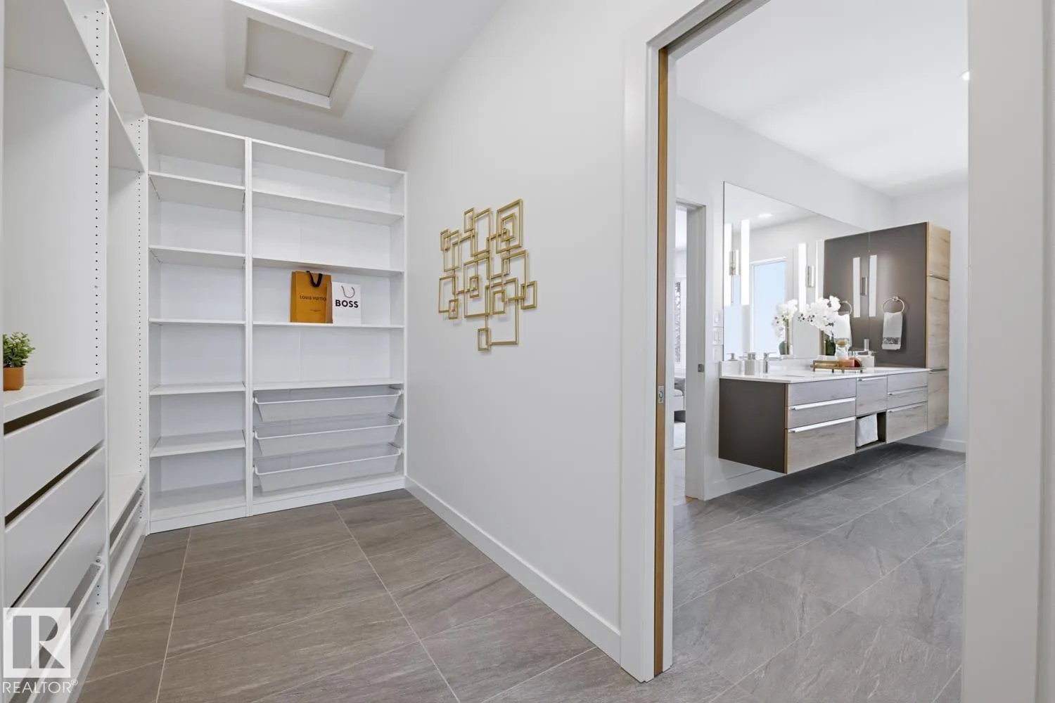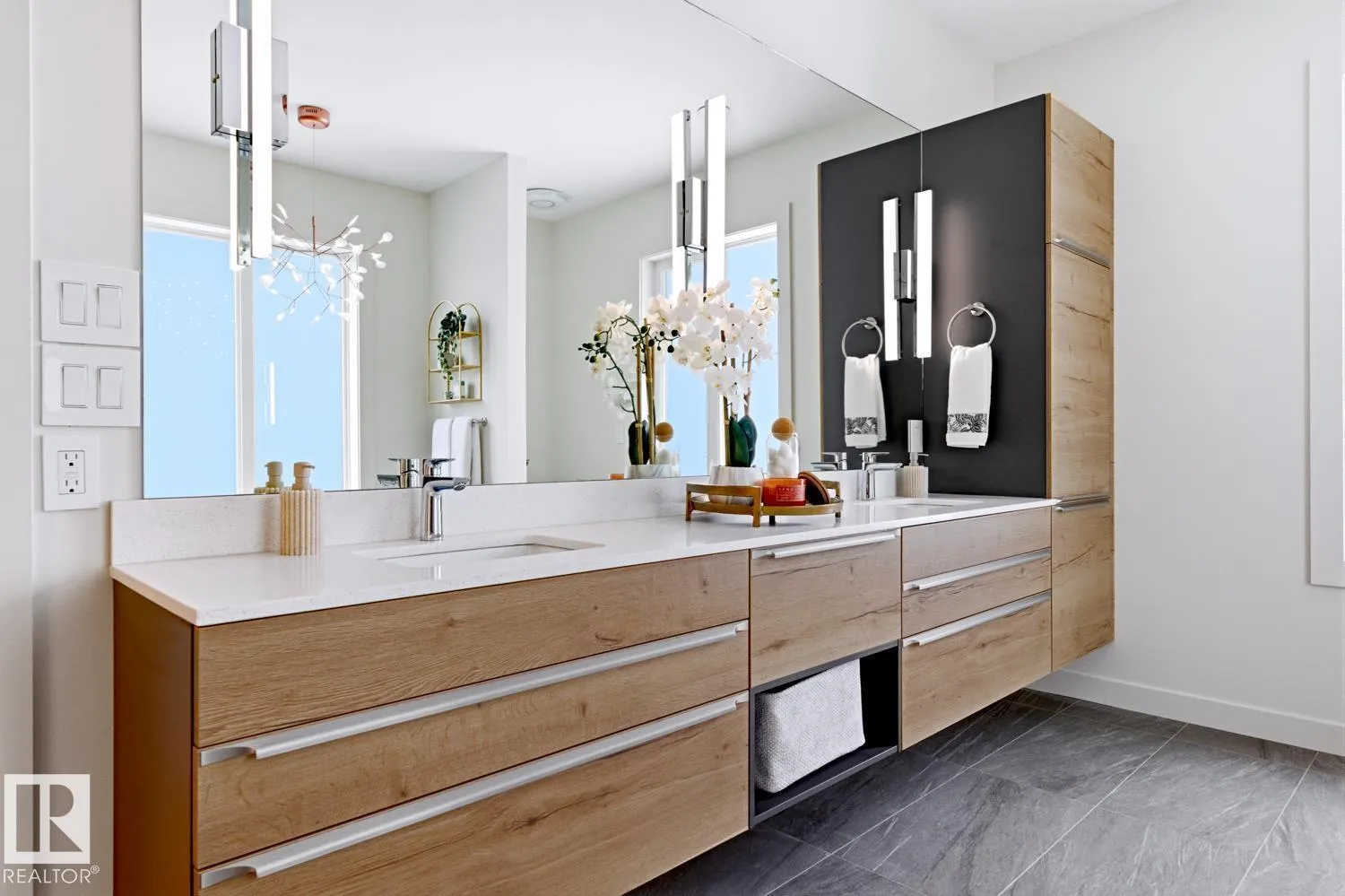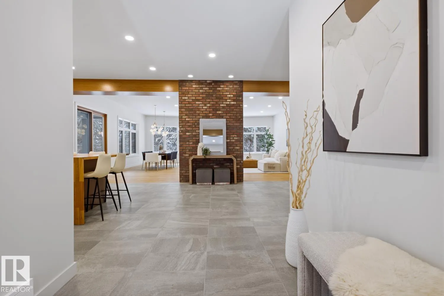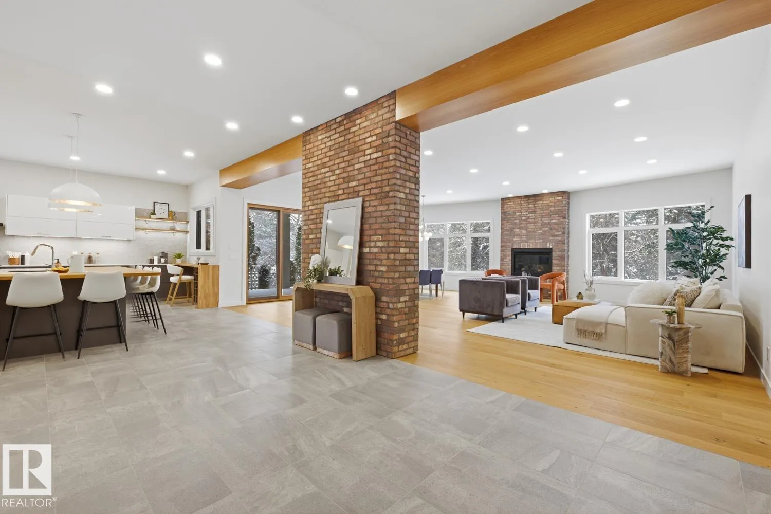 Prestigious GRANDVIEW a rare NEW with over 5,790 sqft living space, custom contemporary infill steps from UofA, minutes from the newly announced Stollery Childrenâs Hospital, elevating this already prime location. This 5-bed, 6-bath masterpiece features an open layout, chefâs kitchen, Dekton counters, high-end appliances, a butlerâs pantry. Main floor showcases white-oak hardwood, designer fireplace, office/den, stylish bath, and a large gear/storage room. Sliders open to a covered, heated deck overlooking the treed ravine. Upper level offers a luxury primary suite, plus two bedrooms each with their own ensuite and in-floor heating, laundry room, and a bonus area with doors to a covered, heated balcony engineered for a future hot tub. Fully finished basement includes cold room, 2 large bedrooms, 2 full baths, spacious rec room, and in-floor heating. Home features 2 furnaces (4 zones), AC, central vac, humidifier, and an oversized heated garage. Situated on a landscaped, park-like lot with mature trees. (id:27476)