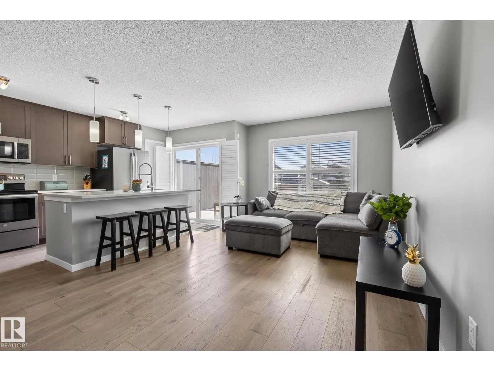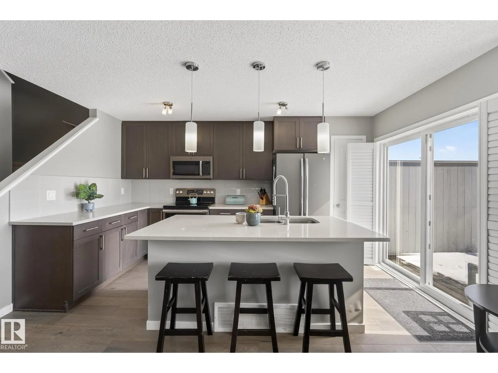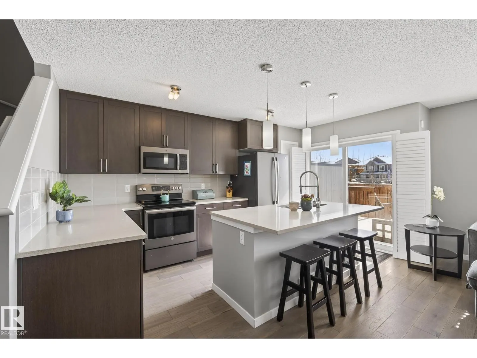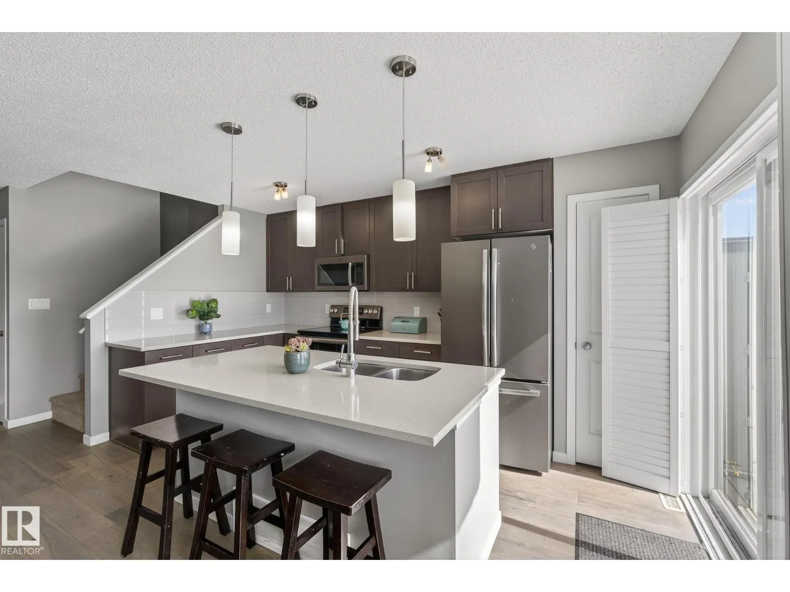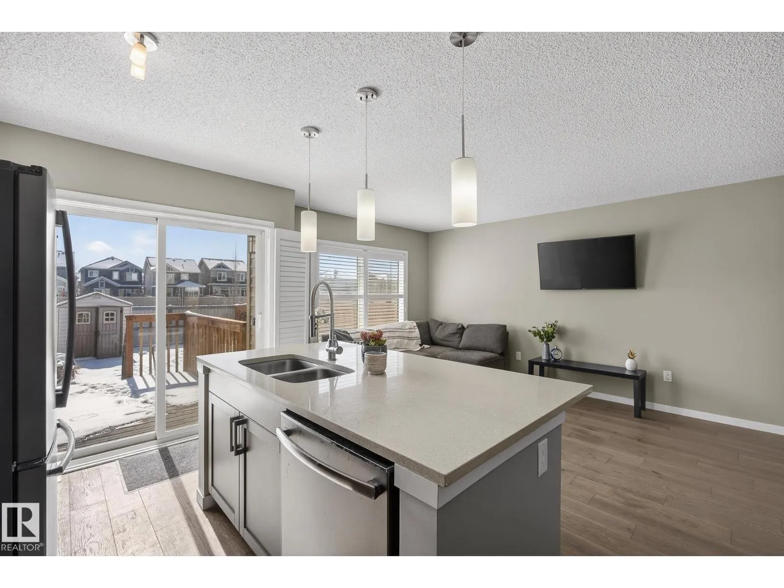 Welcome to Lake Summerside... Where everyday living feels like a vacation! Enjoy exclusive access to a 32-acre freshwater lake, private beach club, and a true sandy beach in this sought-after, resort-style community. This 1,423 sq. ft. home is move in ready and just steps away from Strembitsky School AND Summerside park! The open-concept main floor is designed for both entertaining and everyday comfort, featuring a stunning island kitchen with quartz countertops, full-height cabinetry, tile backsplash, and pantry. The dining and living areas are filled with natural light thanks to oversized windows with custom shutters. Upstairs, youâll find three generously sized bedrooms, including a spacious primary retreat with a walk-in closet and ensuite, plus a full main bath and convenient upper-floor laundry. Complete with hardwood and tile flooring, five appliances, front and back landscaping, and a deck. Welcome home family! (id:27476)