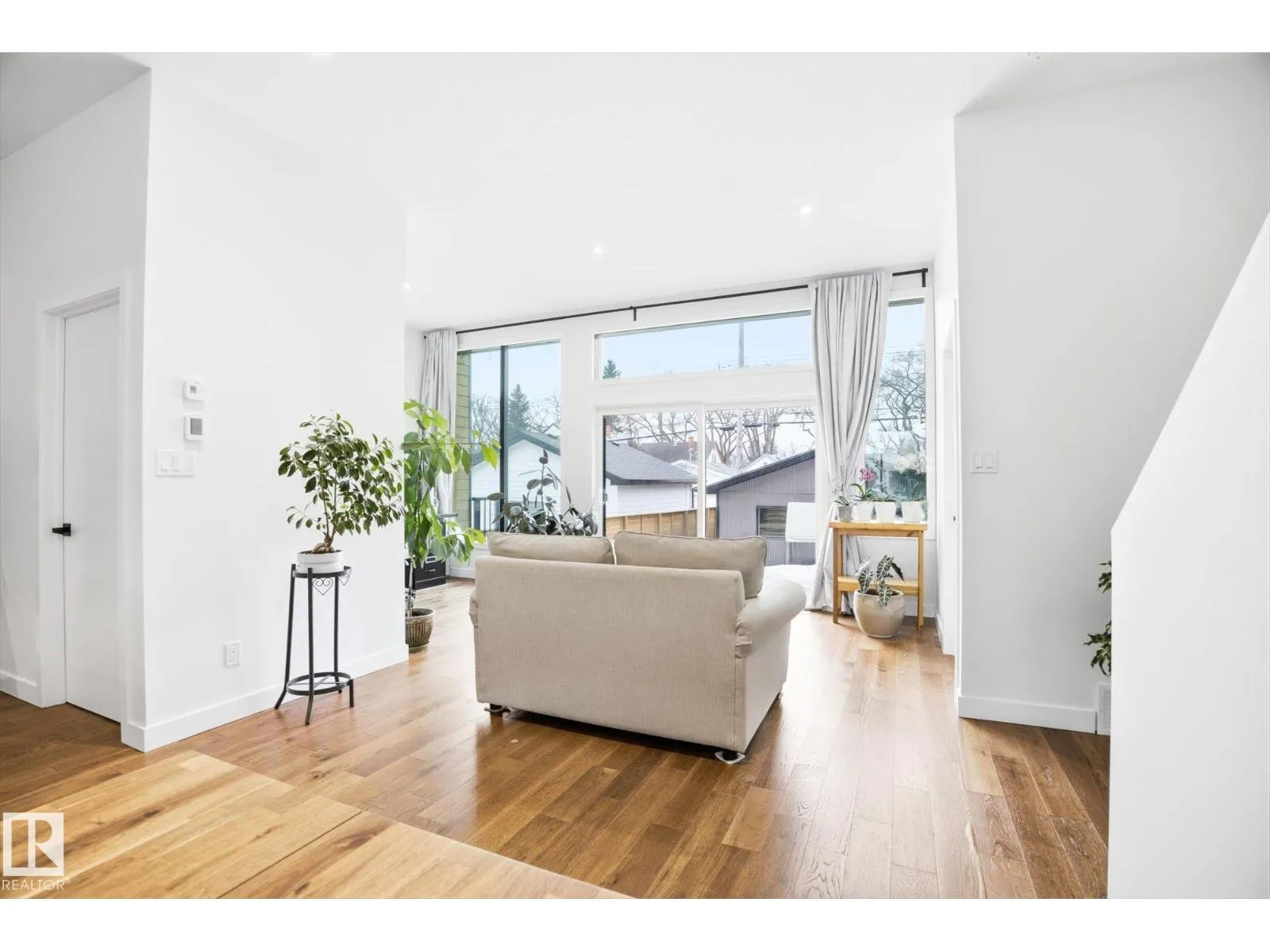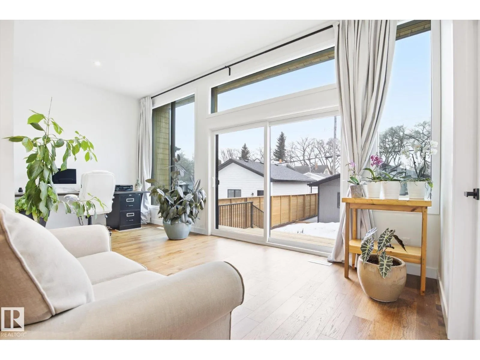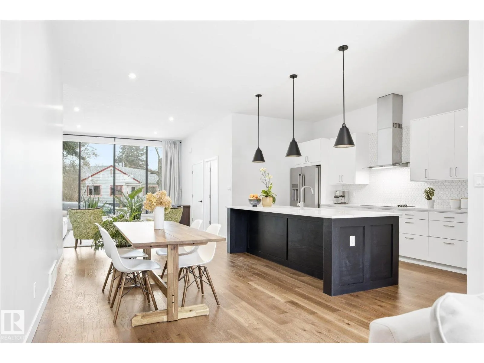 This gorgeous, contemporary Canmore-styled home is stunning in every way! The exterior features a large front deck and extraordinary curb appeal. With over 2100 sq. ft. above basement, 10' high ceilings, floor to ceiling windows, your family will have plenty of space and natural light. The main floor features an office, guest bathroom, and living room with extensive natural light, hardwood floors, and 10' high ceilings. The open concept kitchen has white cabinetry with black hardware, spacious island, quartz countertops, stainless steel appliances, and walk-in pantry. Dining area is adj to kitchen and large eating nook behind along windows with view of deck/yard. This home has Light Zone windows with 4 panes of glass w. 50 yr. warranty, ICF Foundation from basement all the way to the top of the second level. Second level has 3 large bedrooms, laundry, 2 full bathrooms and large primary w. walk-in closet. Bsmt is unfinished. On demand hot water, HRV, Radon det., Solar Panels. Dbl detached garage. (id:27476)