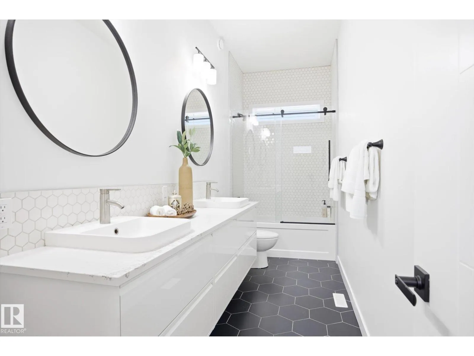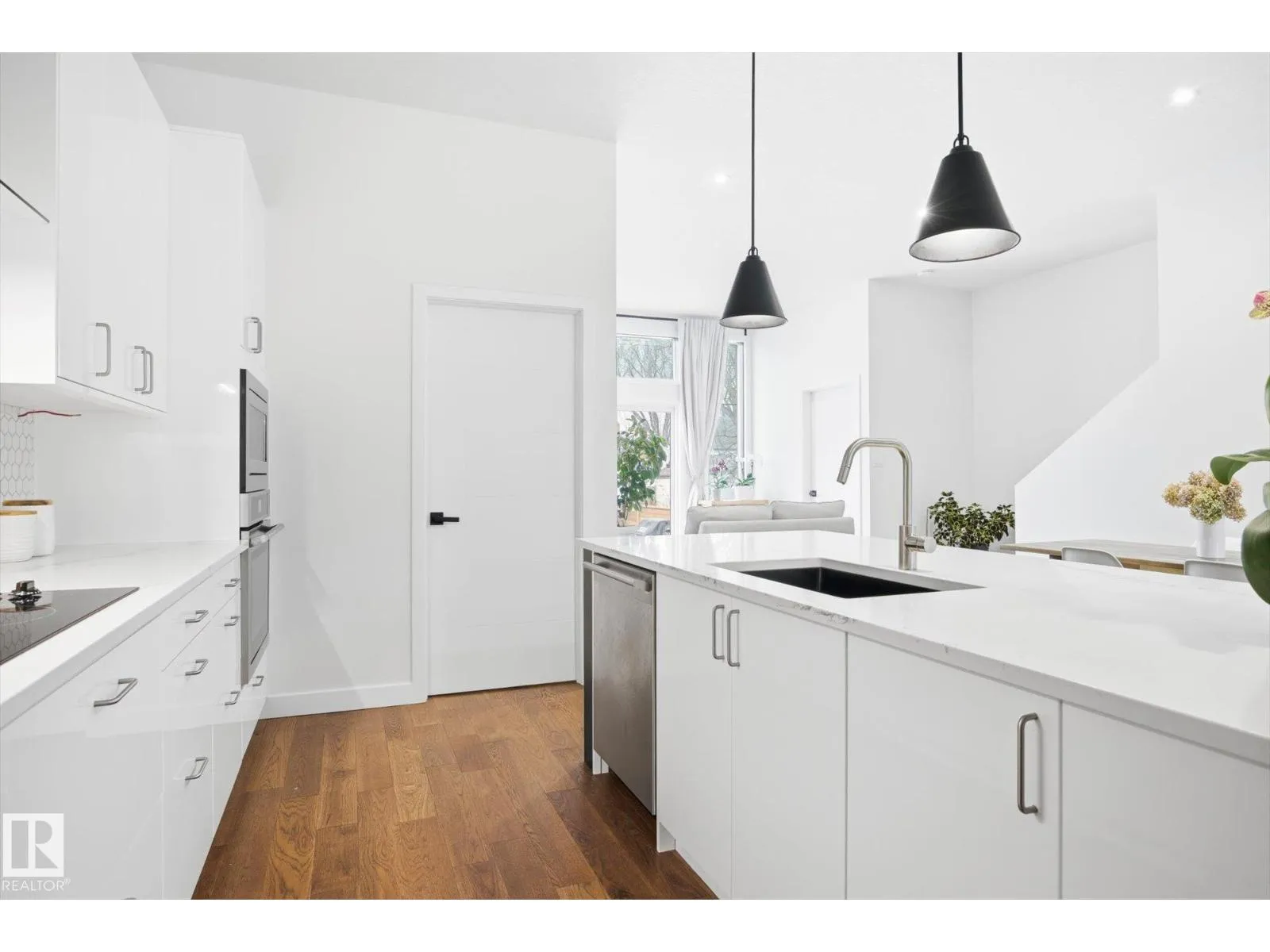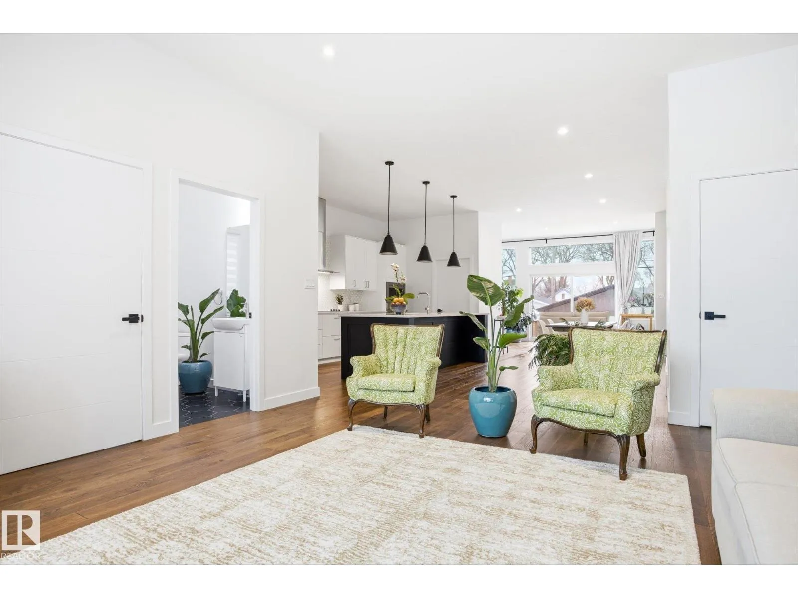 This gorgeous, contemporary Canmore-styled home is stunning in every way! The exterior features a large front deck and extraordinary curb appeal. With over 2100 sq. ft. above basement, 10' high ceilings, floor to ceiling windows, your family will have plenty of space and natural light. The main floor features an office, guest bathroom, and living room with extensive natural light, hardwood floors, and 10' high ceilings. The open concept kitchen has white cabinetry with black hardware, spacious island, quartz countertops, stainless steel appliances, and walk-in pantry. Dining area is adj to kitchen and large eating nook behind along windows with view of deck/yard. This home has Light Zone windows with 4 panes of glass w. 50 yr. warranty, ICF Foundation from basement all the way to the top of the second level. Second level has 3 large bedrooms, laundry, 2 full bathrooms and large primary w. walk-in closet. Bsmt is unfinished. On demand hot water, HRV, Radon det., Solar Panels. Dbl detached garage. (id:27476)