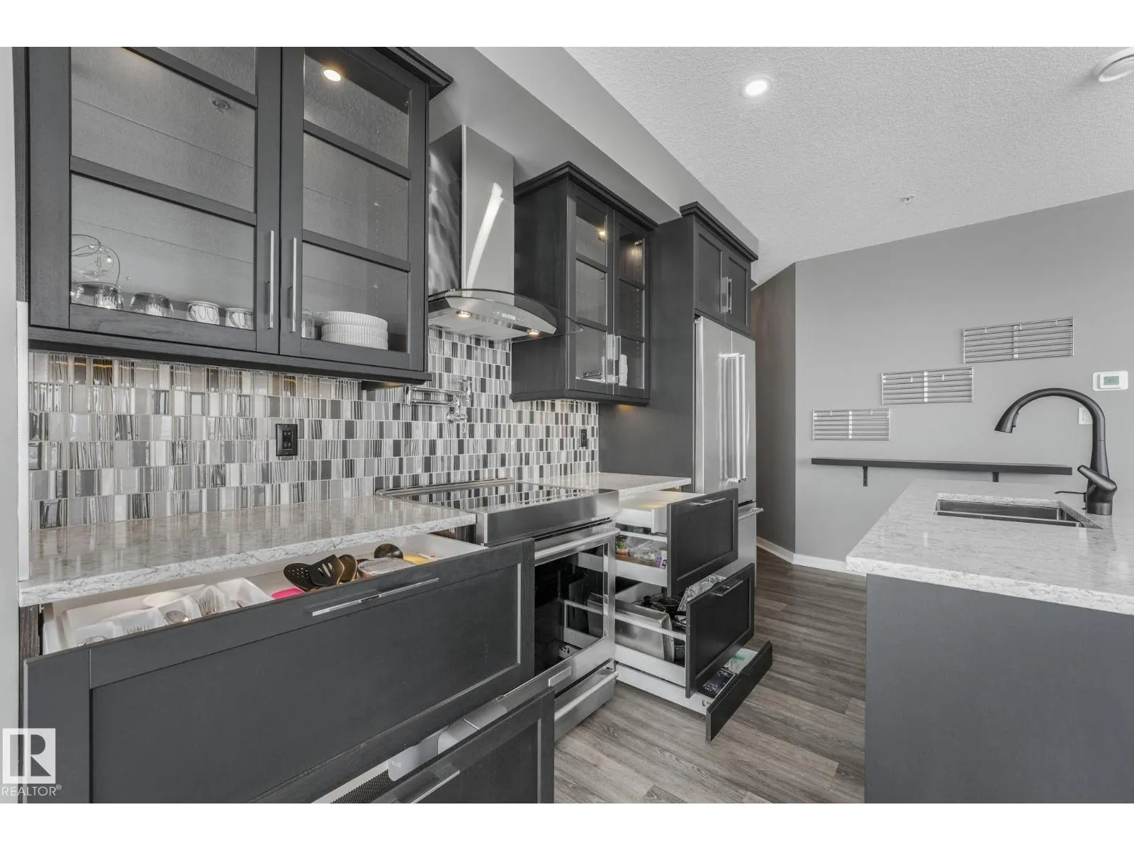 Live life to the MAXX! Perfectly positioned in Queen Mary Parkâjust steps from 104 Ave and MacEwan Universityâthis premier, well-managed condo puts the best of the city at your doorstep. This stylish 2 bed, 2 full bath CORNER suite shines with upgrades: HUGE ISLAND, sleek granite C/T, modern cabinetry, and a high-end SS appliance package feat. an induction stove, pot filler, and upgraded oven range. Enjoy luxury vinyl plank flooring, fresh designer paint, and central A/C for year-round comfort. Step outside to not one, but TWO NORTH - and WEST - facing balconies with city views and a BBQ hookupâperfect for morning coffee or evening unwinds. Your titled, heated, secure underground parking stall is ready, though with a Walk Score of 10, you may rarely need it. Cafés, restaurants, galleries, boutiques, The Promenade, Jasper Ave, 124 Street, and River Valley trails are all just steps away, with quick access to the Ice District, U of A, NAIT, and transit. Stylish, connected, and completely move-in rea (id:27476)