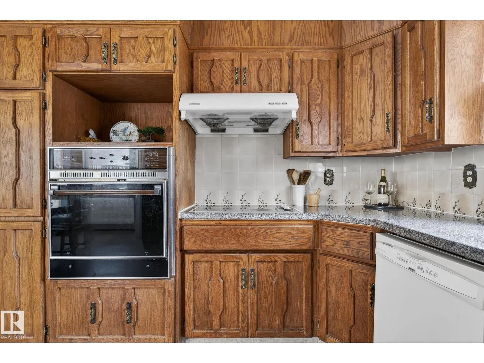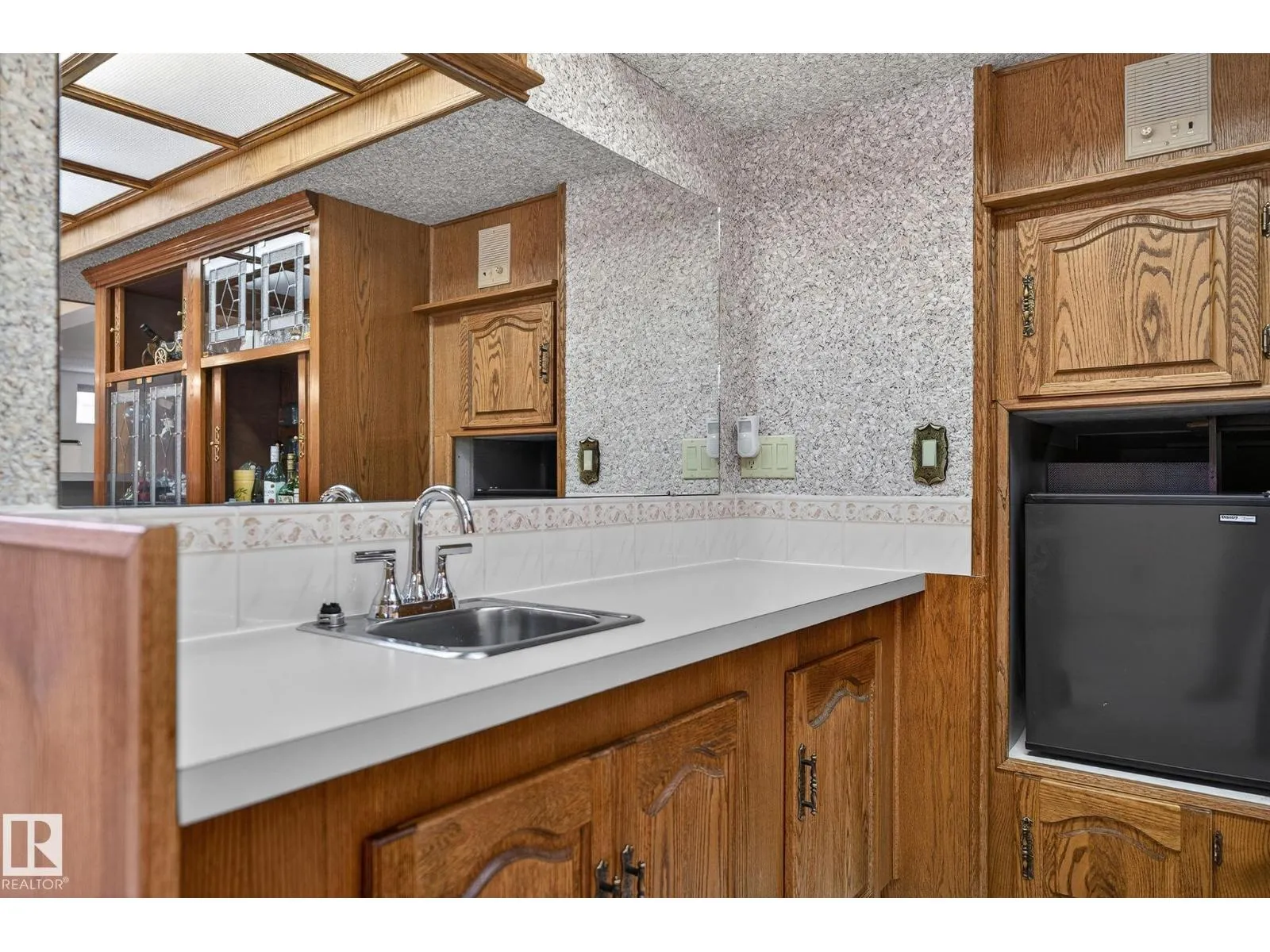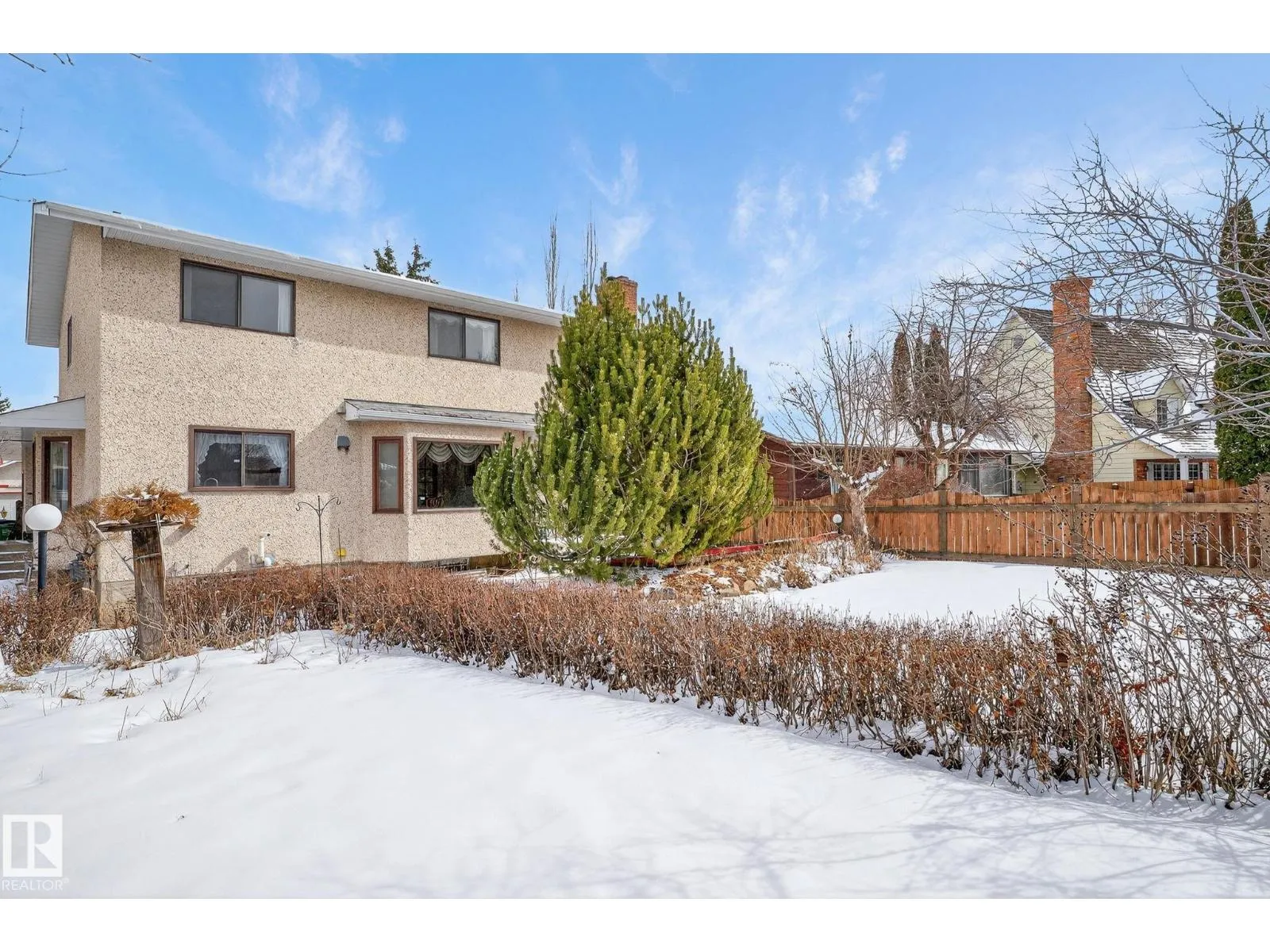 Home Sweet Home! Welcome to this classic Ace Lange built family home in the highly sought after neighbourhood of Ramsay Heights! Lovingly maintained by the current owner for the past 33 years. Main floor boasts an inviting foyer. Spacious living room with large bow windows. Cozy family room has brick featured fireplace & built-in shelvings, patio door onto the patio. A sun-lit formal dining room with double french door & bay window overlooking the huge private fenced yard. Kitchen has ample cabinets & garden window over the sink. Bright and cheery eating nook with another bay window. Conveniently located laundry room with window that is adjacent to the mud room, a full bath and side door. Upper level features an enormous master bedroom with a jacuzzi ensuite. Three more spacious bedrooms at the back (2 w/double closets) & a main bath. Lower level is nicely finished w/ an entertaining size rec room, beautiful wet bar & a washroom (R/I for shower) . Close to all amenities w/easy access onto the Whitemud. (id:27476)