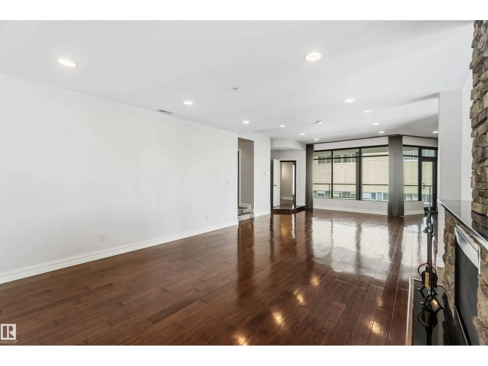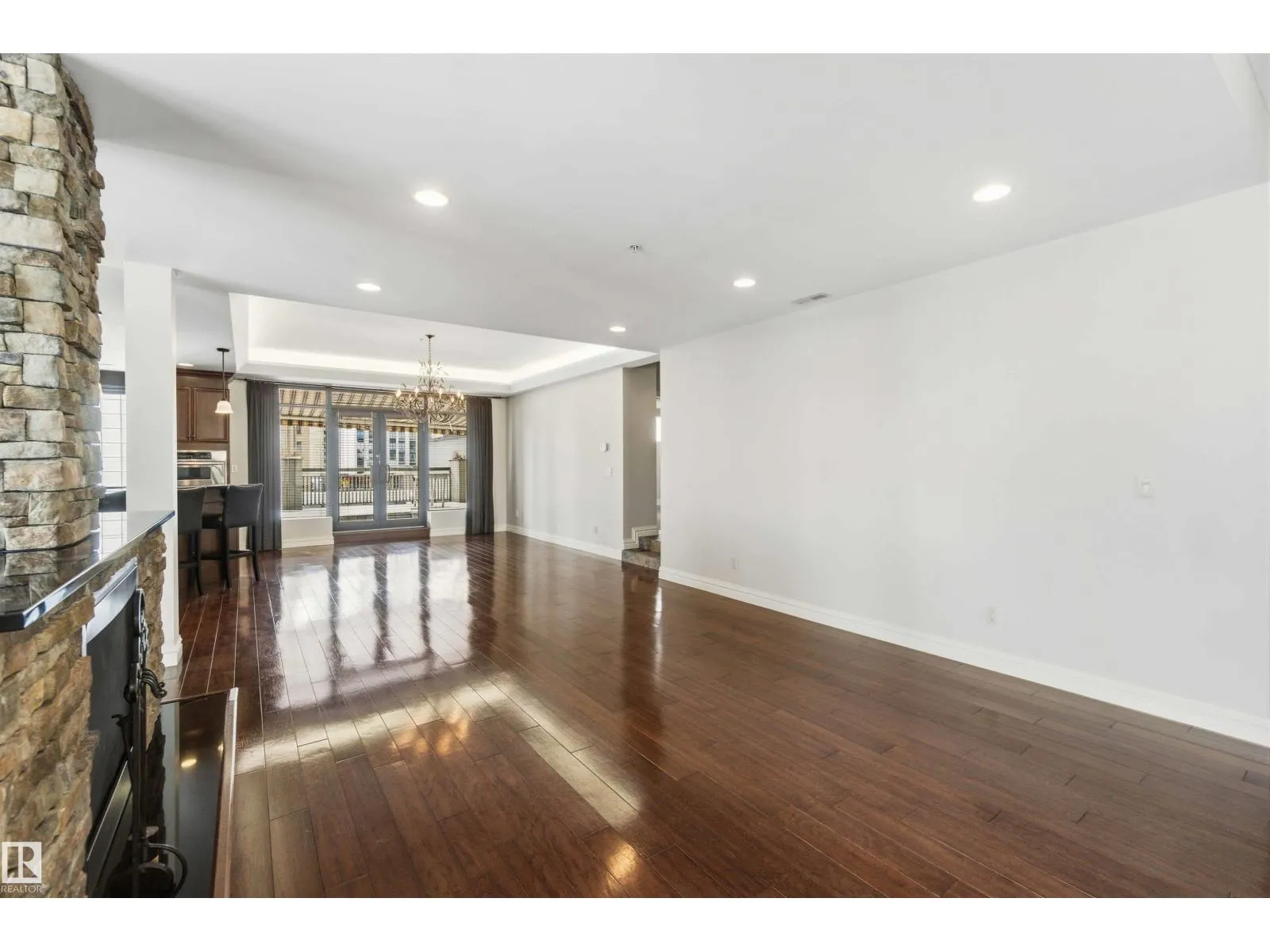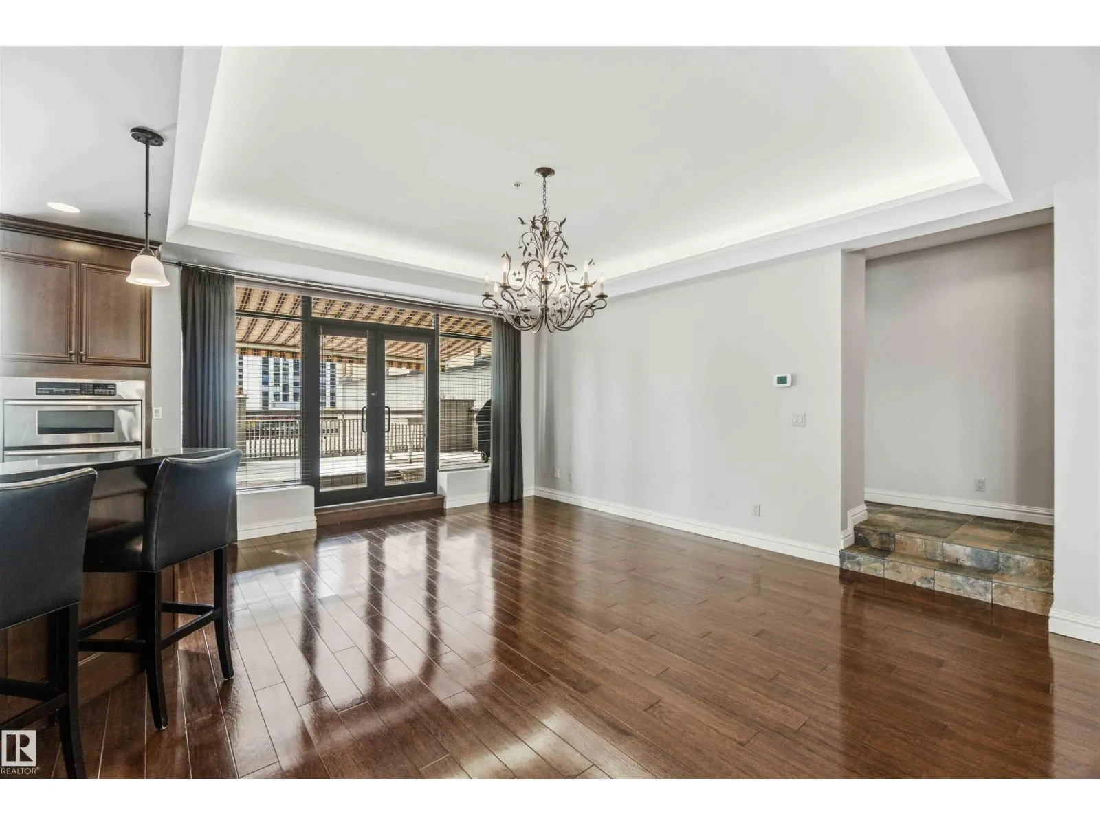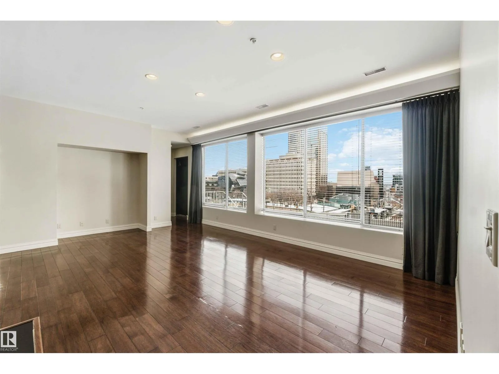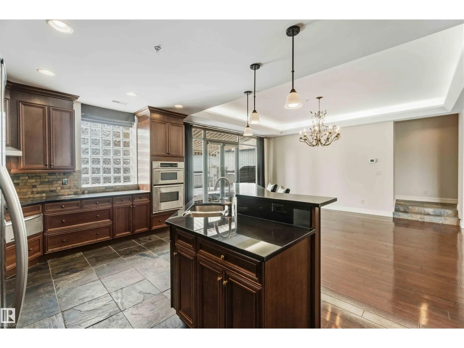Gorgeous, impeccably maintained penthouse in the prestigious Churchill Exchange, offering 2,389 sq. ft. of refined living space with exceptional privacy and two private balconies. This elegant residence features an open-concept design with rich hardwood flooring and a spacious living room anchored by a striking two-sided gas fireplace.The adjoining family and dining area is perfect for everyday living and entertaining, with patio doors leading to a large, secluded terrace. The kitchen is thoughtfully appointed with abundant cabinetry, granite countertops, and a raised breakfast bar.The primary suite offers a walk-in closet & a bright 3-piece ensuite with skylight. Two additional bedrooms provide flexibility, with the third ideal as a den and offering access to the main 4-piece bath. Ample in-suite storage adds convenience. Complete with two titled underground parking stalls, additional storage & direct elevator access, this exceptional residence is ideally located near shopping, dining, and entertainment. (id:27476)