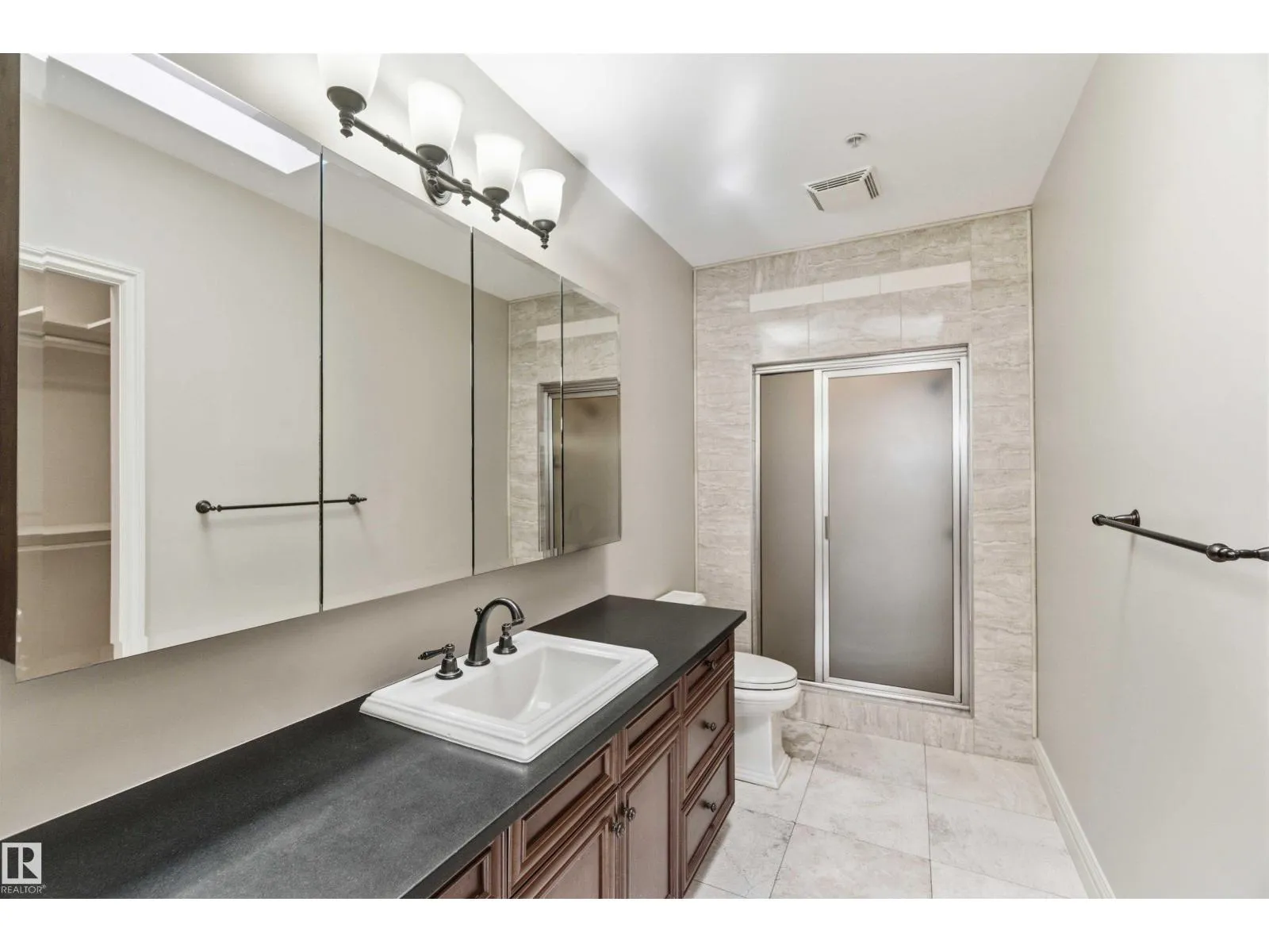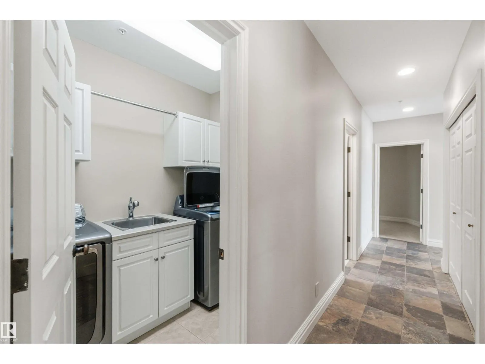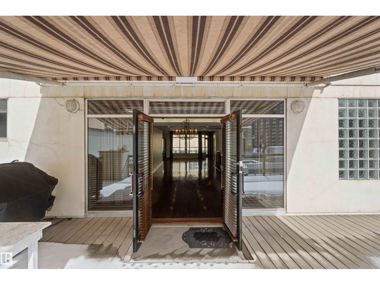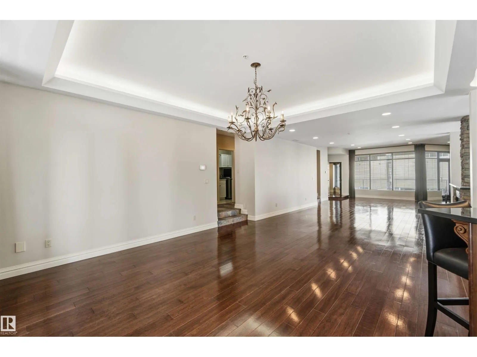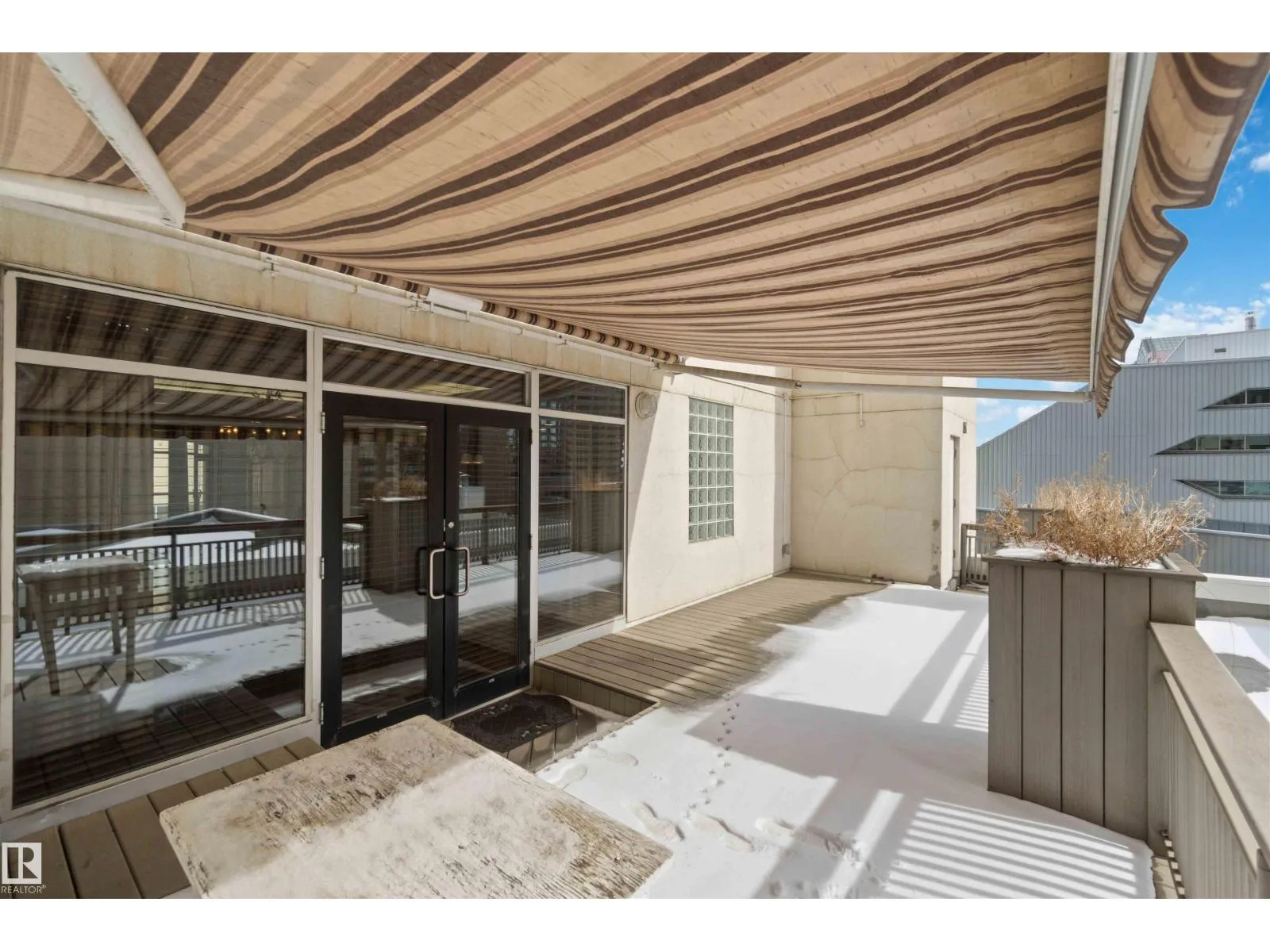 Gorgeous, impeccably maintained penthouse in the prestigious Churchill Exchange, offering 2,389 sq. ft. of refined living space with exceptional privacy and two private balconies. This elegant residence features an open-concept design with rich hardwood flooring and a spacious living room anchored by a striking two-sided gas fireplace.The adjoining family and dining area is perfect for everyday living and entertaining, with patio doors leading to a large, secluded terrace. The kitchen is thoughtfully appointed with abundant cabinetry, granite countertops, and a raised breakfast bar.The primary suite offers a walk-in closet & a bright 3-piece ensuite with skylight. Two additional bedrooms provide flexibility, with the third ideal as a den and offering access to the main 4-piece bath. Ample in-suite storage adds convenience. Complete with two titled underground parking stalls, additional storage & direct elevator access, this exceptional residence is ideally located near shopping, dining, and entertainment. (id:27476)