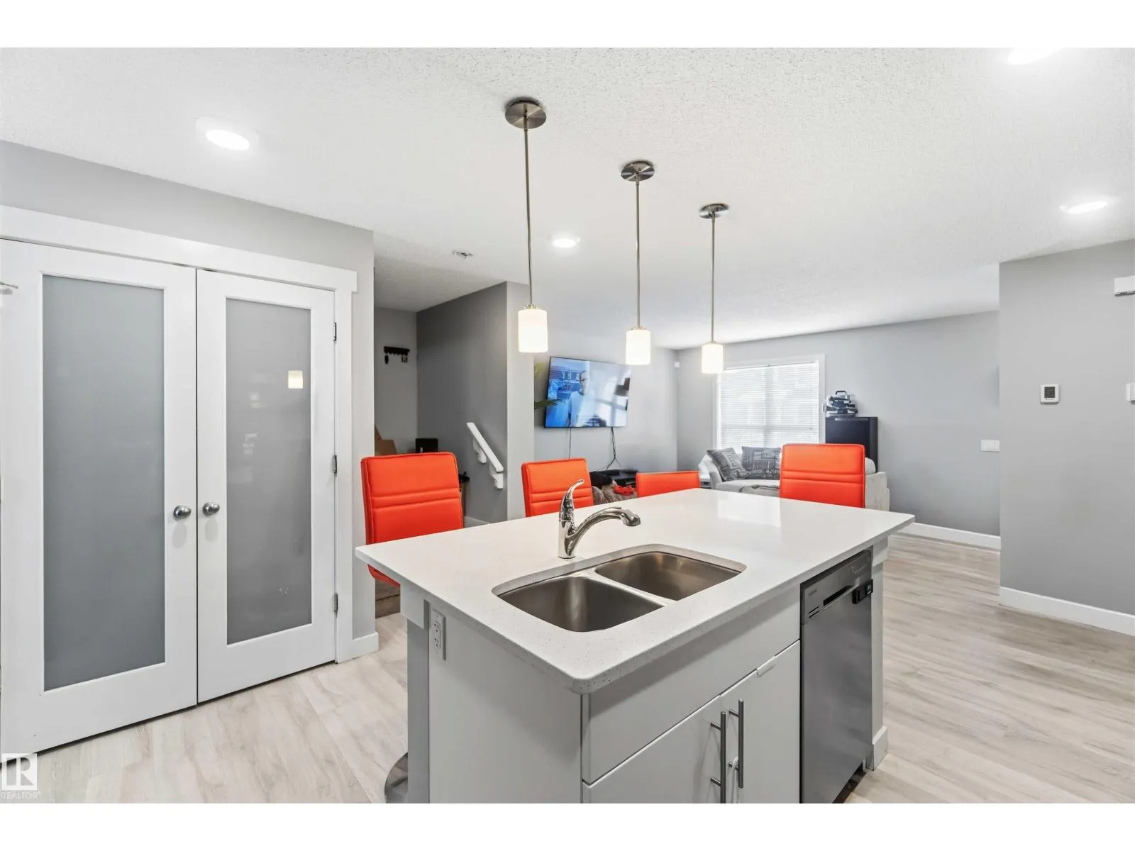 Welcome to this stylish 2-storey townhome in the vibrant community of Chappelle Gardens. Offering 3 bedrooms and 2.5 bathrooms, this home features a bright open-concept main floor with a spacious living area, dining nook, and a modern kitchen highlighted by an oversized quartz islandâperfect for both everyday living and entertaining. The main floor also includes a practical mudroom-style entry with storage, a closet, and a convenient powder room. Upstairs, youâll find three well-sized bedrooms, including a primary suite with a walk-in closet and 3-piece ensuite, along with a full 4-piece bathroom for family or guests. Enjoy outdoor living with a deck, fenced yard, and the added bonus of a double detached garage plus a rear parking pad for two additional vehicles and extra street parking. The basement is open for future development, giving you room to grow. Ideally located near schools, shopping, and community amenities including a splash park, skating rink, and year-round events. (id:27476)