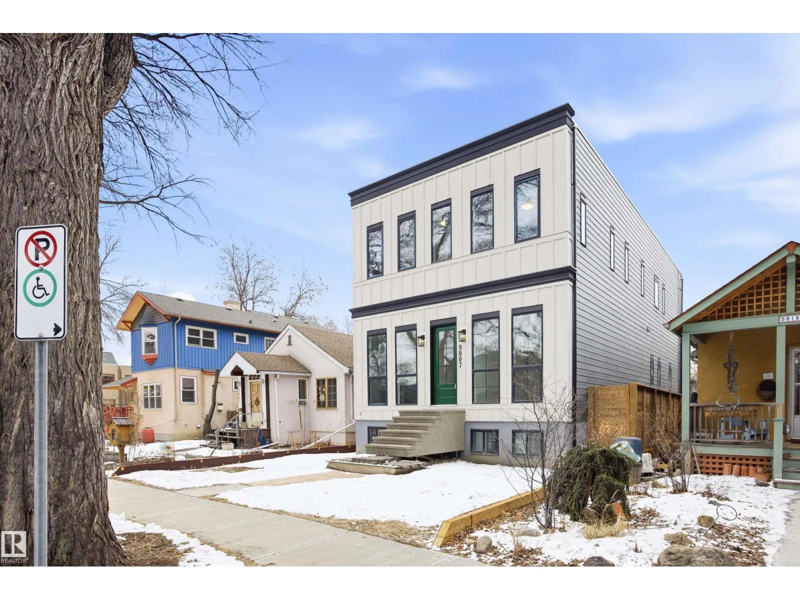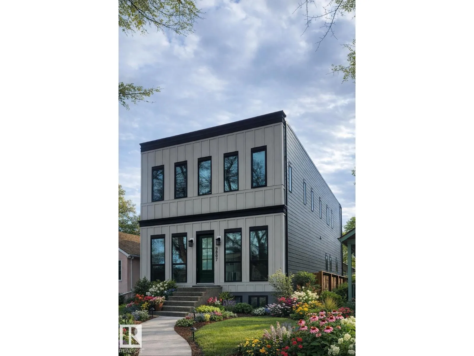 Welcome to this exceptional home in the heart of Strathcona, just moments from the vibrant shops, restaurants, and lifestyle of Whyte Avenue. Offering 2,646 sq ft of thoughtfully designed living space, this property blends modern elegance with incredible functionality. The main level features two dedicated offices plus a main floor bedroom with its own private ensuite. The stunning kitchen is a true showpiece with quartz countertops, crisp white cabinetry, and striking black hardware, seamlessly flowing into the main living areas. Upstairs, youâll find 10â ceilings, creating a bright, open feel throughout. This level offers three spacious bedrooms, a bonus living area, and a spa-inspired ensuite designed for relaxation. The partially finished basement includes a separate entrance, offering excellent potential for future development. The builder can complete the space at an additional cost, allowing you to customize it to your needs. Outside, enjoy a fully fenced yard and a double detached garage. (id:27476)