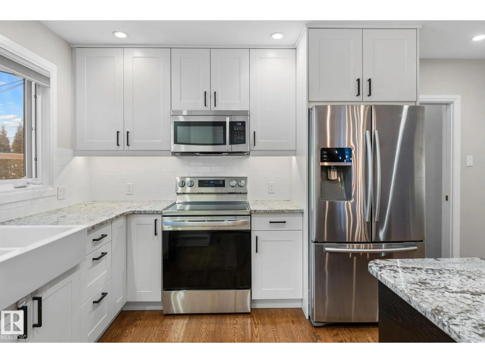 Welcome to this beautifully renovated south-facing bungalow featuring a separate entrance to a fully developed mother-in-law suite. Renovated in 2023 with all permits pulled, this home offers modern updates and peace of mind throughout. The main floor boasts 3 spacious bedrooms and 2 full bathrooms, along with a large, oversized kitchen showcasing granite countertops, contemporary finishes, and ample cabinet space. Hardwood flooring runs throughout the main level, adding warmth and durability. Ideally located close to the University of Alberta and transit, this home is perfect for a young family, students, or those looking to downsize without sacrificing style or functionality. The separate entrance provides flexibility for extended family. Outside, youâll find a double detached garage offering convenience and additional storage. A true turn-key property combining comfort, versatility, and excellent value. (id:27476)