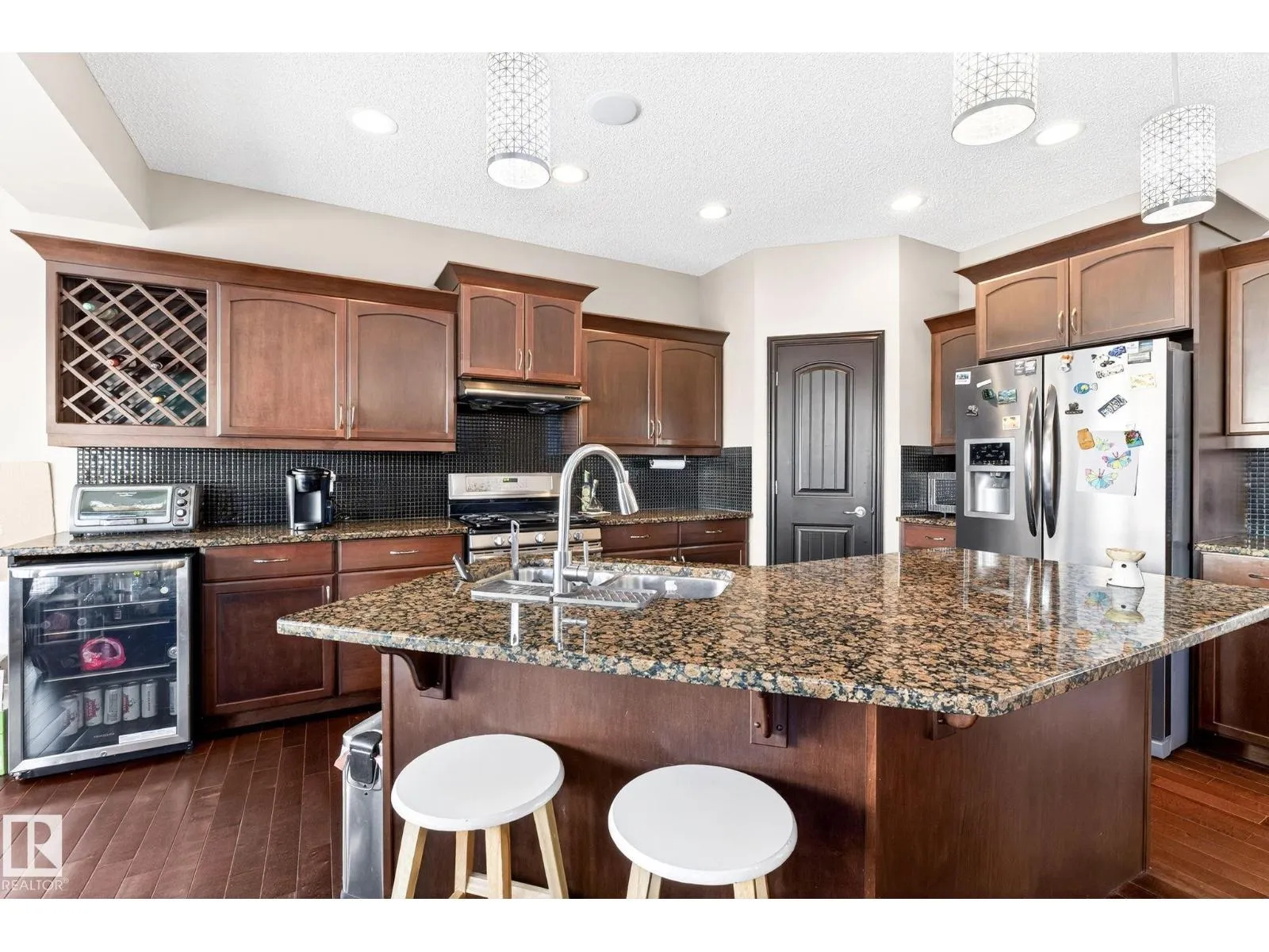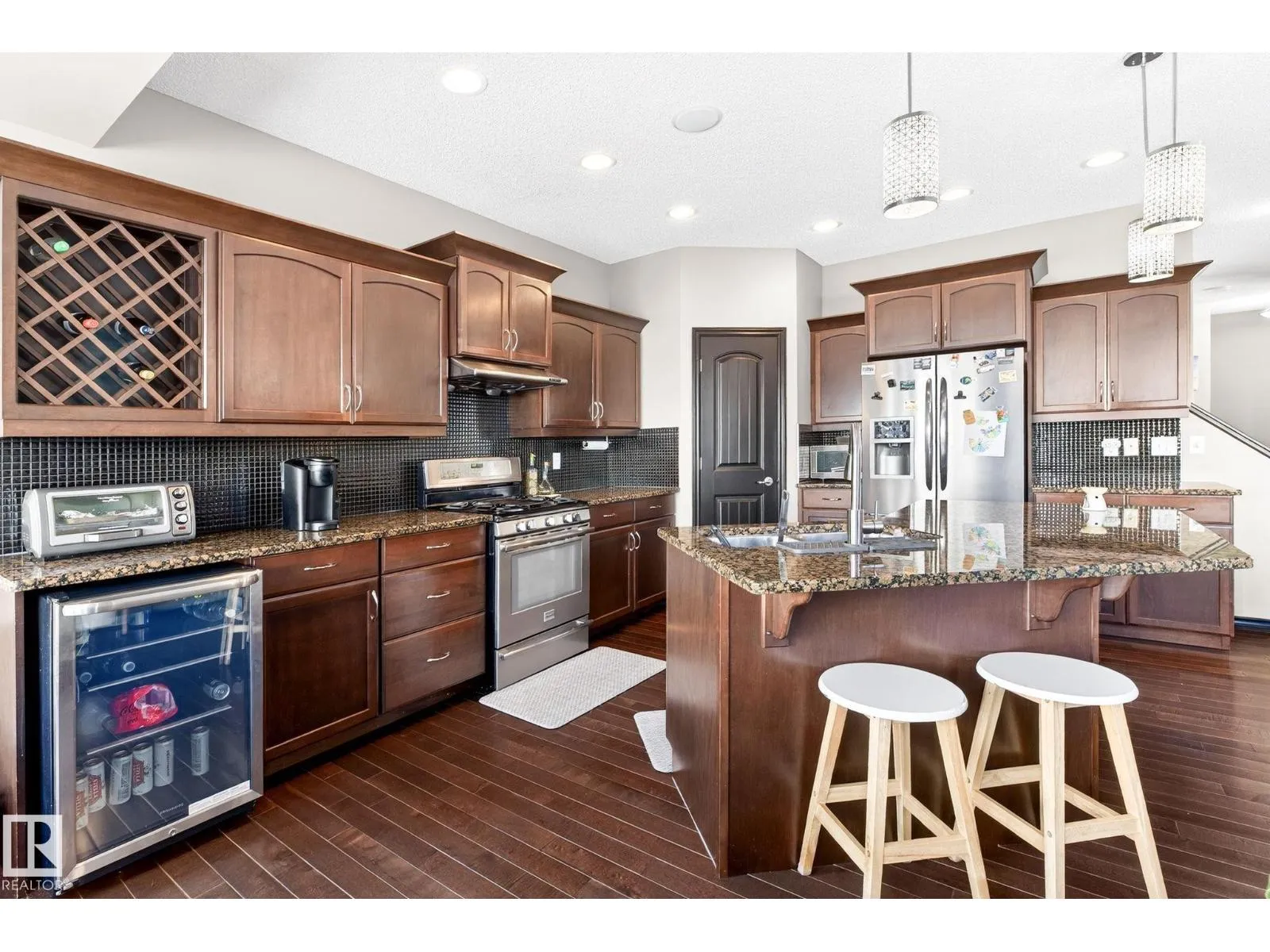 Luxury Living Meets Everyday Convenience in Walker Lake! Step into 2,245 sqft of pure elegance where no upgrade was spared. From the moment you enter the spacious foyer with gleaming tile and engineered hardwood, youâll know youâre home.Chefâs Dream Kitchen: 42-inch cabinetry, crown moulding, gas range, and a walk-through pantry. Entertainerâs Delight: Extended kitchen featuring a custom wine rack, bar fridge, and a built-in stereo system with speakers on both floors and the deck! Sun-Drenched Spaces: 9ft ceilings on the main floor and a stunning dining area with 5 bay-style windows.The Master Retreat: Vaulted 10ft ceilings in the bonus room and a spa-like 5-piece ensuite. Outdoor Oasis: Fully landscaped backyard with a private deck and mature trees. Walking distance to schools and playgrounds, and just minutes from all major amenities. (id:27476)